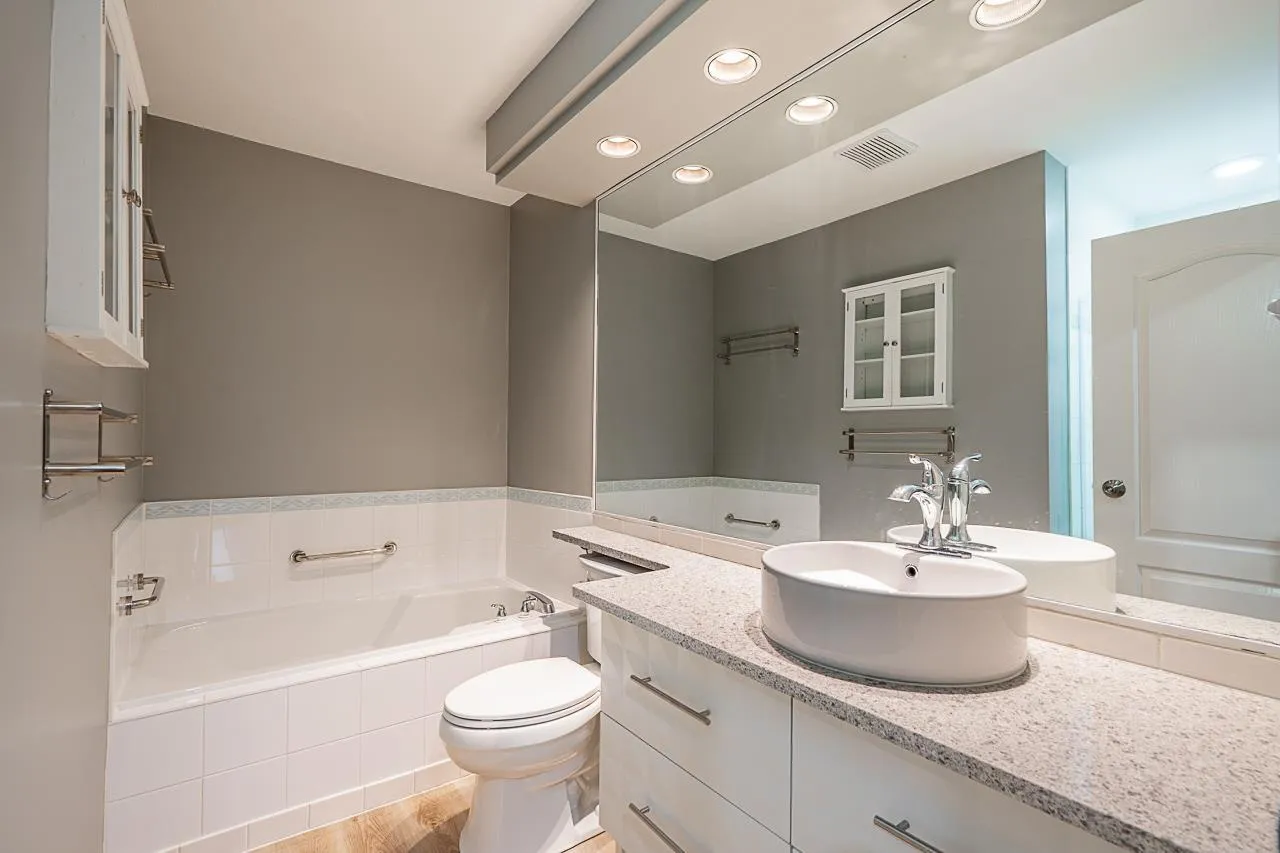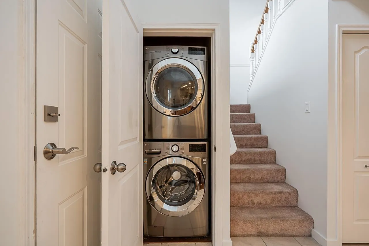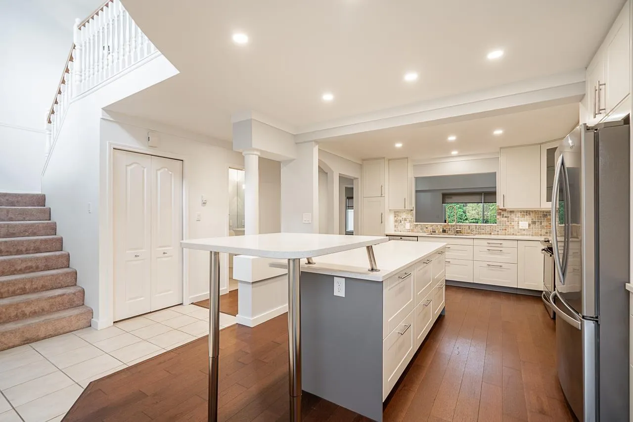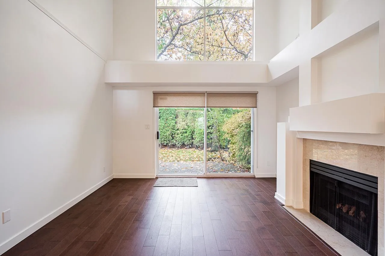 Beautifully updated 3 bed + loft, 3 bath townhome with primary bedroom on main floor in sought-after Peninsula Village. Stunning 2020 gourmet kitchen with quartz counters, stainless appliances, 25 soft-close drawers, pantry & large entertainment-sized island w/removable 2nd tier. Luxurious ensuite with soaker tub & walk-in shower. 17' high ceilings in expansive bright living/dining area. Upstairs offers 2 more bedrooms (one w/semi-ensuite, ideal 2nd primary) + spacious den/loft. Enjoy engineered hardwood floors, in-floor radiant heat, double garage, and updated roofs. Premium gated community with clubhouse, beautifully maintained grounds & walkable location w/private gate to Peninsula Shopping Centre & transit. One person 55+. 2 pets ok (max 15"). Elegant, comfortable, and move-in ready! (id:27476)
