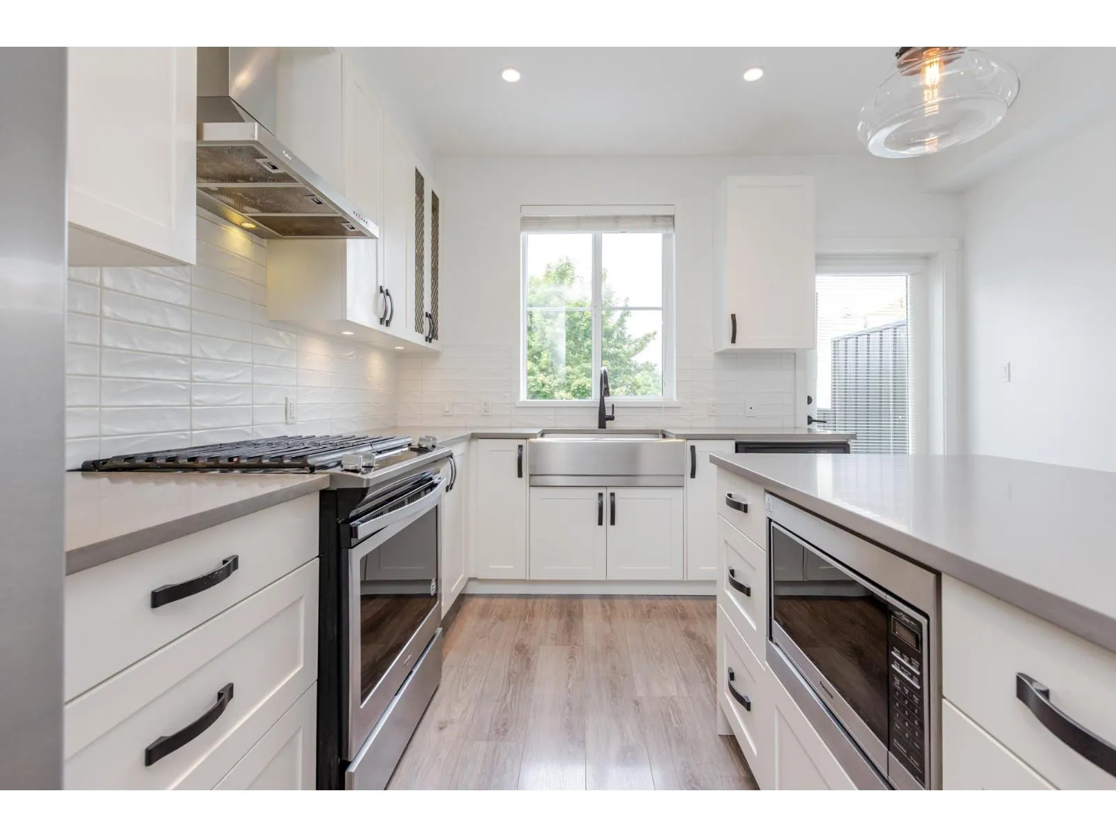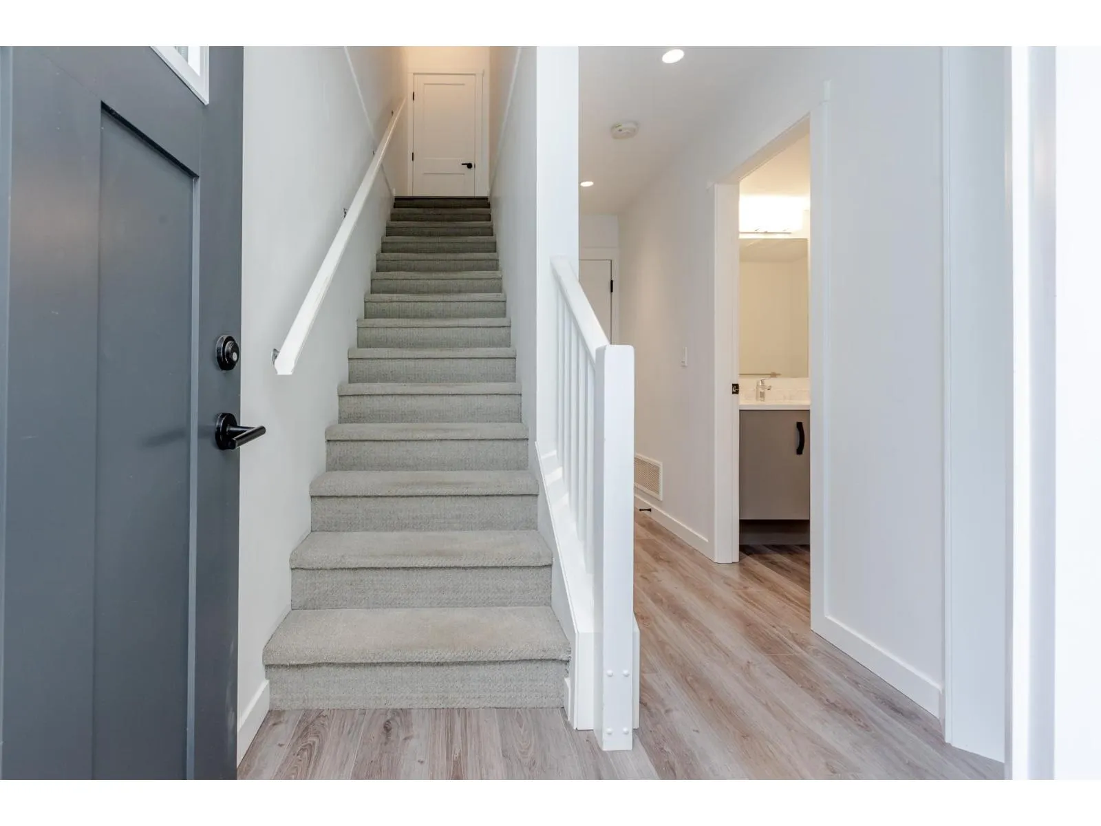 Crimson complex in a great neighbourhood of downtown Cloverdale. Great layout w/your kitchen/living/dining great room concept on the main floor, balcony (w/gas hook up) conveniently at your kitchen. S/s fridge, gas stove, dishwasher, bi microwave, huge island. Living room has an articulating tv mount w/in wall wiring capability. Upstairs has 2 huge bedrooms, primary w/2 closets & ensuite w/shower & 2 basins, plus another full bathroom. Laundry is upstairs - side by side washer & dryer w/a folding countertop over both machines. The basement has a large foyer, a bonus den/flex/possible 3rd bedroom and a powder room. Large single garage + an oversized apron/carport - almost 26' long! Telus fiber optics. Close to transit, shopping, restaurants, schools & so much more! (id:27476)