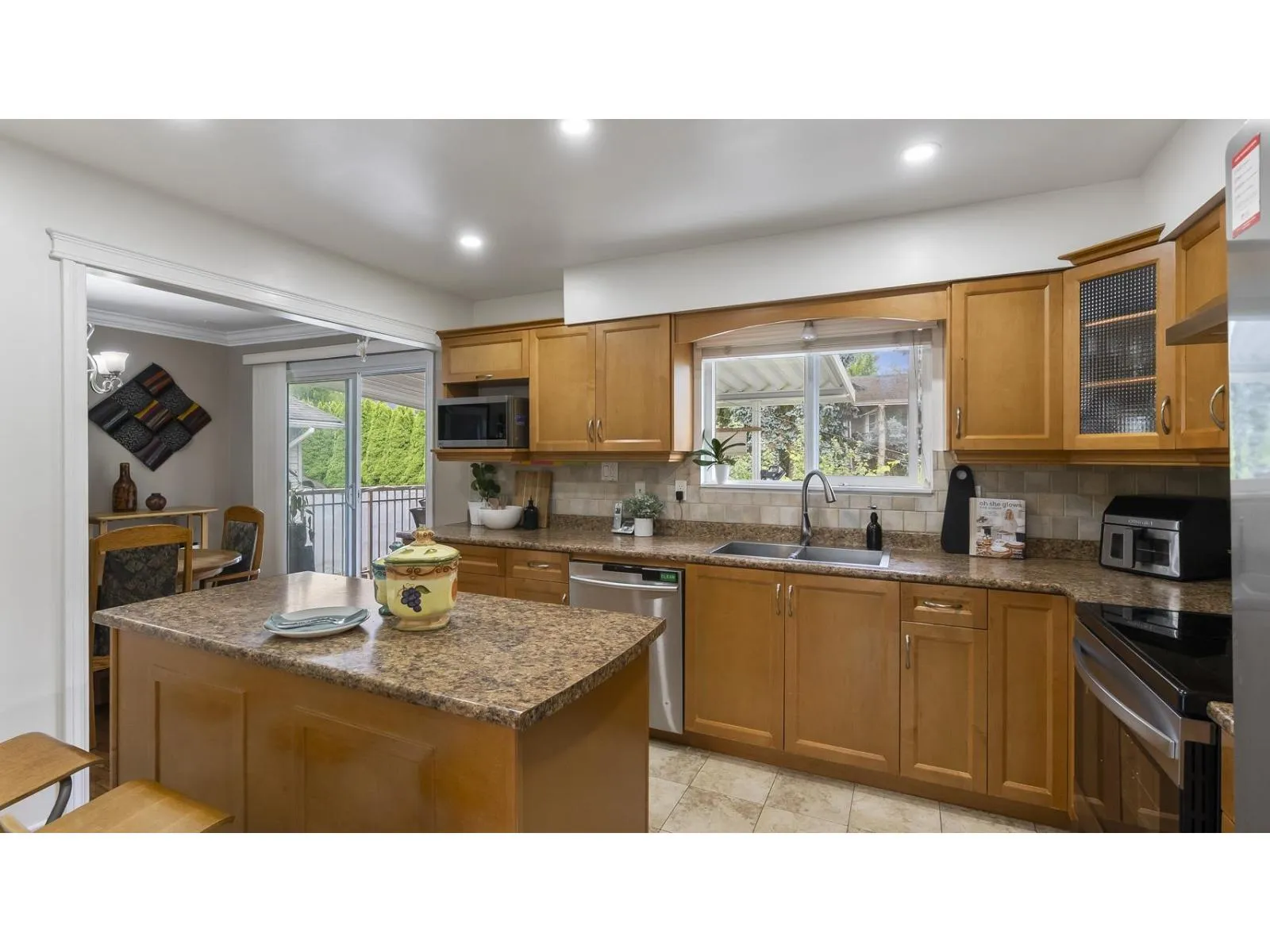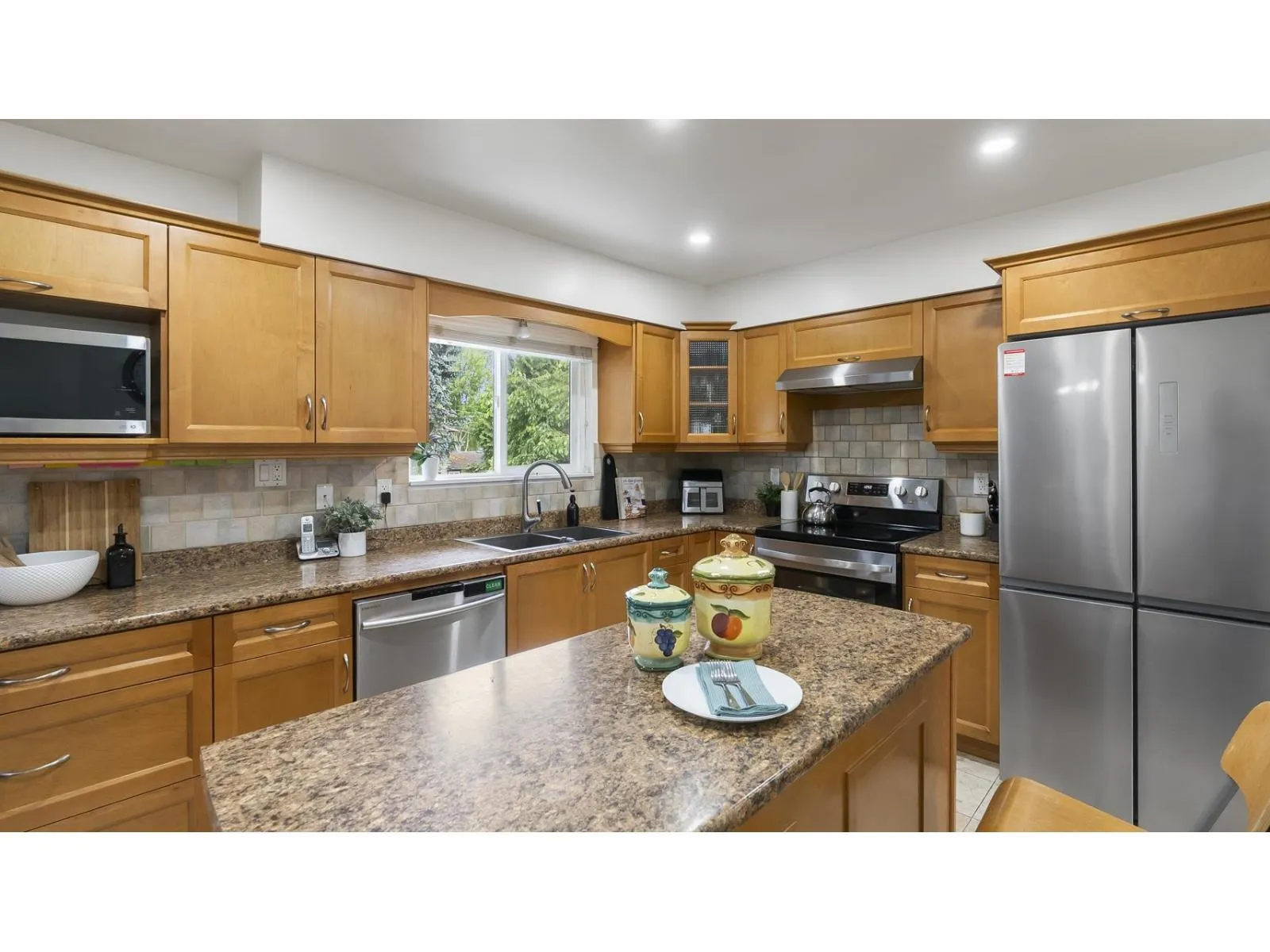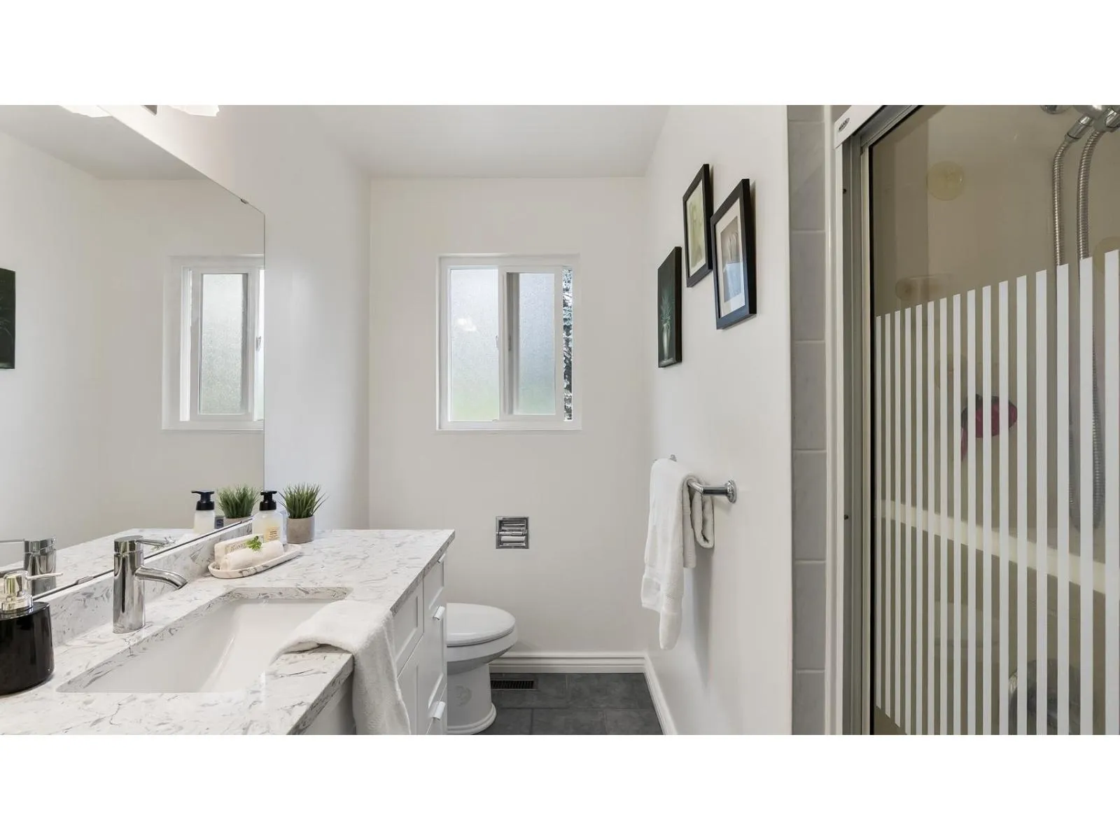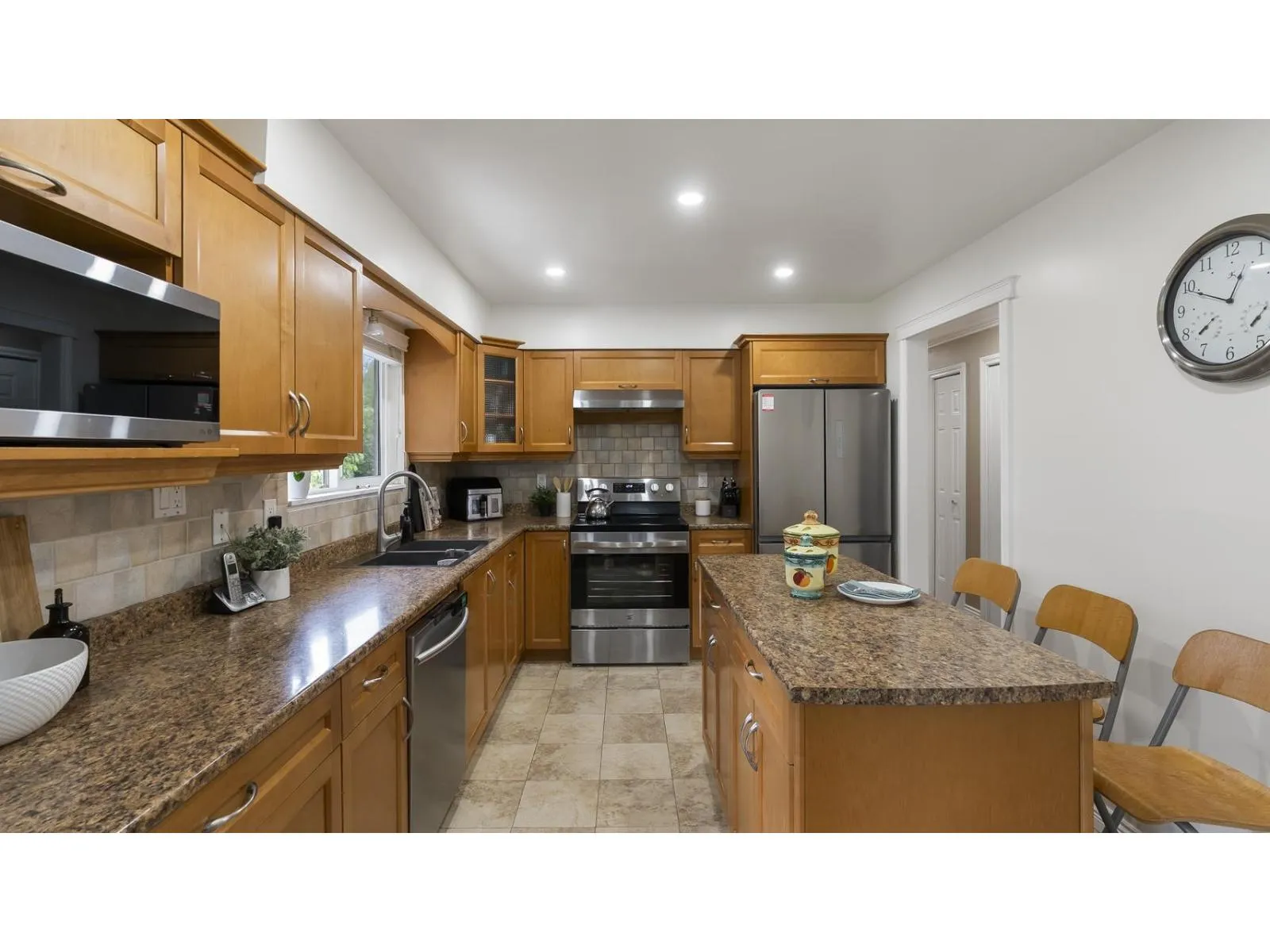 Tastefully Updated 5BR+Flex & 3BTH Bear Creek Residence. Found on a neighbourly street, this split-entry home sits atop a 7,900+ sf lot (R3) w/ a double garage & extra gated RV/boat parking (52'x12'). An expansive window illuminates the rich laminate flooring in the main family area, while granite counters, stainless steel appliances & new pot lights highlight the kitchen. Relax w/ 3 spacious bedrooms upstairs w/ a private ensuite in the primary. The lower-level suite (SEPARATE ENTRY) features 2 bedrooms, 1 full bathroom & a NEW finished kitchen. An oversized laundry area offers versatility in being an extra flex room. Exercise your green thumb or entertain guests in the private backyard. UPDATES INCLUDE: New Paint (Partial Interior; Full Exterior), New Hot Water Tank, New(er) Appliances! (id:27476)
