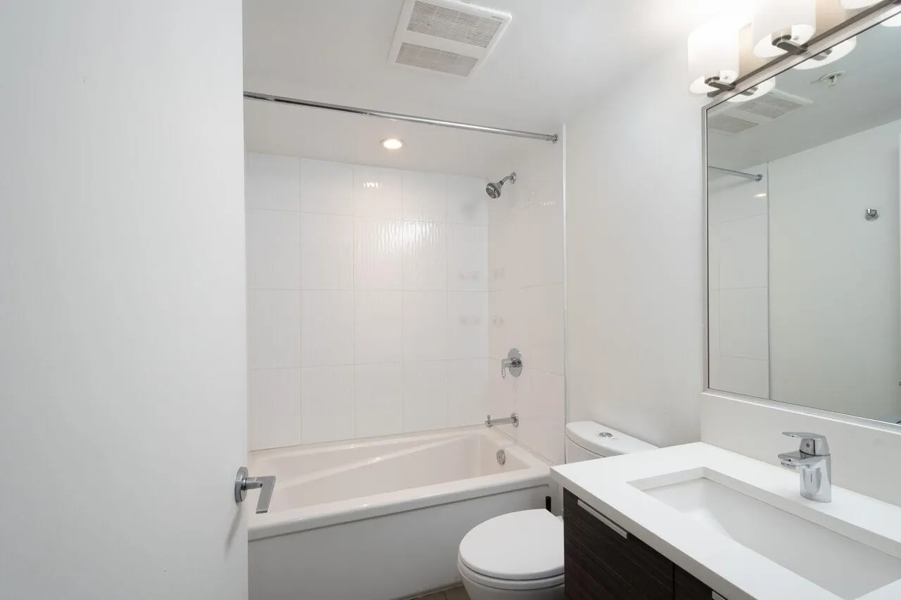 Live at Iconic Wave set in the epicentre of Surrey's urban centre. Spacious & bright 2 flexi bed 1 bath home offering 2 balconies! Floor to ceiling windows bring in the 180° view showcasing mountains, city scape, ocean & spectacular sunsets. Functional & open plan offers linear kitchen, living room & eating area. 2nd bedroom can be opened up completely to provide more living space. Unit has high ceilings, plenty of storage spaces & in-suite laundry. Underground parking stall & exterior storage locker. Pets allowed with approval. Fantastic amenities include a rooftop terrace with BBQ, party room, gym, pet grooming room & car wash area. Walking distance to everything you need. Steps away is SFU, SkyTrain, library, Walmart, T&T, restaurants, Holland Park, Surrey Memorial Hospital & more! (id:27476)
