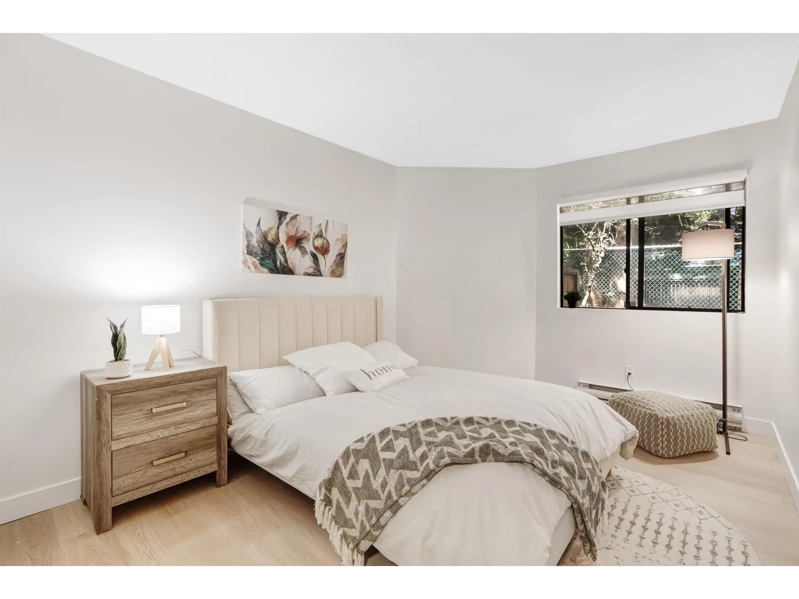 Welcome to this beautifully renovated two-bedroom, one-bathroom at Eagle Glen. This unit has been meticulously refreshed throughout, just waiting for you to move in. Building is well-maintained with very low strata fees. Ground level unit spanning 905 sqft featuring private patio and A/C built in. Located within walking distance of shopping, transit, schools, and community recreation centres. This location is second to none! The school catchments are W. E. Kinvig Elementary and Princess Margaret Secondary. Don't miss this opportunity to own a beautiful, turn-key home in a fantastic community! 2 PARKING INCLUDED. One carport and one open stall. OPEN HOUSE NOV 15/16 3-5pm. (id:27476)