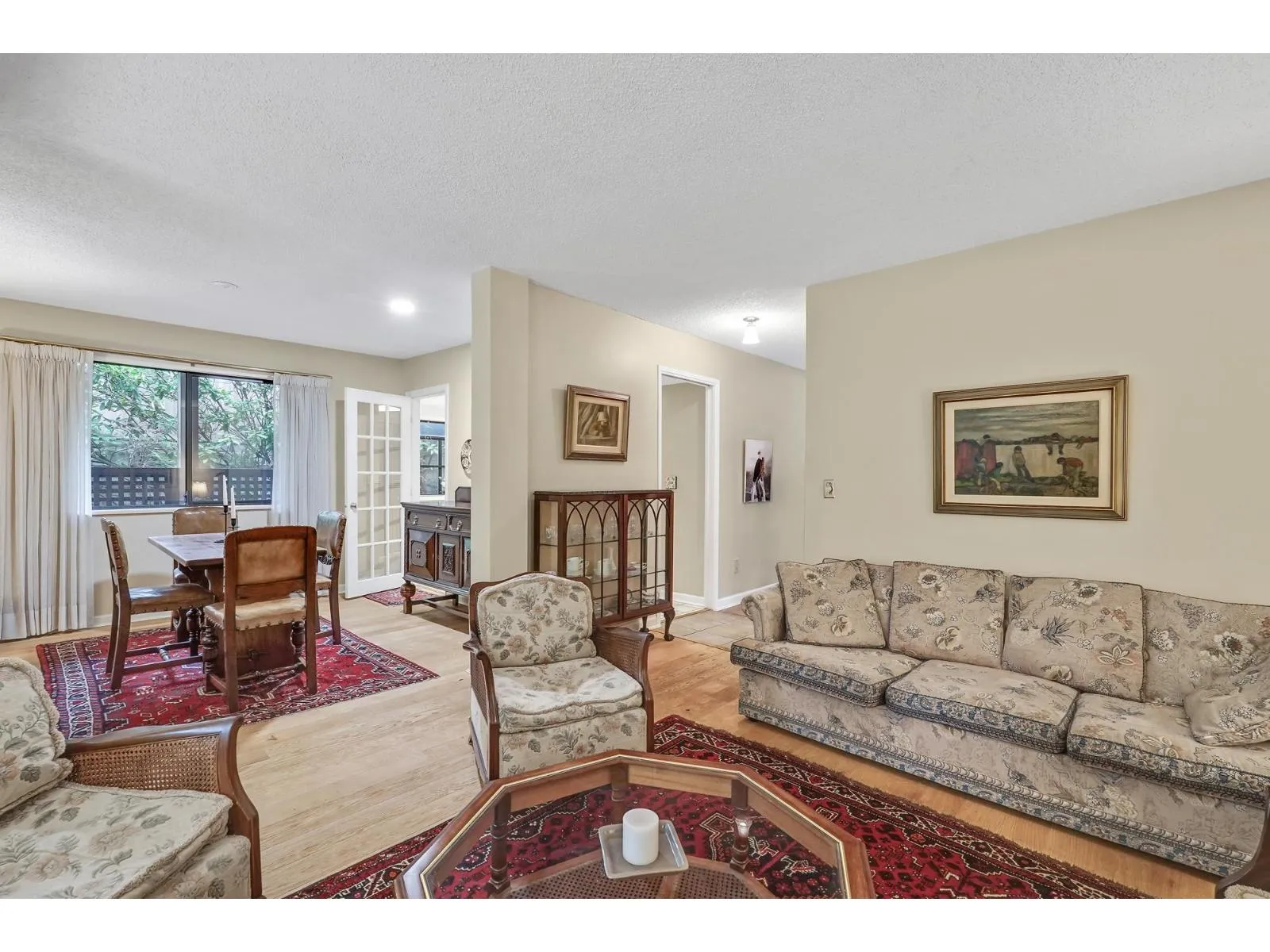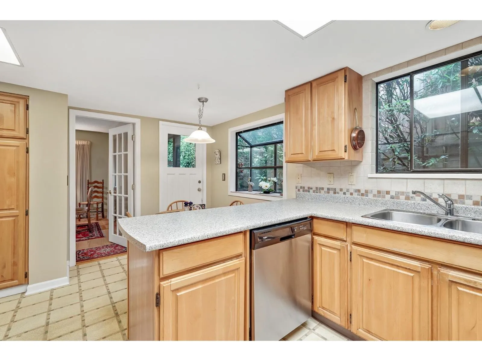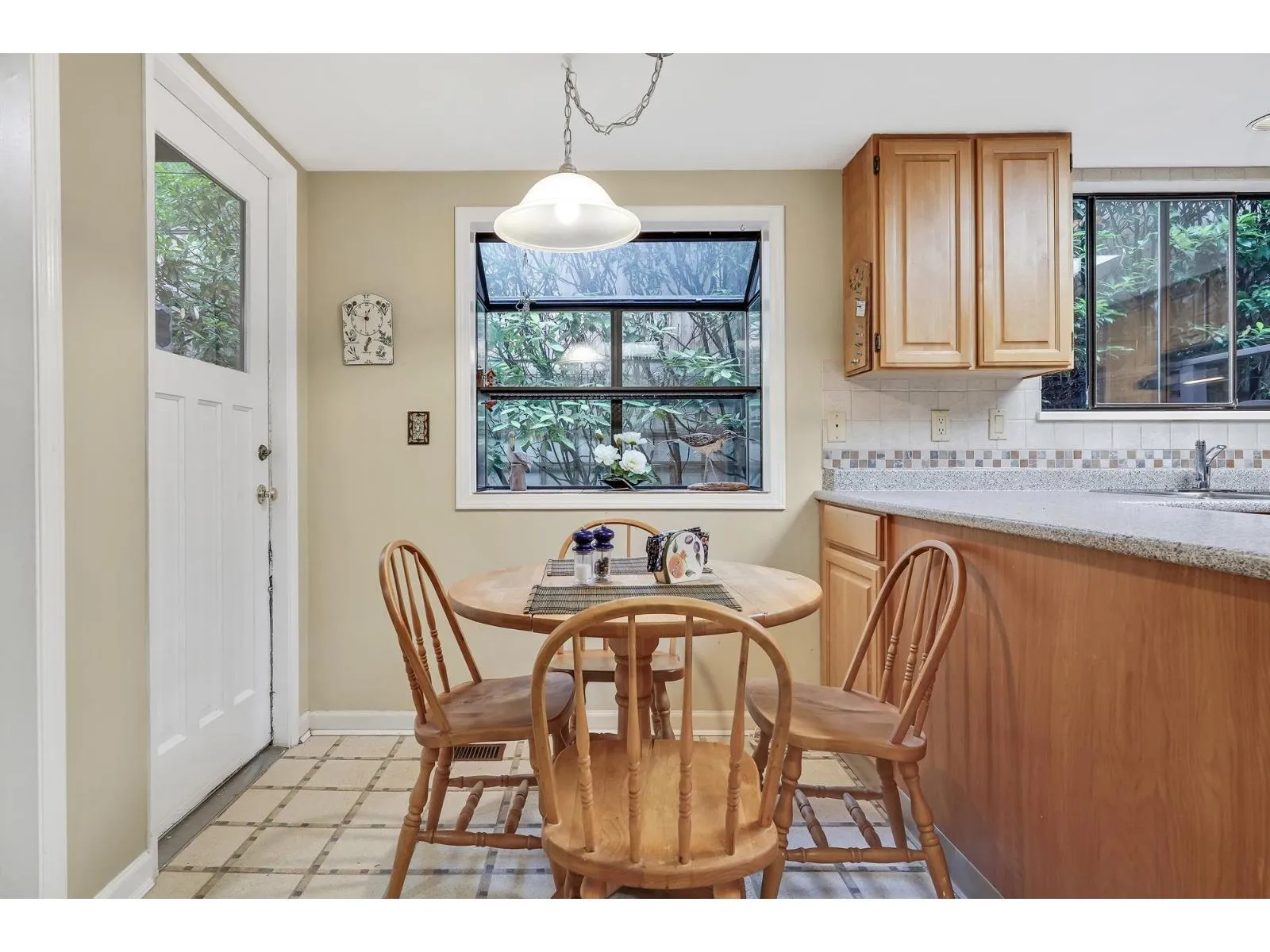 Sought after Ocean Park Courtyards. Spacious 2 level townhome with lots of windows in Ocean Park Village a block from 1000 steps to the beach. Ultra private home, large patio off kitchen & living rooms. 2 large bedrooms up, primary has private deck, 2 full bathrooms plus an open family room. Generous kitchen on main w/garden window, door to covered patio & loads of cupboards & laundry. Large 1 car garage, extra parking spot in front of unit + another designated large parking spot, visitors parking nearby. Beautiful mature trees & gardens surround the complex. Desirable location. Village Shopping Centre is within one short block, Safeway, Starbucks, pub, restaurants, banks, library, everything you need is just a quick walk away. You will be impressed! 2 pets OK, no size or breed restriction (id:27476)
