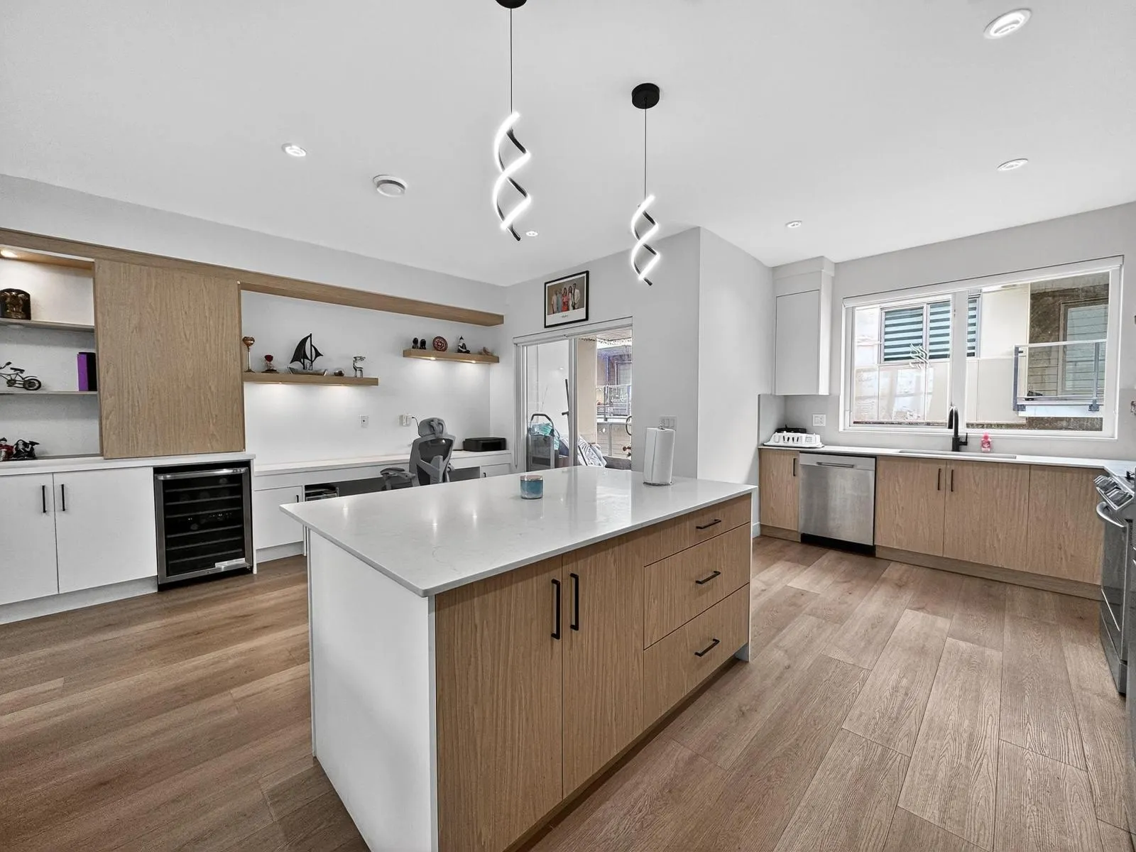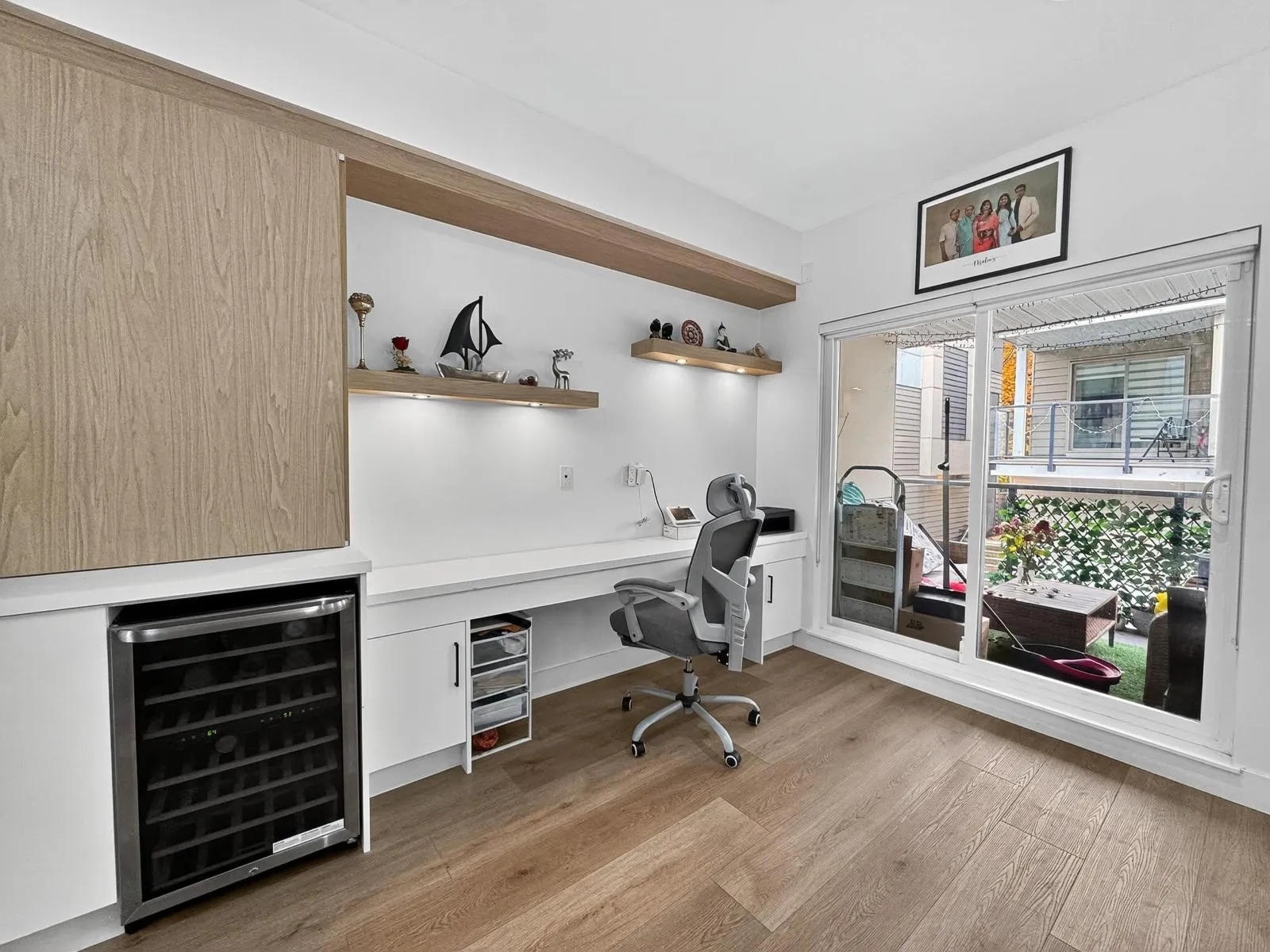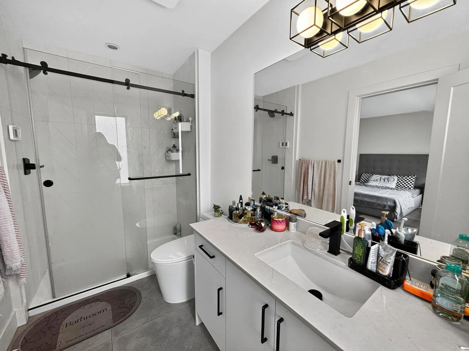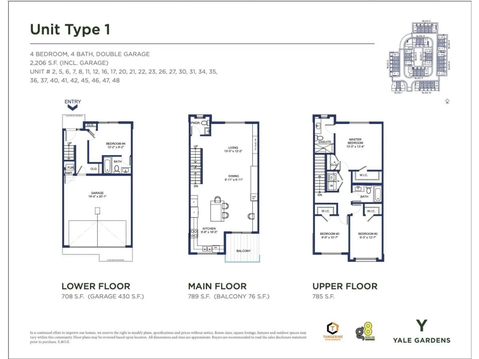 Modern and thoughtfully designed, this three-level townhome at Yale Gardens offers comfortable living throughout. The main level features an open living area with an electric fireplace, a kitchen with a built-in microwave, smart fridge, wine rack, and an office nook, plus a powder room. Upstairs includes forced air heating and A/C, a spacious primary bedroom with ensuite, two additional bedrooms, full bath, and laundry. The lower level offers a double side-by-side garage and a bedroom with private entrance, ensuite, and suite potential. Enjoy a playground, gym, and mountain and city views, all close to shopping, restaurants, and transit. (id:27476)