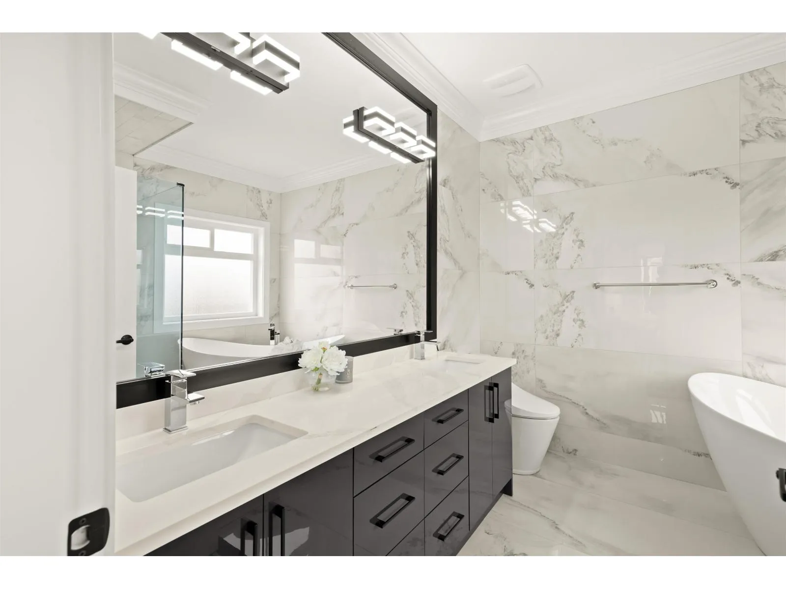 Built on an 8171 sqft lot, this property boasts a spacious 6033 sqft area with 11 bedrooms and 9 baths , showcasing meticulous attention to detail with no expenses spared. Each room offers ample space, complemented by features such as central air-conditioning, radiant hot-water heat, HRV system, and a security camera system. Enjoy the convenience of high-efficiency hot-water furnace , premium appliances, covered patios/decks , and a double garage with gated driveway. Basement legal suite could be a mortgage helper. Benefit from the reassurance of a 2-5-10 new home warranty. (id:27476)