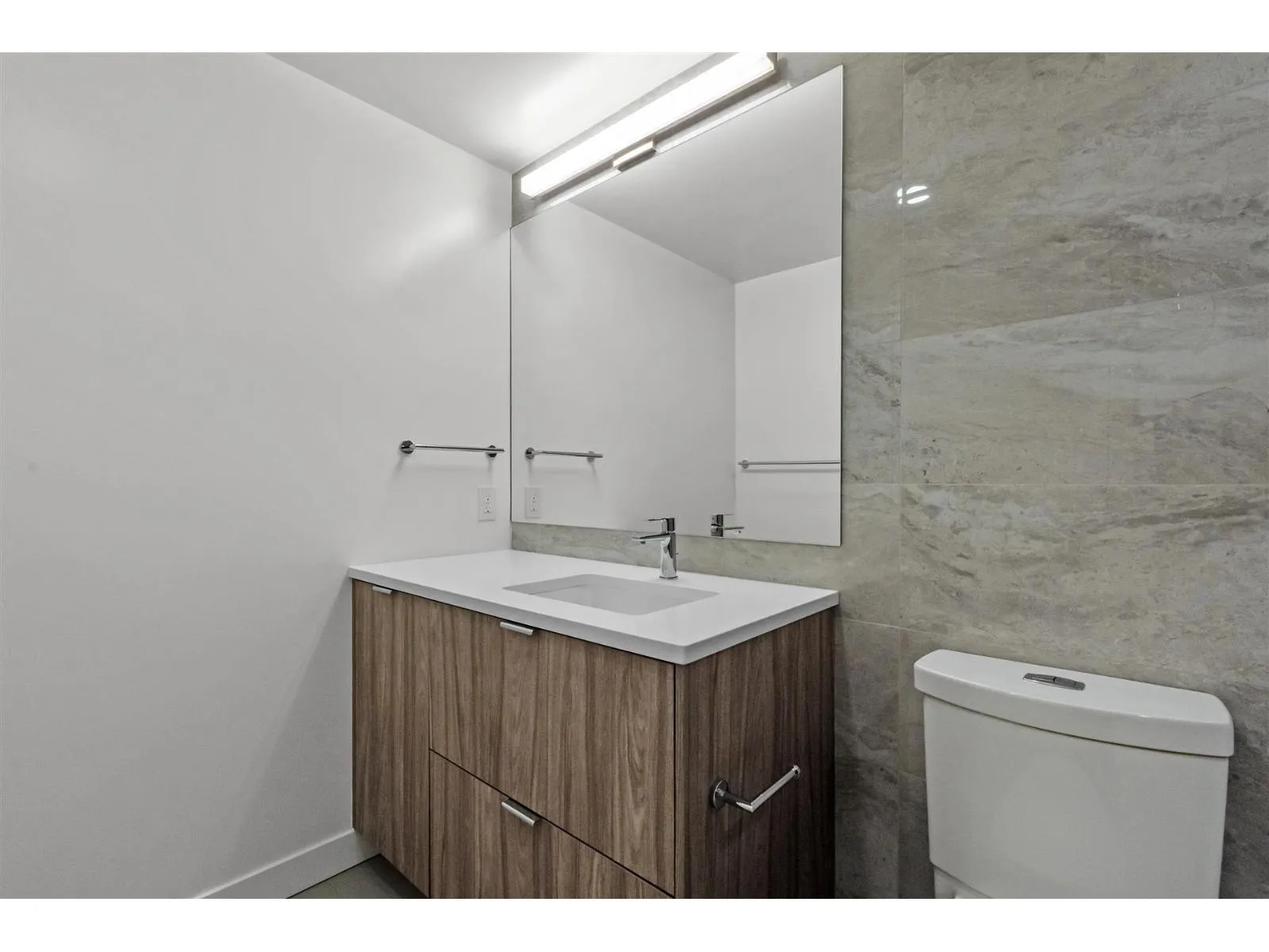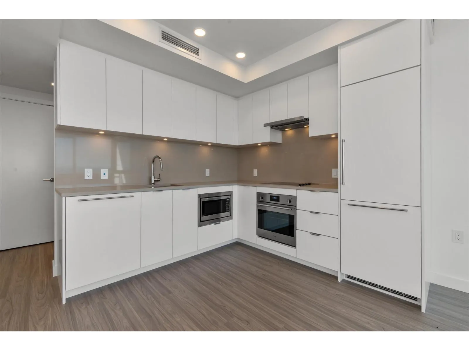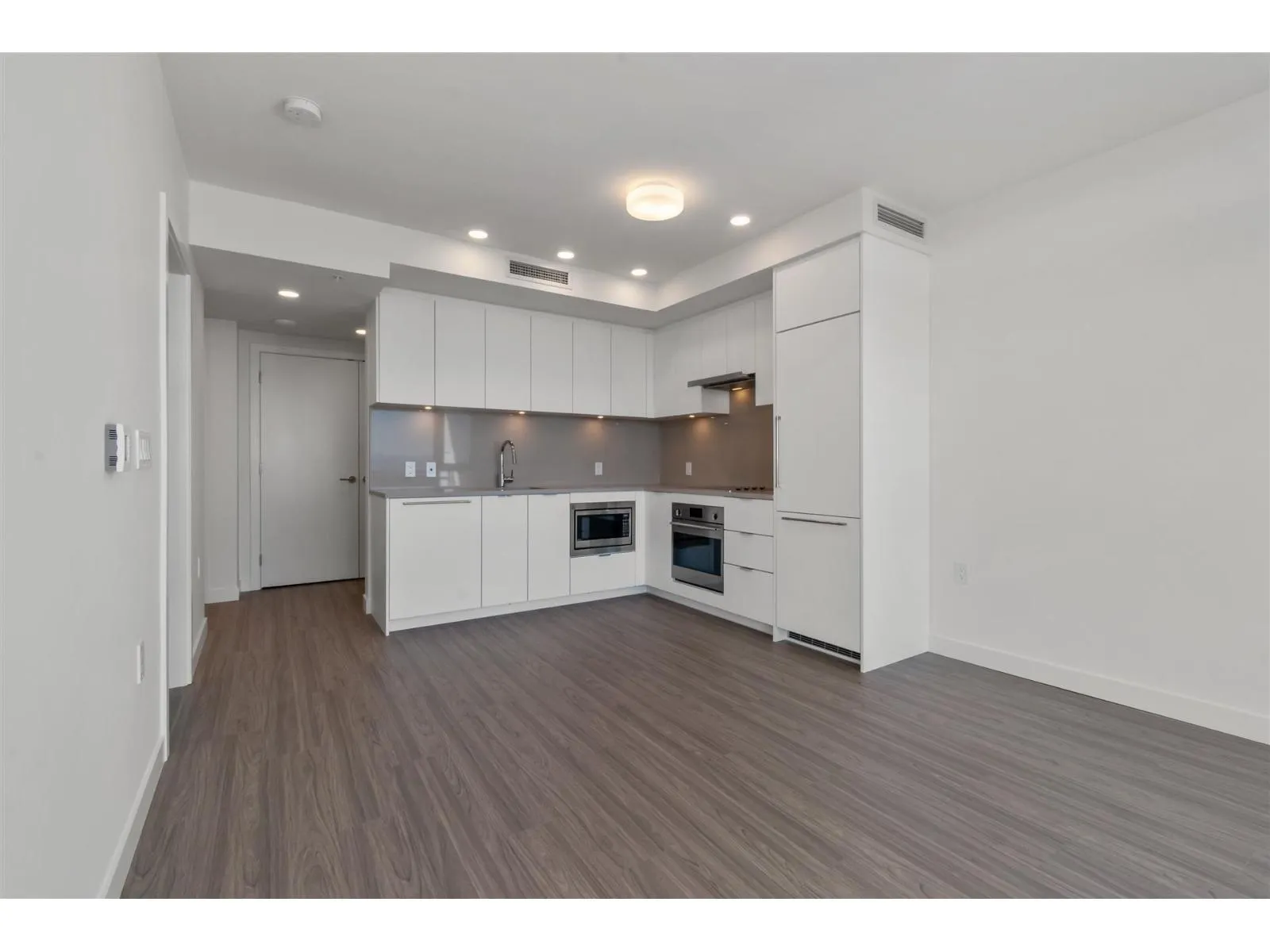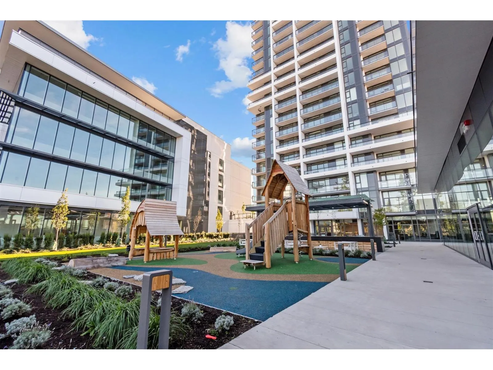 Welcome to Flamingo One- The newest landmark in Surrey Central by renowned builder ITC. Located on a high floor with a bright east-facing city view, this stylish one-bedroom home features premium integrated appliances, elegant quartz countertops, sleek flat_panel cabintry, and wide-plank flooring throughout. Enjoy year-round comfort with air conditioning and a heat pump, plus a spacious covered balcony perfect for morning coffee and relaxing. AMAZING AMENITIES: Fireside lounge, BBQ terrace, social room with full kitchen, hobby studio, fitness centre, theatre, children's play area, and dog park. Just a 5-minute walk to Gateway Skytrain and shopping. Includes 1 EV parking and 1 storage locker. (id:27476)