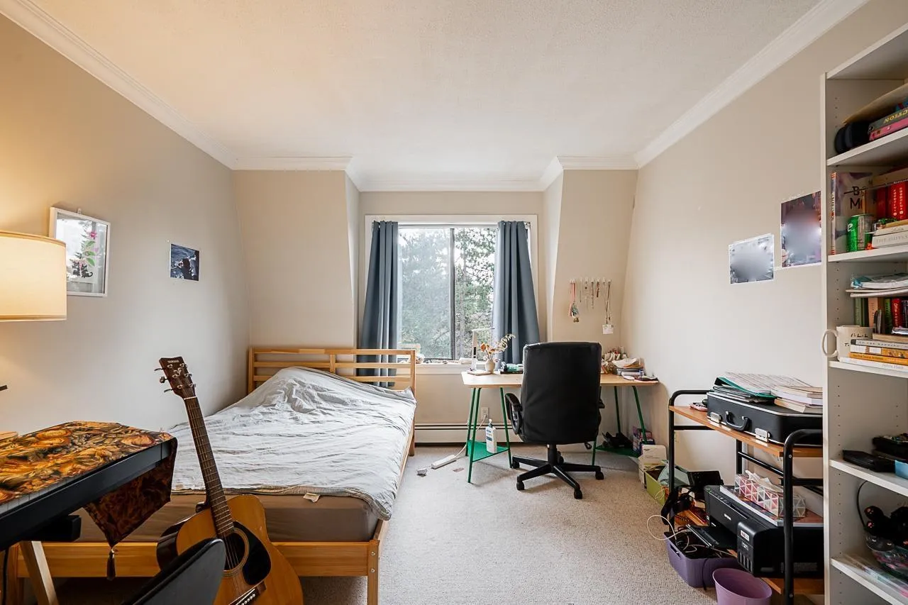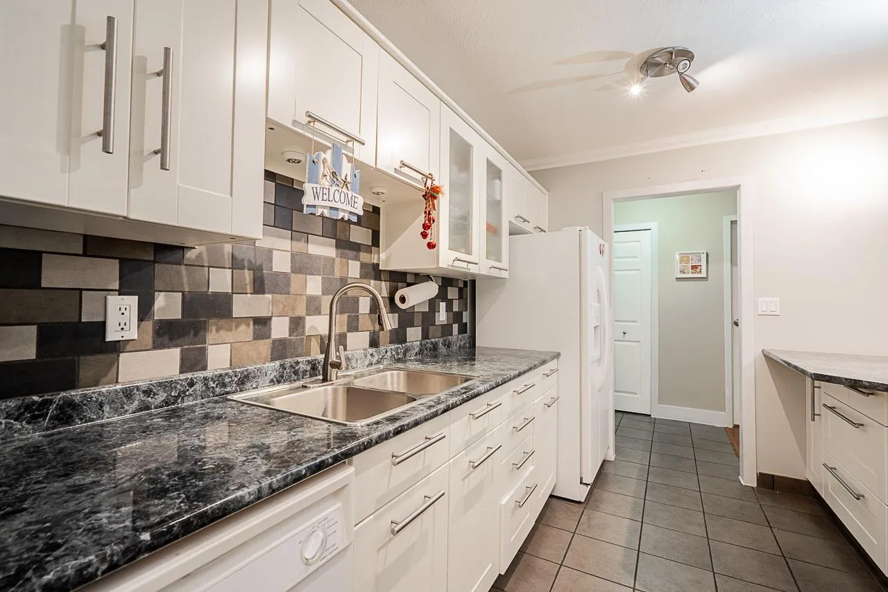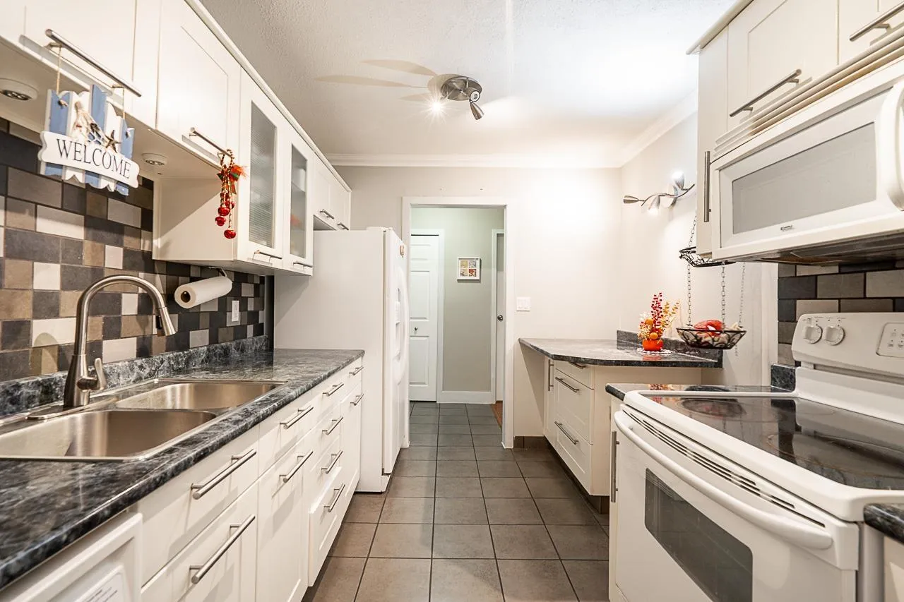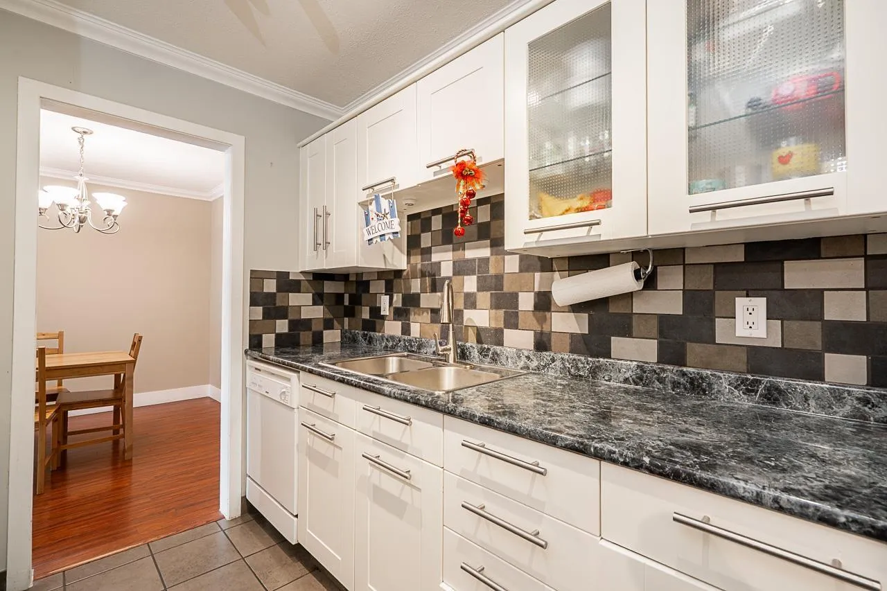 Welcome to Capstan Way. This sunny, south facing top floor 2 bedroom condo is well maintained. Fantastic layout with an open living and dining rooms and generously sized bedrooms with a full walk through closet in the master bedroom. Upgraded throughout the years with granite countertops in the bathroom, kitchen cabinets and crown moulding throughout. Absolutely phenomenal location, next to Semiahmoo Mall, restaurants, banks, transit, Southmere Village Park and more! Well cared for building, perfect for a new owner or investment. (id:27476)