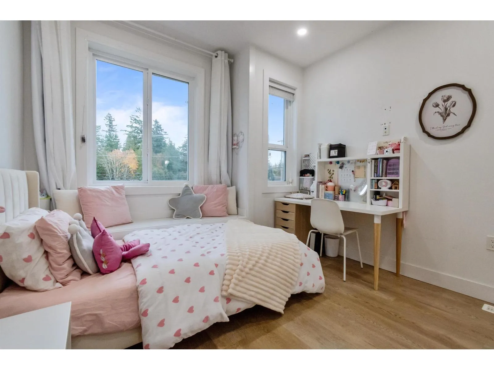 Welcome to this modern, light-filled home featuring 10' ceilings, expansive windows, AC and a chef's kitchen with an oversized island, and stainless steel appliances. The family room opens to a covered deck and a low-maintenance backyard upgraded with premium artificial turf. Upstairs offers 4 bedrooms, with the former lounge area converted into an additional bedroom. The basement includes an extra media room and a dedicated space where the seller currently operates a DAYCARE-offering excellent flexibility. Seller upgrades include a new awning over the separate entrance, asphalt-paved outdoor parking, and enhanced 18" insulation in the attic and 6" in the garage. Minutes to Morgan Crossing, top schools, transit, and the Grandview Heights Aquatic Centre. Open House : Nov 15 & 16 (2-4pm) (id:27476)