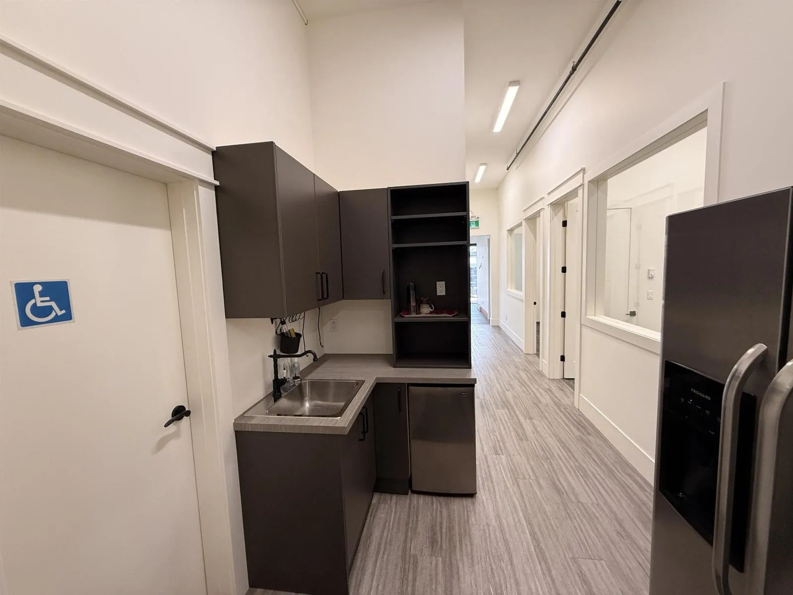 This exceptional property offers high-quality office and warehouse space in a high-traffic area just steps away from the future Willowbrook SkyTrain station. The unit features an open reception/showroom area; six offices; one kitchenette; one washroom; and 1,186 square feet of warehouse space with 12' ceiling height accessible via a 10' wide by 10' high roll-up door. (id:27476)