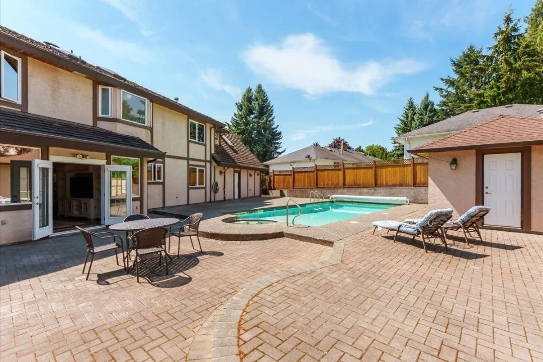 Exceptional custom-built executive residence featuring 2 levels, in-ground pool & integrated spa. Nestled in the exclusive Fairway Estates, this meticulously cared-for 4 bedroom, 4 bathroom property showcases a spectacular floating curved stairway, soaring cathedral ceilings, premium hardwood floors, granite countertops, SS appliances & central AC. Additional highlights: recessed living spaces, dedicated home workspace & entertainment/theater loft over garage. Complementing the heated pool, outdoor amenities include detached cabana with changing area & full bath, 484 sq ft garage, expansive paved parking, automatic irrigation system, ultra-private rear grounds, plus breathtaking Mount Baker vistas. Endless features await! Schedule your private tour now. Call realtor for full package. (id:27476)