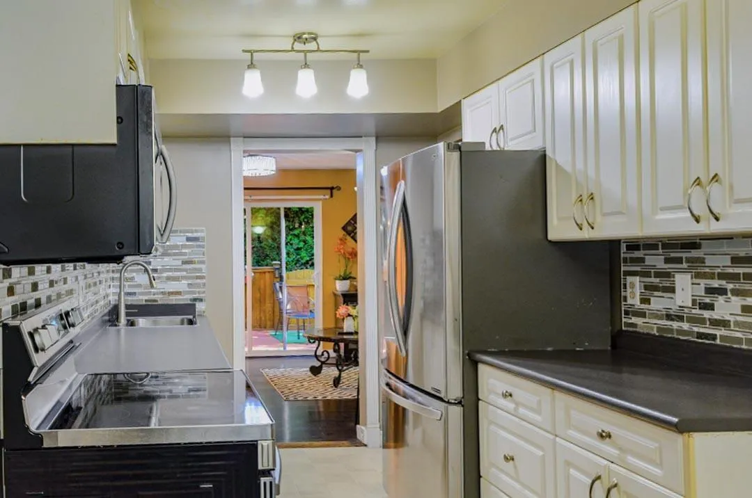 Beautiful well kept corner unit in the prestigious Westwood estates with a welcoming flower garden as you walk in. FULLY renovated 3 bedrooms, 2 bathrooms townhouse with laminate and hardwood flooring all around. Kitchen has been updated and has Stainless steel appliances. Beautiful fenced back yard with a very nice wooden deck to enjoy summer BBQ's and host friends. The atmosphere is calm and tranquil perfect place to raise your family. Perfect opportunity for first-time buyers to get in the market. Tennis & Basketball courts & playground are available in the complex. Roof was done in 2012 and new fence in 2015. Walking distance to both levels of school (Frank Hurt Secondary & MB Sanford Elementary),Walking distance to Superstore, Costco, restaurants, shopping and transportation. (id:27476)