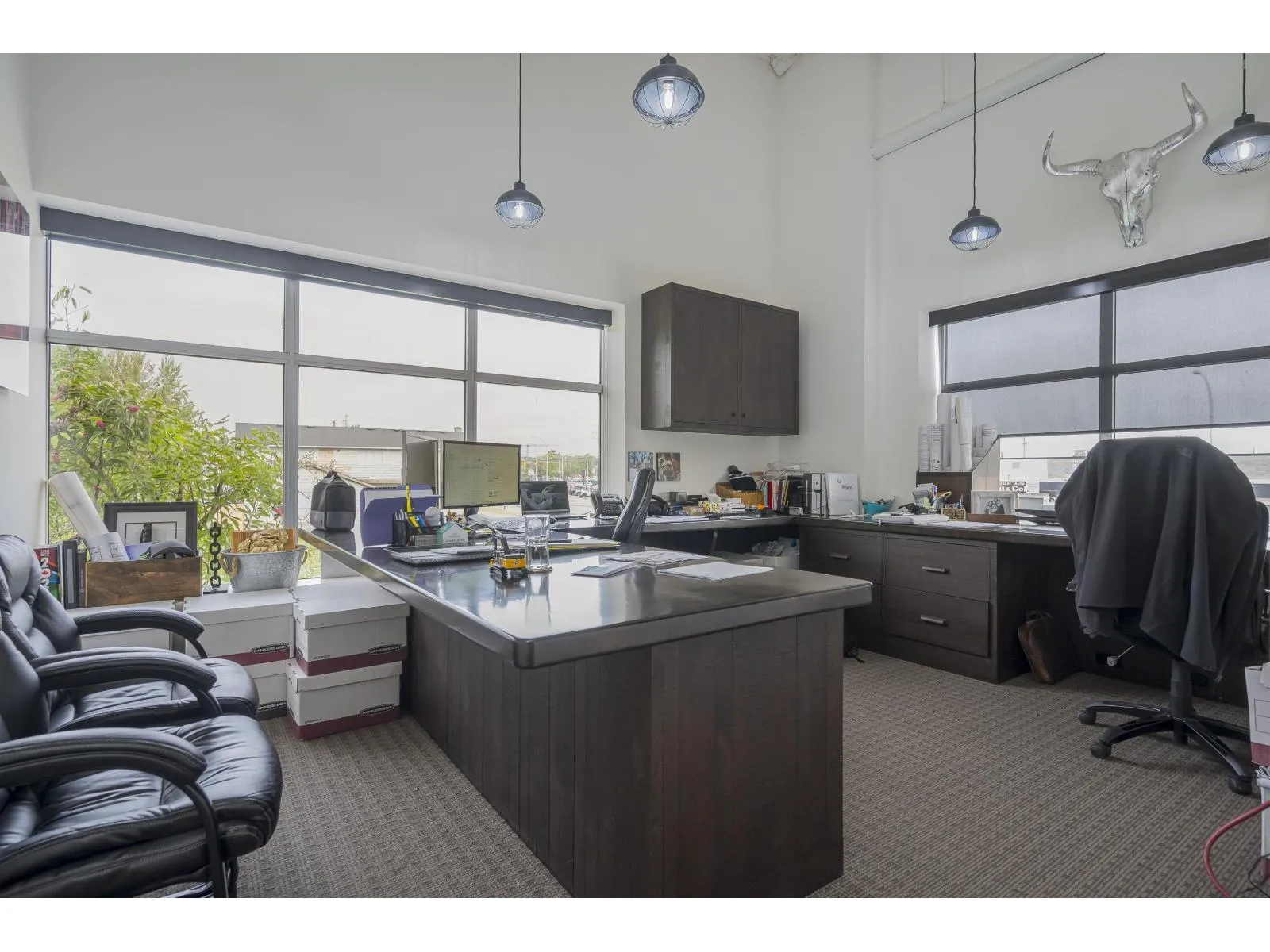 This exceptional property offers high-quality commercial space in a high-traffic area which is poised for future growth. Located just steps away from the future Willowbrook SkyTrain station, this sale includes two strata units with flexible occupancy options. A portion of the second floor offices (1,408 square feet) has secure lease income in place; and the remaining 4,710 square feet is available for owner occupancy or additional tenancies (including the potential for a leaseback from the sellers). All office areas feature high-quality finishes with a functional layout, and the ground floor provides added versatility with a warehouse area accessible via a 10' wide by 10' high roll-up door. This property is suitable for a wide variety of service-oriented and professional businesses, including those which require dedicated storage access. (id:27476)