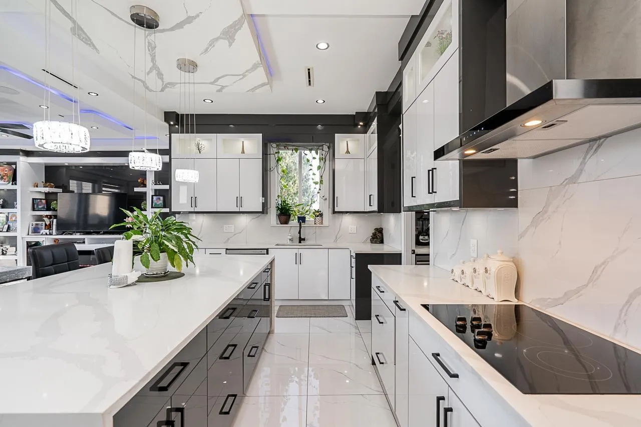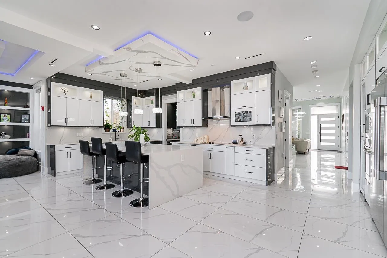 Quality Built (10 bedrooms, 10 baths) over 5465 sqft, not including garage, with a unique bright/open plan, 100 percent walk-out basement. All rooms are very spacious. Central air-conditioning, radiant hot-water heat, HRV system, camera security system, high-efficiency hot-water furnace, high-quality appliances, covered patios/decks, double garage. Main floor features big living and dining rooms, a huge family room and a designer kitchen, a spice kitchen, a large guest bedroom with a full en-suite, and a separate office and a powder room. The top floor has a super-sized master bedroom with a full en-suite, 4 other spacious bedrooms + 3 full baths. The basement has a huge Media room with a wet bar and an attached Full bathroom. The Home comes with a 2-5-10 new home warranty. (id:27476)