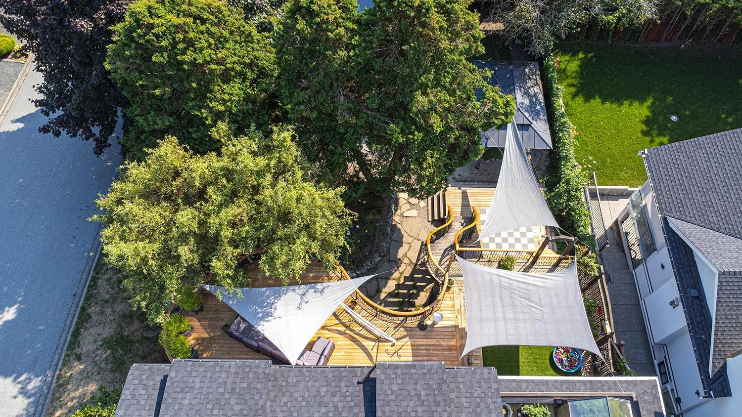 Calling all families! Discover this rare & inviting 2-storey + basement home with suite. Substantially & professionally renovated in 2002 & in the last 5 years, this 3,274 SF residence blends warmth and elegance with beautiful wood flooring, abundant natural light. The Mediterranean-inspired exterior creates an instant sense of welcome, while the home's many outdoor living spaces make it truly special. French doors open to a sprawling deck overlooking a deep, sun-soaked backyard. Out front, a private courtyard offers a peaceful retreat with hot tub and a rooftop deck provides all-day sunshine and stunning peek a boo views of the ocean. Inside, you'll find 5 bedrooms and 4 bathrooms, providing ample space for family living. Mature landscaping, flagstone pathways, and curated garden beds add to the home's charm. Easy care yard with new turf. Bonus features include: A bright basement suite with newer kitchen & bathroom; all new appliances; 2 new heat pumps; newer roof; freshly painted exterior. (id:27476)