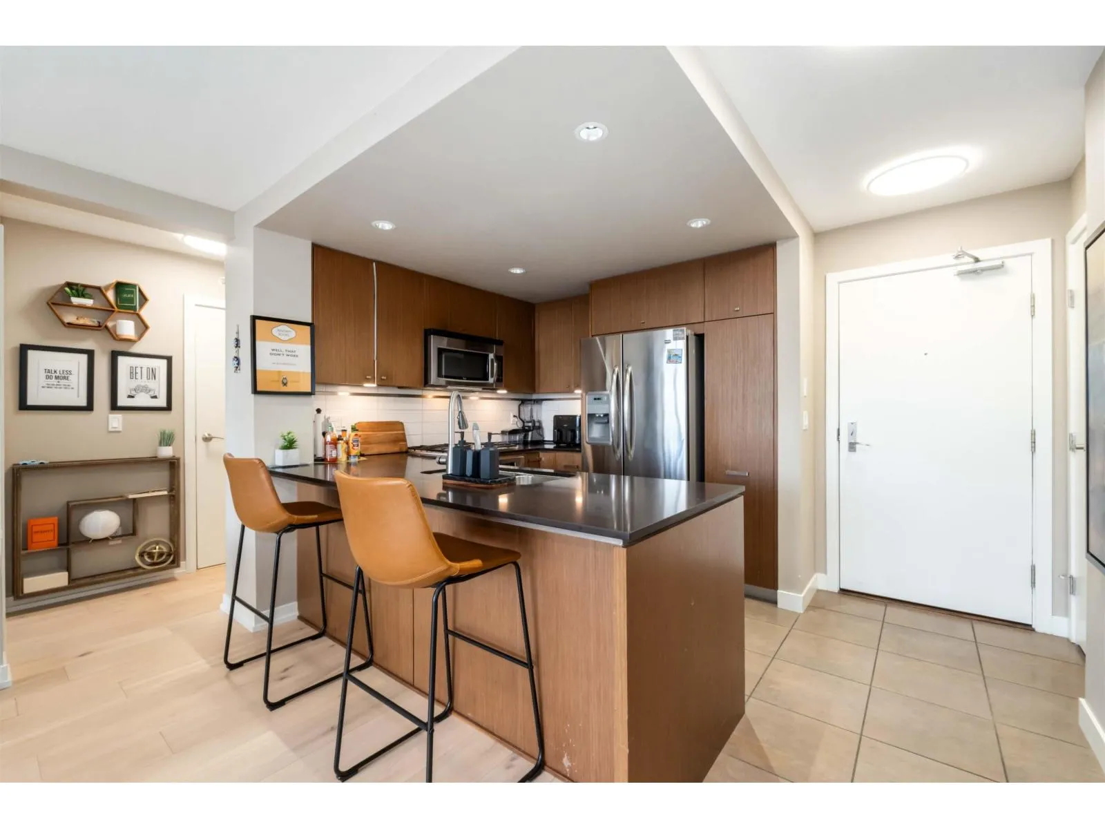 Welcome to High Point, a highly sought-after and well maintained community in the heart of South Surrey. This top floor corner unit offers the perfect blend of comfort and convenience with 2 bedrooms, 2 bathrooms, and 2 parking stalls. Enjoy a bright open concept layout featuring large windows that flood the space with natural light, a functional kitchen ideal for entertaining, and a cozy living area perfect for relaxing. Steps from Save-On Foods, Staples, Cactus Club, and the Tesla Supercharger station, this home combines lifestyle and location effortlessly. Whether you're downsizing, investing, or purchasing your first home, High Point offers unbeatable value and everyday ease. (id:27476)