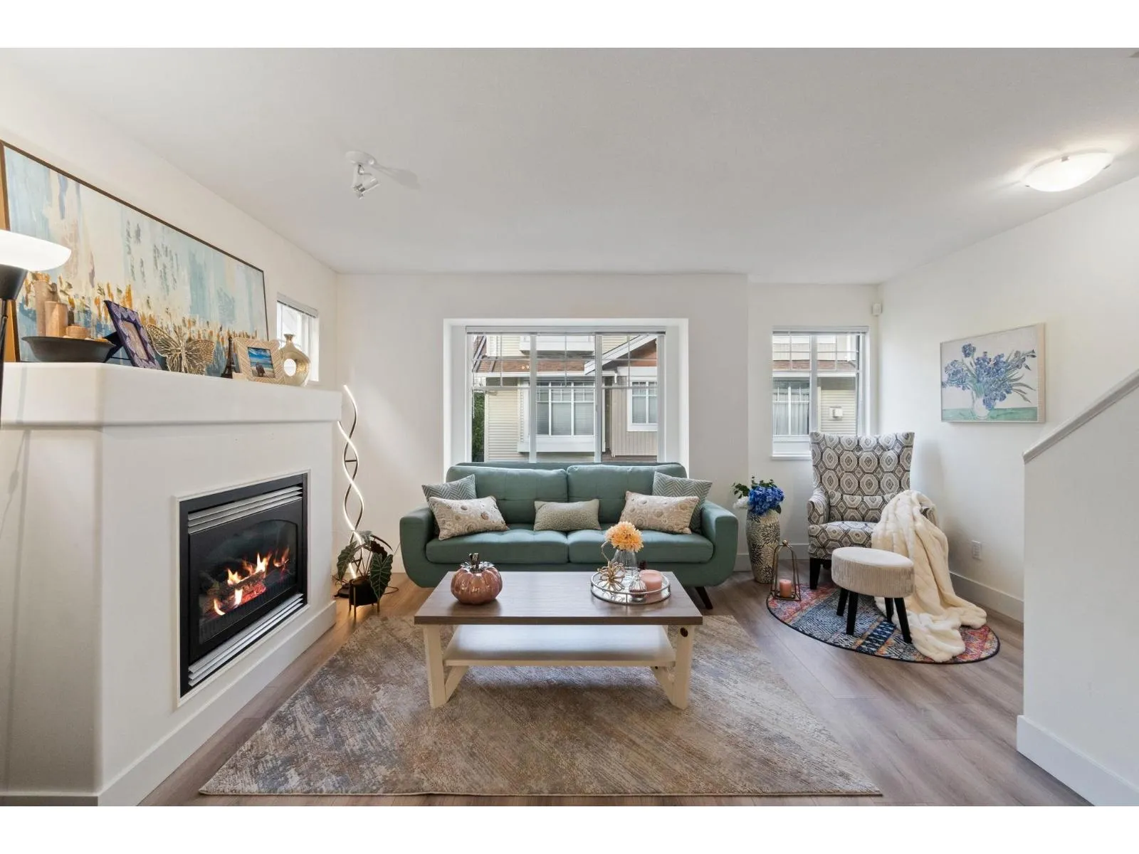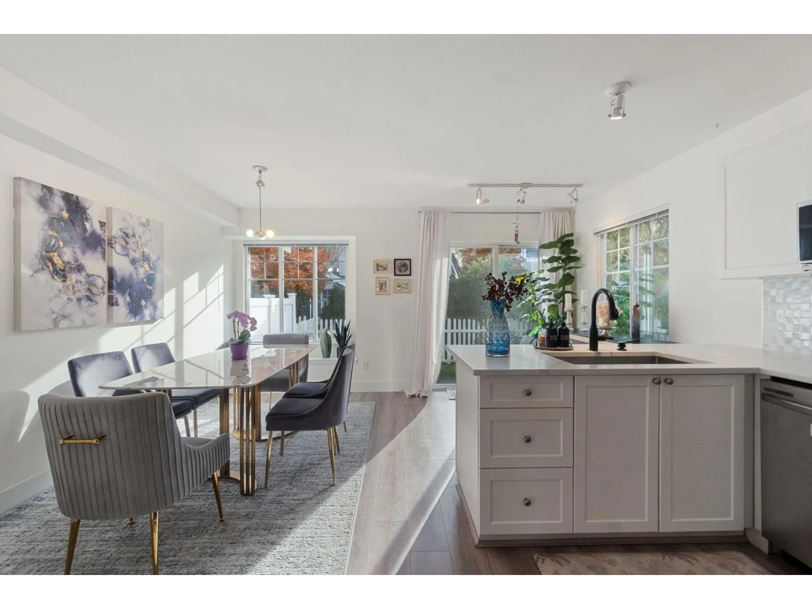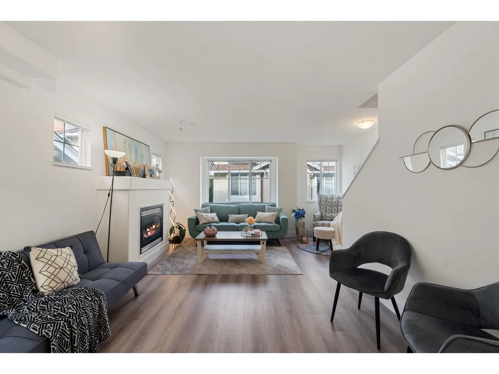 Do not miss this one! A bright 1,371 sqft corner townhouse featuring an open-concept layout with oversized windows, high ceilings & an abundance of natural light throughout. New updates include flooring, paint, kitchen countertops, Hot Water Tank, Heat Pump & AIR CONDITIONING. Great layout, kitchen opens directly onto a private patio & backyard-perfect for relaxing or entertaining. Upstairs, you'll find 2 bedrooms with the option to easily add a third. Garage provides parking for 2 vehicles plus room for storage or a workshop. Conveniently located near schools, shopping & transit. An excellent opportunity for 1st time buyers or investors alike-don't miss your chance to call this beautiful home your own! Open house sat/sun Nov 15&16 2-4pm (id:27476)