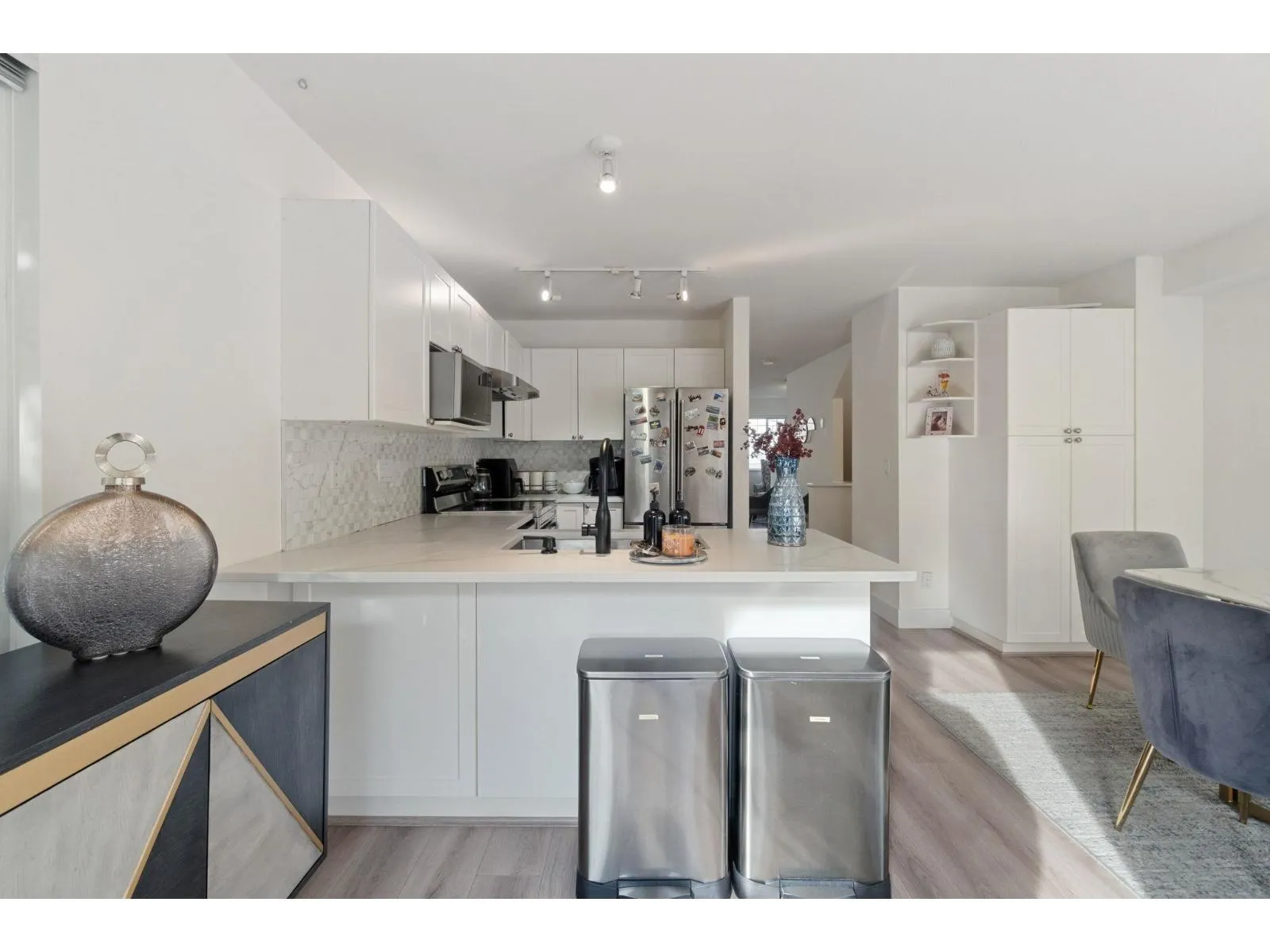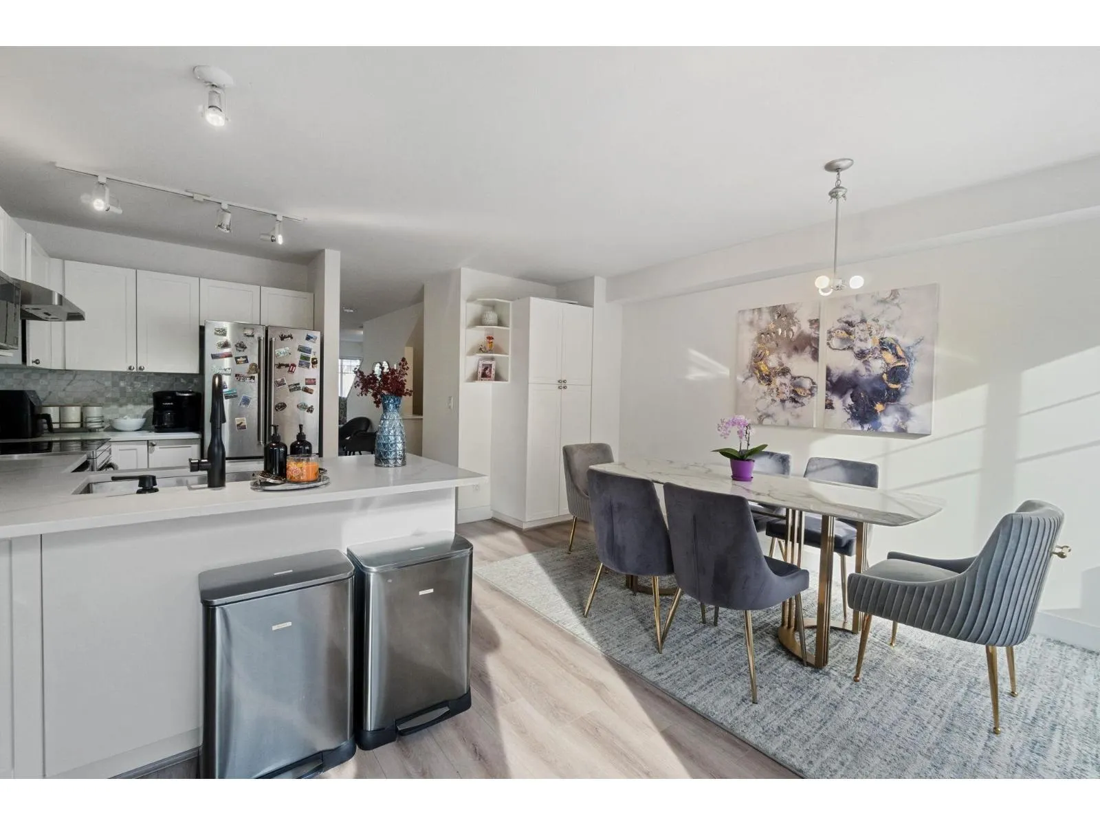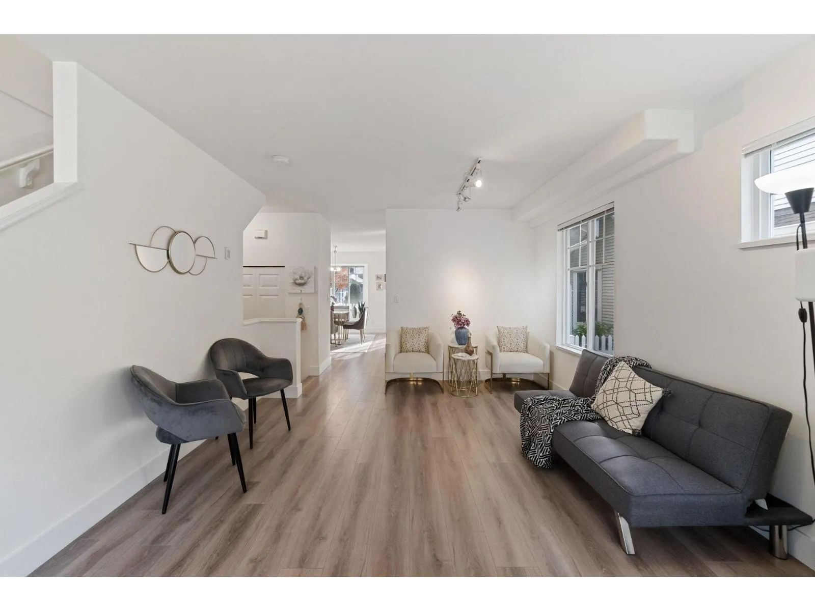 Do not miss this one! A bright 1,371 sqft corner townhouse featuring an open-concept layout with oversized windows, high ceilings & an abundance of natural light throughout. New updates include flooring, paint, kitchen countertops, Hot Water Tank, Heat Pump & AIR CONDITIONING. Great layout, kitchen opens directly onto a private patio & backyard-perfect for relaxing or entertaining. Upstairs, you'll find 2 bedrooms with the option to easily add a third. Garage provides parking for 2 vehicles plus room for storage or a workshop. Conveniently located near schools, shopping & transit. An excellent opportunity for 1st time buyers or investors alike-don't miss your chance to call this beautiful home your own! Open house sat/sun Nov 15&16 2-4pm (id:27476)