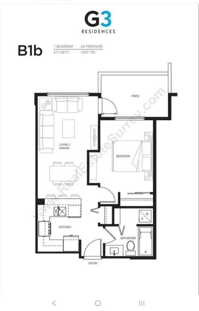 For more information, click the Brochure button.Below BC assessment price! In popular G3 Residences, safe and convenient location in Guildford mall area. Close to everything, transit, library, recreation centre, Hana Korean supermarket, T&T supermarket, Tynehead and Green Timber park. Easy access to highway #1. Great designer layout, 502sf but feels bigger, comfortable 9 ft ceiling, big bright east facing windows and balcony. Laminate flooring throughout, fresh paint, quartz counter, pre-wired cable/high speed internet, soaker tub, new bathroom sink and faucets, in suite laundry, secured underground parking, large storage locker, low strata fee, great amenities, guest suite, gym, pool, ping pong table, fully rain-screened, well-managed building. Cats, dogs friendly, no age restriction, rental ok. Quick possession. Some photos are staged. (id:27476)
