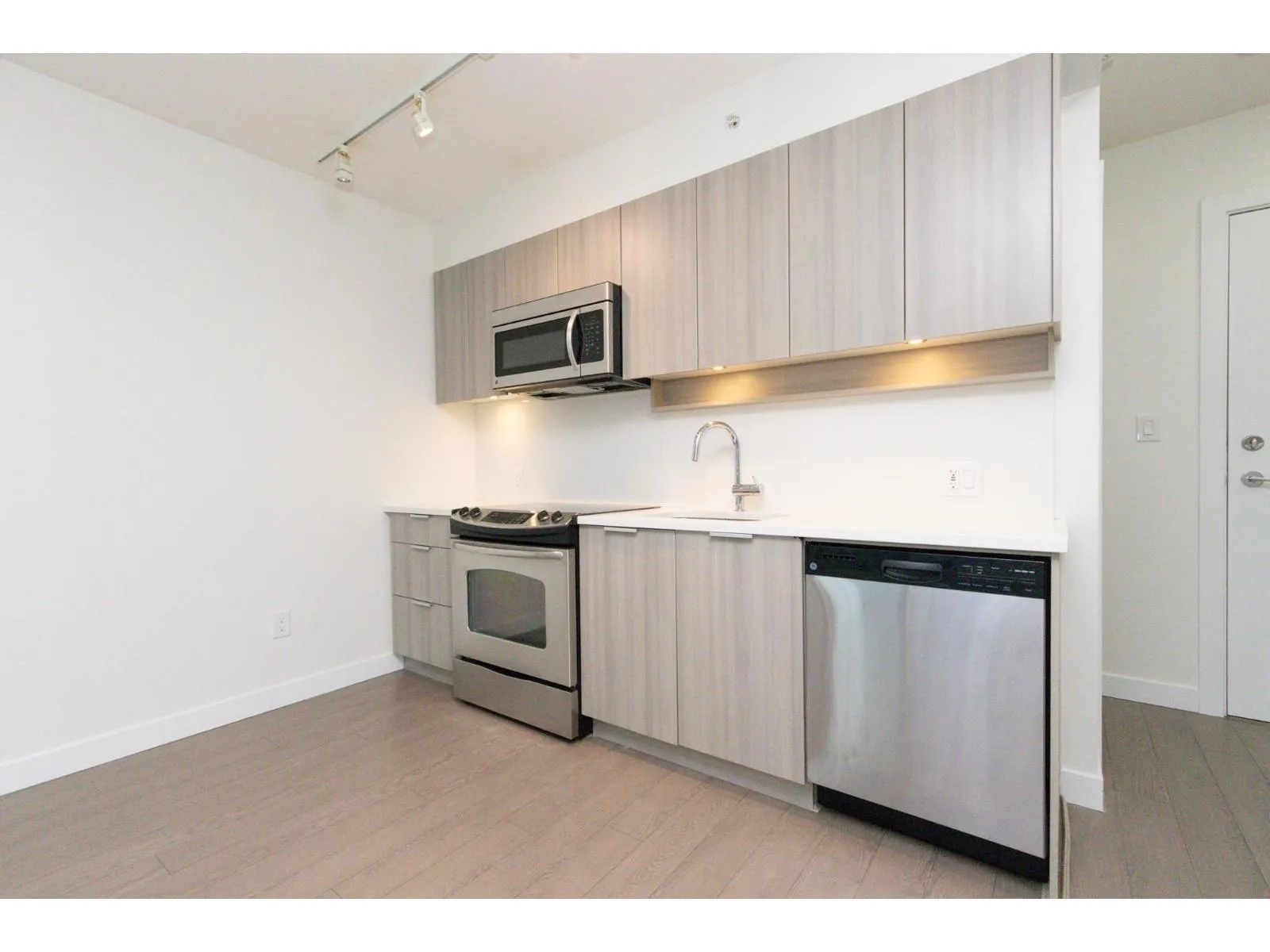 Welcome to Evolve! This modern 1-bedroom + den, 1-bath home offers a bright and efficient layout in the heart of Surrey City Centre. Floor-to-ceiling windows fill the space with natural light, highlighting the contemporary finishes and open-concept design. The functional floor plan includes a well-appointed kitchen, comfortable living area, and a versatile den-perfect for a home office or guest space. Located in one of Surrey's most convenient and rapidly growing neighborhoods, you're just steps from SFU Surrey, Surrey Central SkyTrain Station, Central City Shopping Centre, restaurants, and parks. Enjoy access to premium building amenities including a fitness center, meeting rooms, and rooftop lounge with panoramic views. A perfect blend of style, convenience, and urban living. (id:27476)