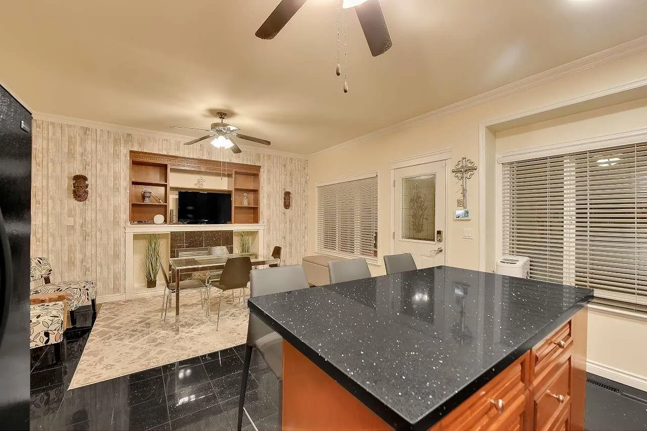 CLAYTON COACH HOUSE - Larger than average corner lot with a legal suite above the garage and extra parking! Located on the quieter side of 192 St, this 7-bed, 5-bath home includes 4 bedrooms upstairs, plus 2 in the basement and 1 in the coach house. The open-concept main floor offers a granite island kitchen with black appliances and granite flooring extending into the family room. French doors open to a flexible living area-ideal for an office or gym. The spacious primary suite includes a full ensuite. West-facing yard, abundant natural light, and only one neighbor add privacy and comfort. Enjoy a low-maintenance front yard, fenced backyard for kids/pets, double garage with shelving, side parking spot, and ample street parking. (id:27476)