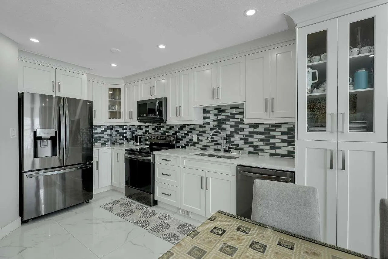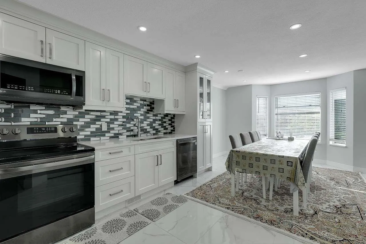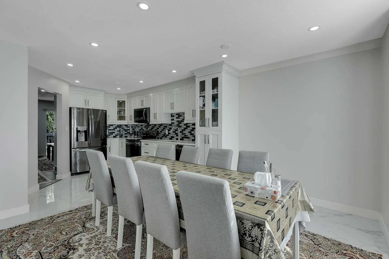 Location! This corner unit townhouse features a spacious layout with 4 bedrooms and 3 bathrooms, showcasing newer laminate flooring, new tile, kitchen cabinets, countertops, and appliances, all situated in the heart of the Fleetwood area. The main floor includes a large kitchen with an eating area, a combined living and dining room with a cozy gas fireplace, and sliding doors leading to a large deck. Enjoy a private patio and yard off the fourth bedroom.The lower level offers a fourth bedroom, an office, and another bathroom. An attached single garage This prime location is within walking distance to shopping, restaurants, and Berkshire Park Elementary, with transit just steps away. Additionally, the property is zoned for future development project and is close to the new SkyTrain. (id:27476)