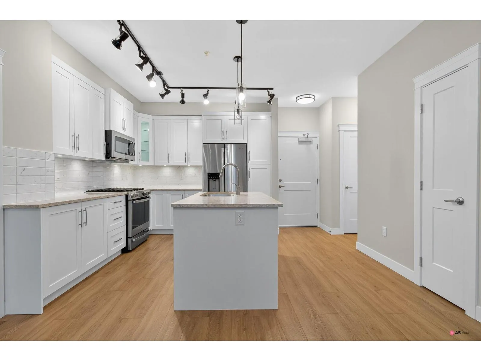 Located in Surrey's Approved Downtown area, this stunning home features a modern design with vaulted ceilings, a patio with natural gas BBQ hookup, and a gourmet kitchen with stainless steel appliances, including a dual-fuel oven and gas range. Enjoy upgraded countertops, cabinets, heated bathroom floors, built-in wall safe, and garburator. Amenities include a 5,000 sq.ft. gym/meeting room and a rooftop lounge with playground and gardens. Walking distance to SkyTrain. Strata fee includes heat, hot water & gas! ***Open House - Sat & Sun [Nov 15 & 16] 2pm-4pm.*** (id:27476)