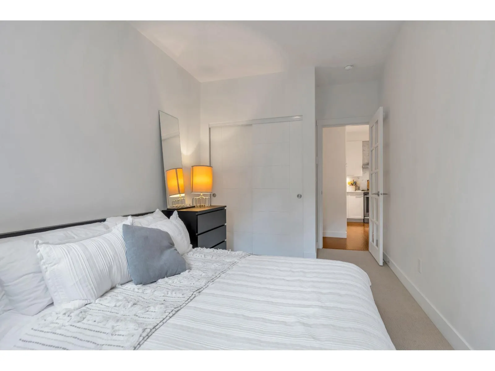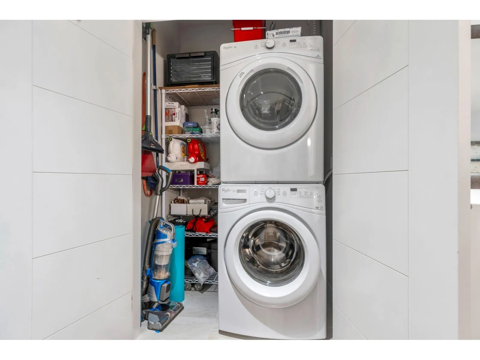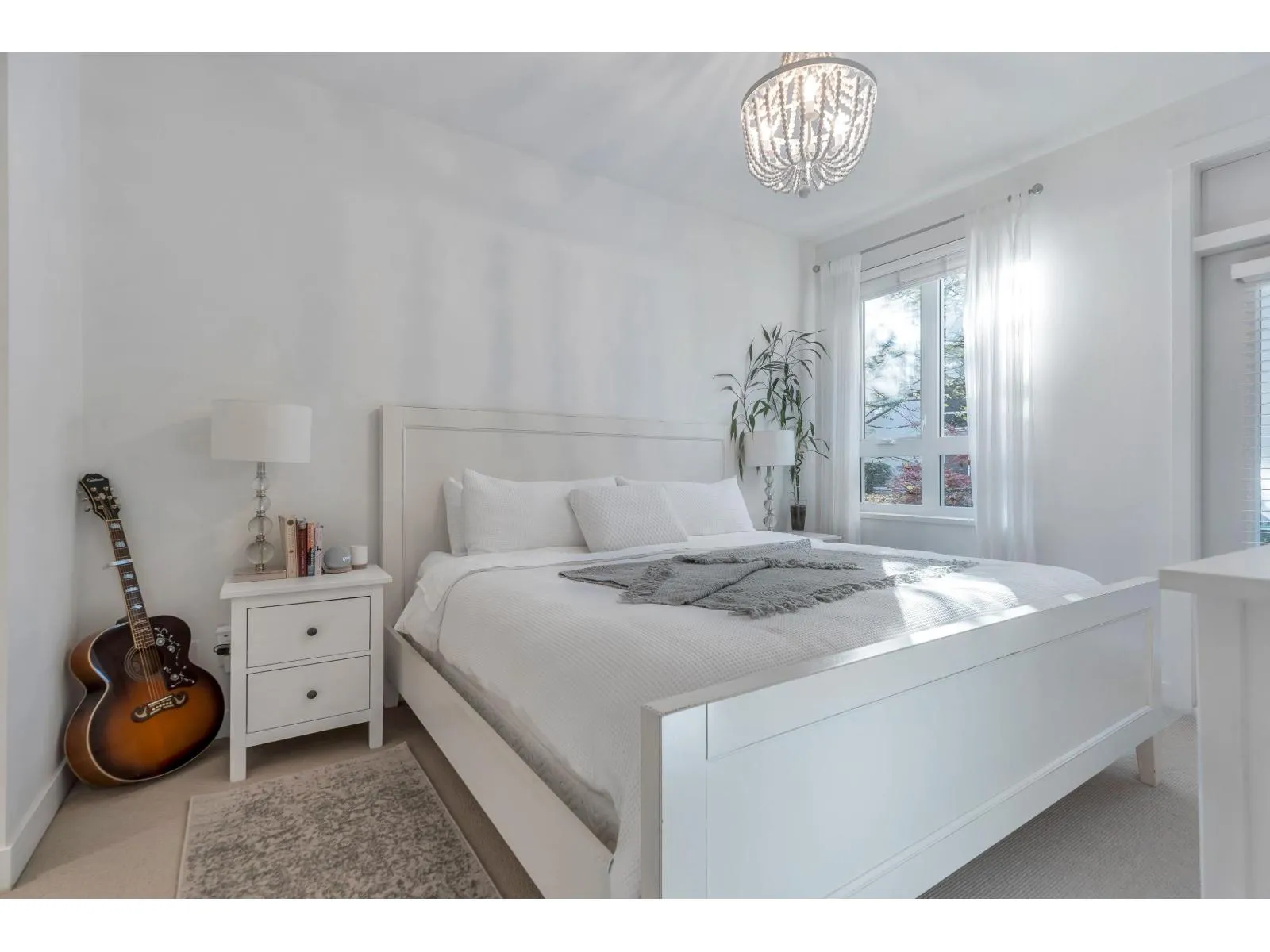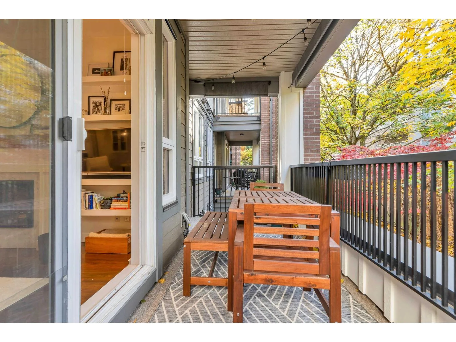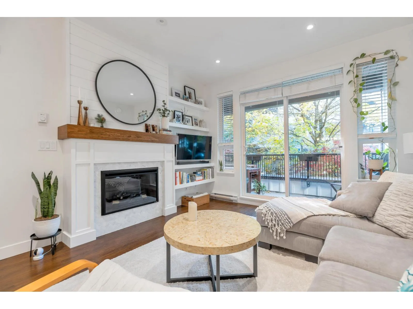 Welcome to this beautifully designed 2-bedroom, 2-bathroom unit, tucked away on the quiet side of the building for ultimate privacy. The home features a sleek, modern aesthetic with high-end finishes throughout. along with numerous upgrades. The Natural light pours into the open-concept living space, which is complemented by a stylish and cohesive color palette. The gourmet kitchen is a standout, showcasing a custom tile backsplash, a gas range, and premium appliances-perfect for both everyday meals and entertaining guests. Step outside onto your private, covered deck, where you can relax and enjoy views of a serene greenbelt. Storage locker and two side-by-side parking spots. (id:27476)