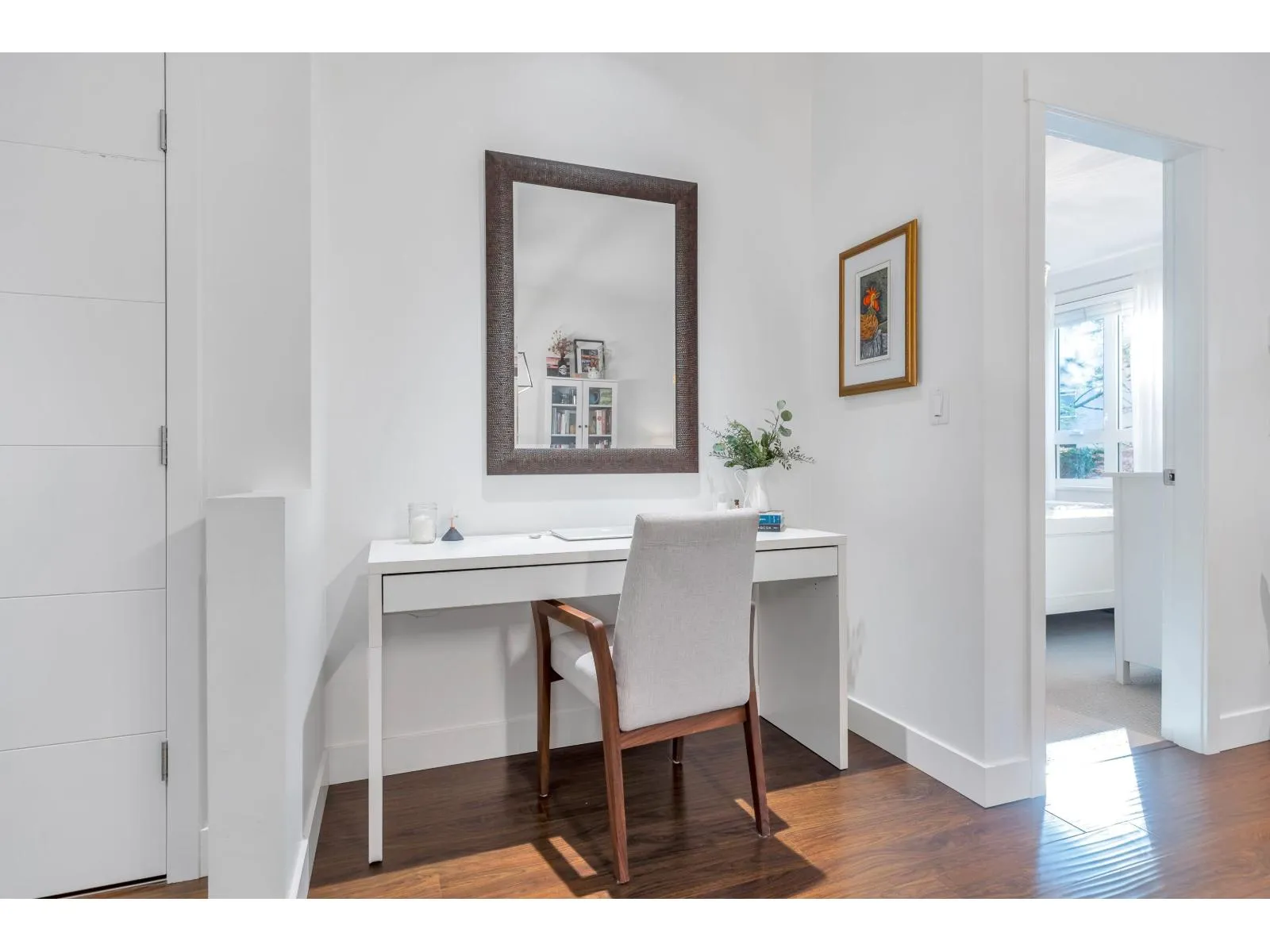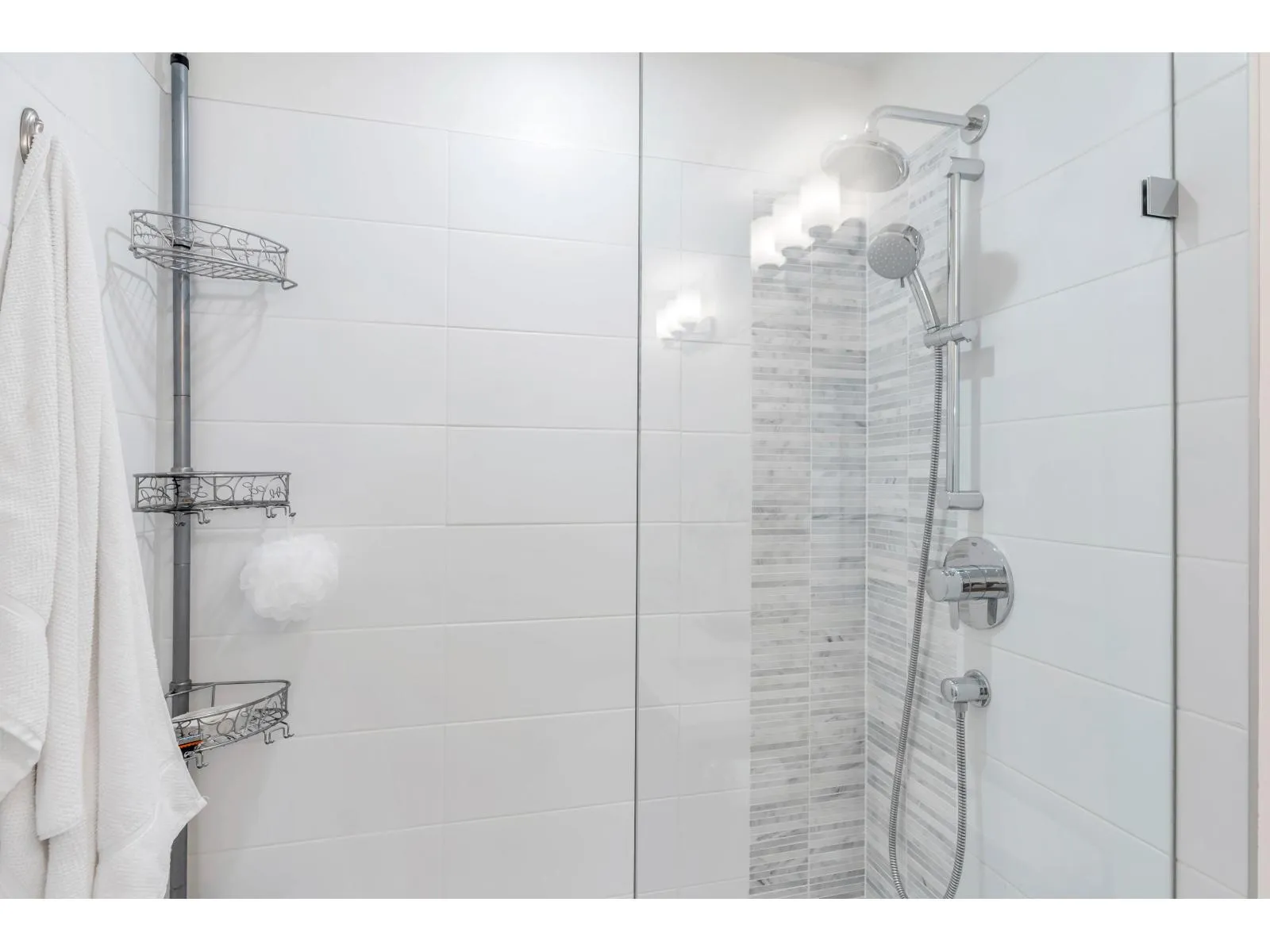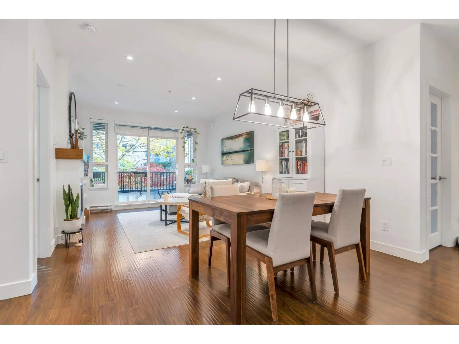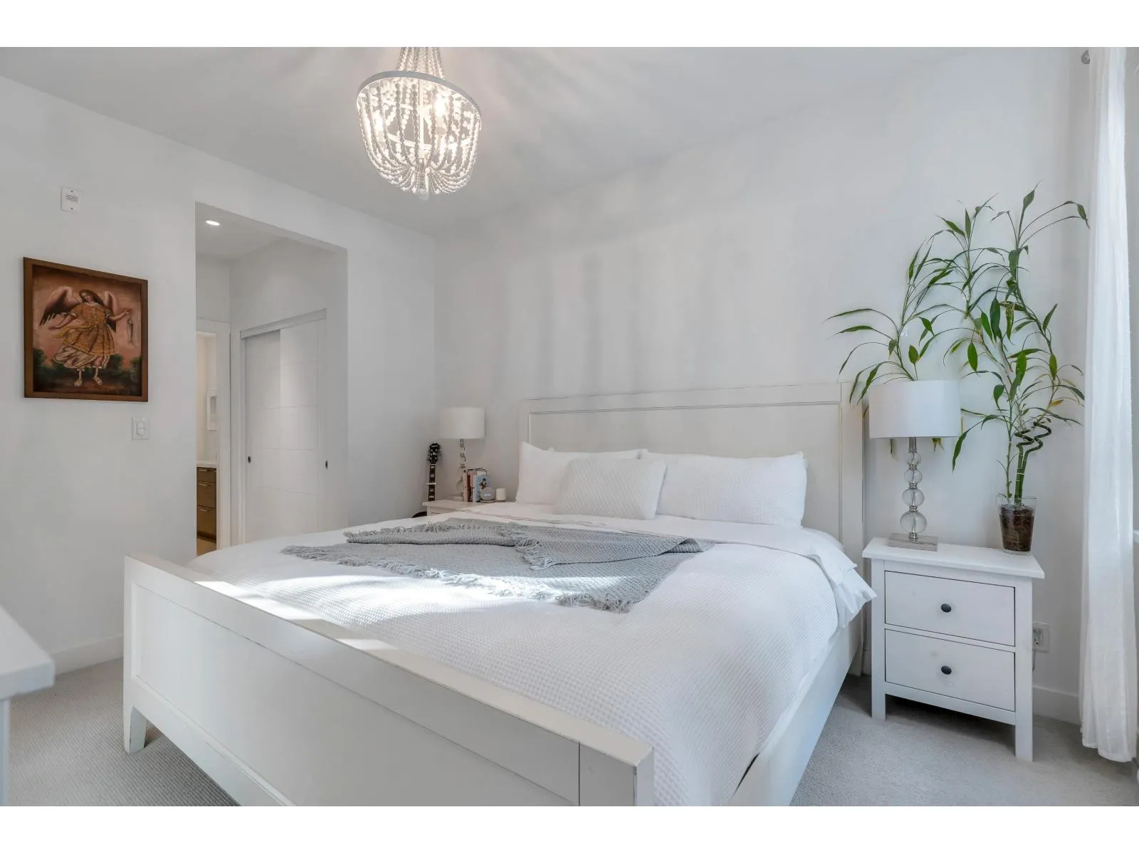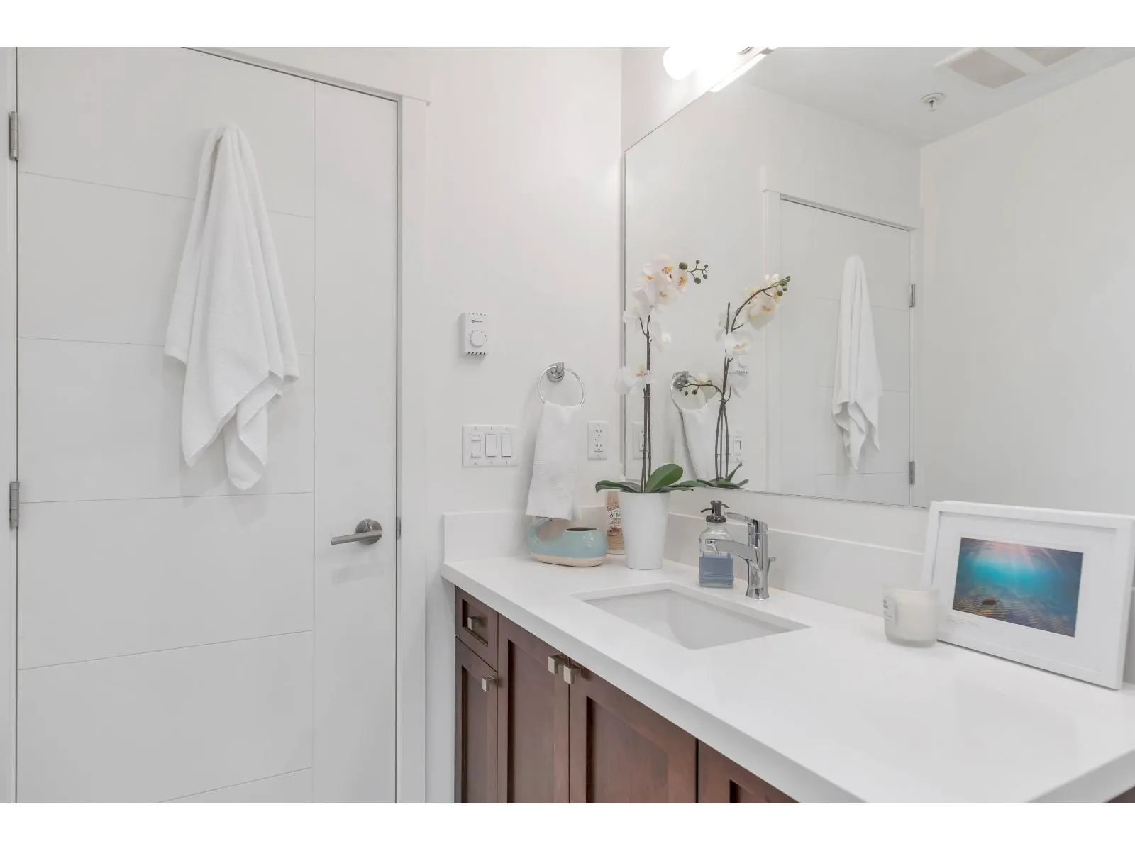 Welcome to this beautifully designed 2-bedroom, 2-bathroom unit, tucked away on the quiet side of the building for ultimate privacy. The home features a sleek, modern aesthetic with high-end finishes throughout. along with numerous upgrades. The Natural light pours into the open-concept living space, which is complemented by a stylish and cohesive color palette. The gourmet kitchen is a standout, showcasing a custom tile backsplash, a gas range, and premium appliances-perfect for both everyday meals and entertaining guests. Step outside onto your private, covered deck, where you can relax and enjoy views of a serene greenbelt. Storage locker and two side-by-side parking spots. (id:27476)