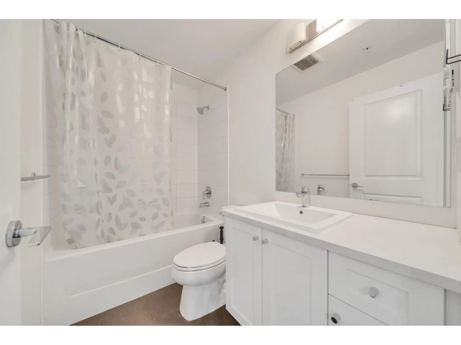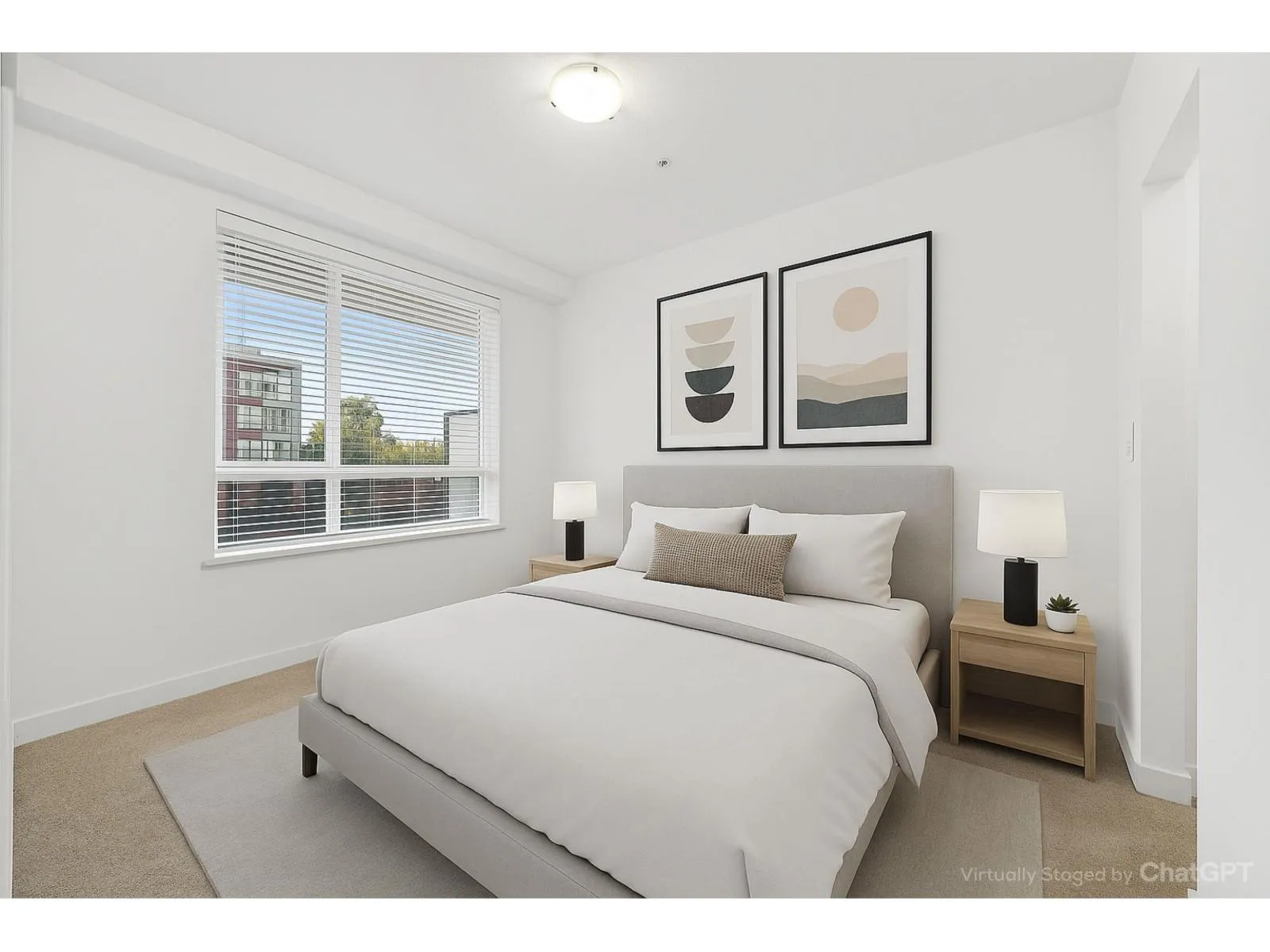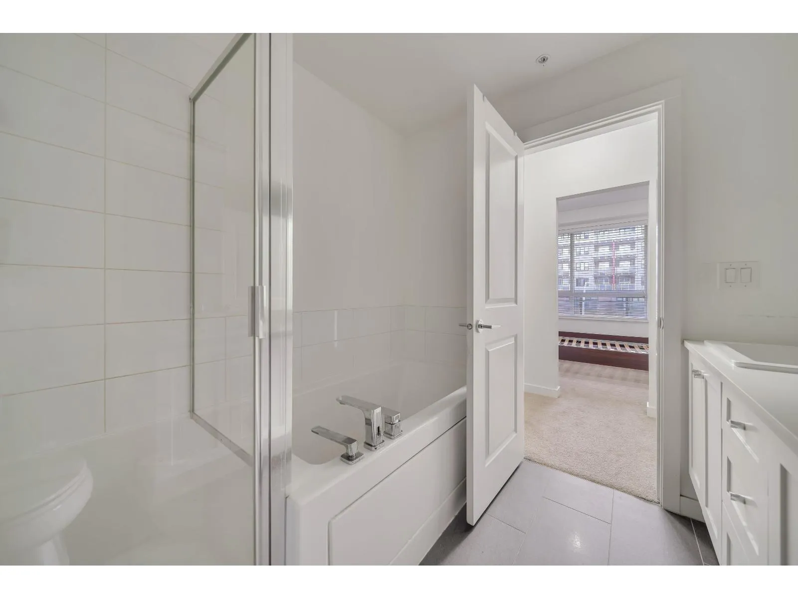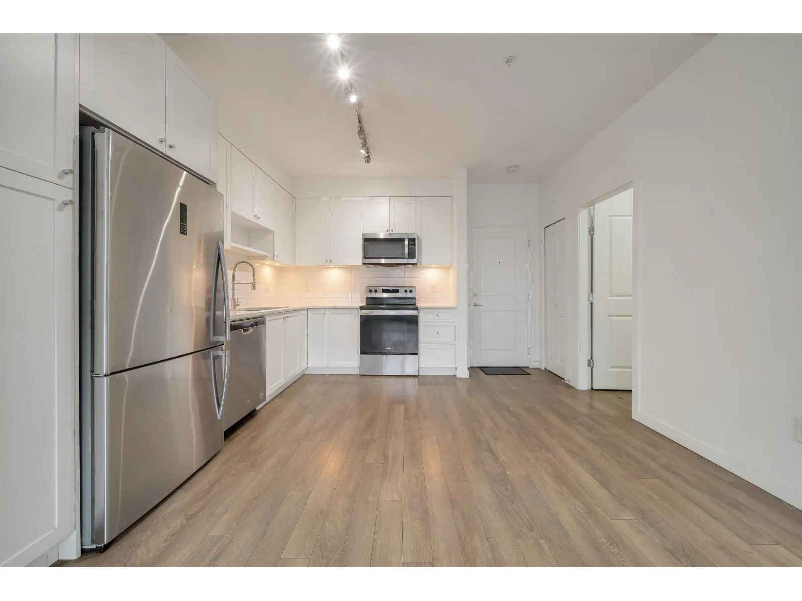 Welcome to Kings Landing by Dawson + Sawyer in the heart of Surrey's Bear Creek Green Timbers community. This bright and modern 3-bedroom, 2-bathroom condo features soaring 10-foot ceilings, an open-concept layout, and premium finishes throughout. The stunning white kitchen is designed for both style and function, complete with quartz countertops, a spacious island, and high-end stainless steel appliances-perfect for cooking and entertaining. The inviting primary bedroom offers a walk-in closet and private ensuite, while a versatile den provides extra space for a home office or study. Step onto your covered balcony for a quiet outdoor retreat. This home also includes in-suite laundry, a storage locker, and secured underground parking with the option to add an additional stall. Residents enjoy access to a clubhouse and more in this sought-after, pet-friendly community. A move-in-ready condo in a prime Surrey location-don't miss it! (id:27476)