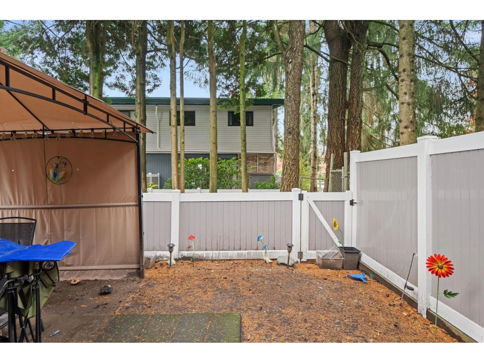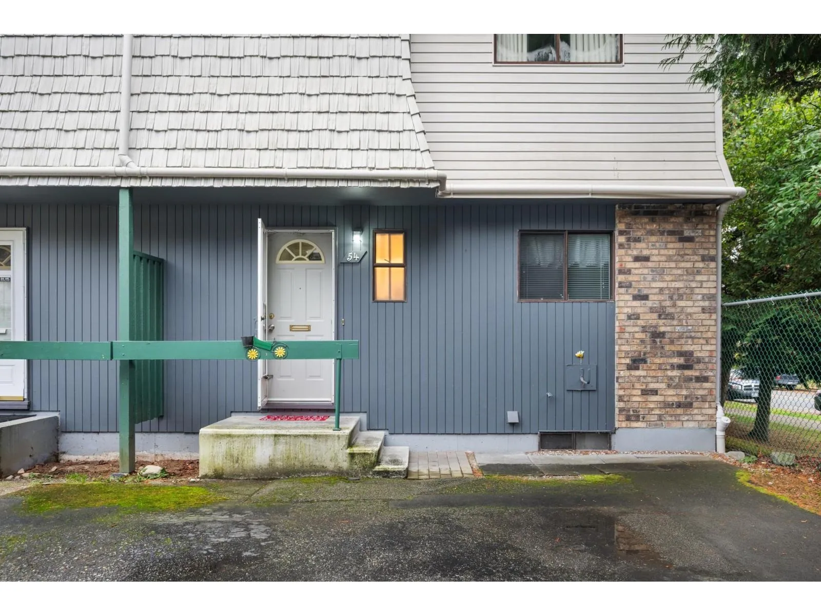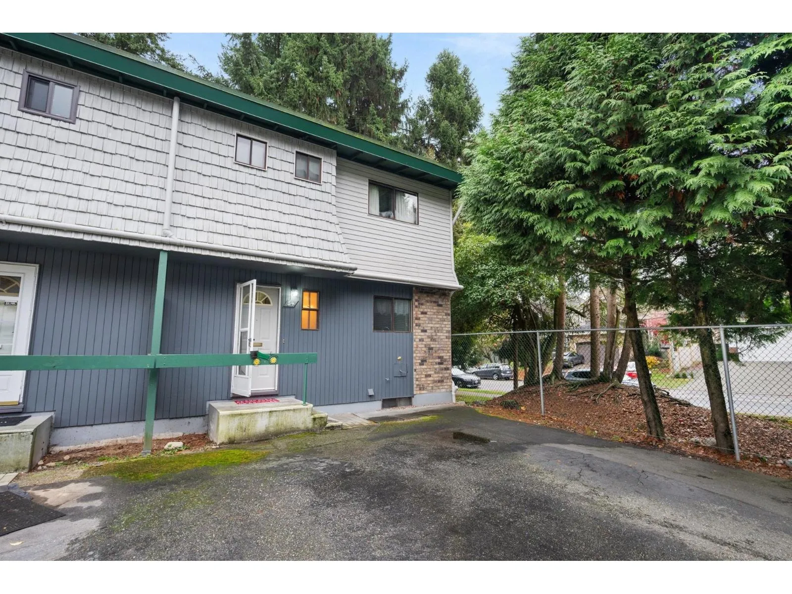 FIRST TIME BUYER OR INVESTOR. END UNIT! Welcome to Woodbridge. Well maintained 3 bedroom 3 bath townhome, located in a desirable, family oriented Guildford neighborhood. Main floor boasts hardwood floors, updated powder room, spacious living, dining and kitchen areas plus sliding doors to southern exposed fully fenced yard. Upstairs you will find primary bedroom with 2 piece ensuite, updated 4 piece bath and two more generously sized bedrooms. Downstairs has large laundry with unfinished Rec.room with wet bar awaiting your ideas. Great affordable family complex and a great opportunity to get into a townhome. Tenant would like to stay. Great rental income and wait for future development potential. (id:27476)