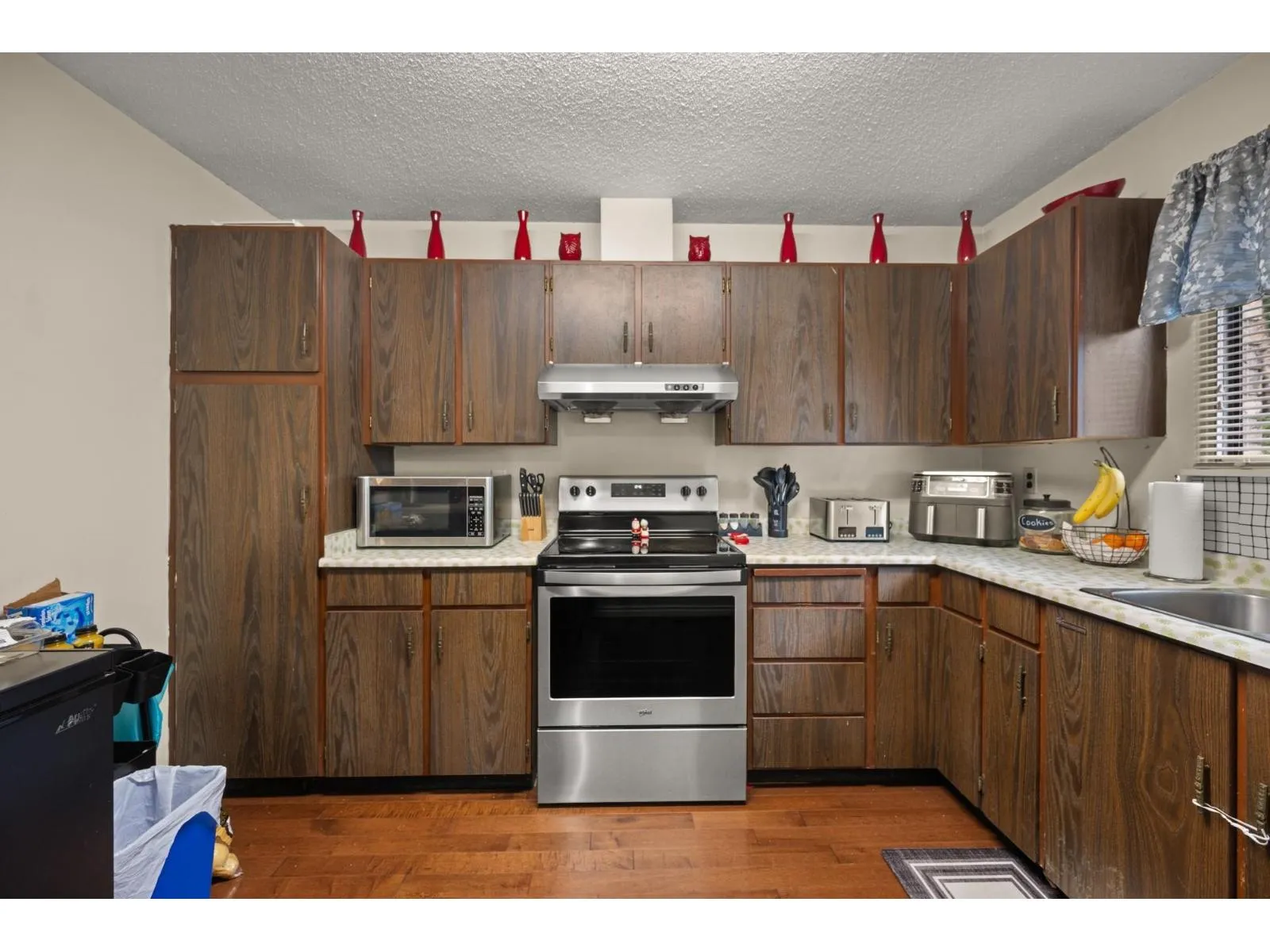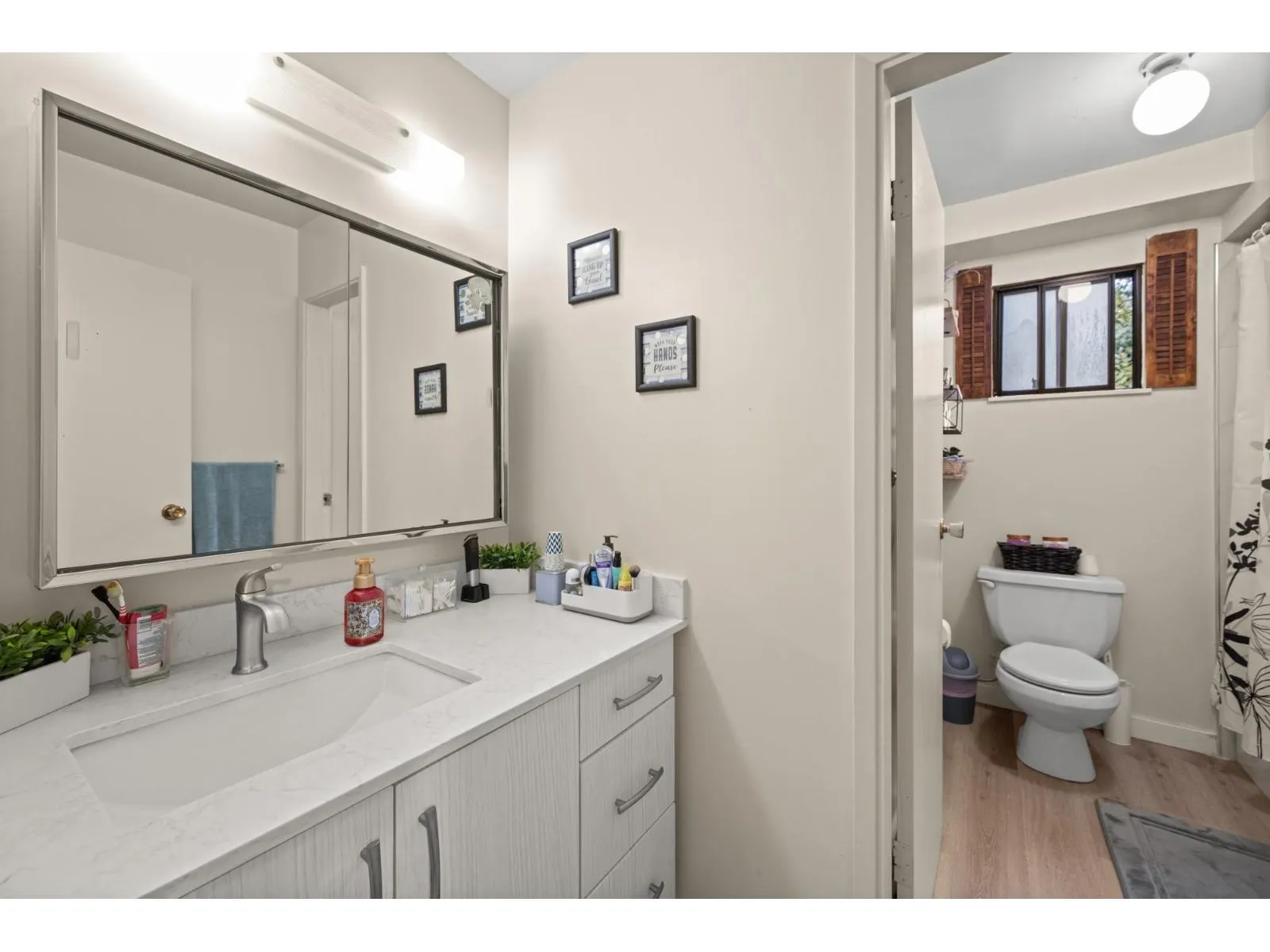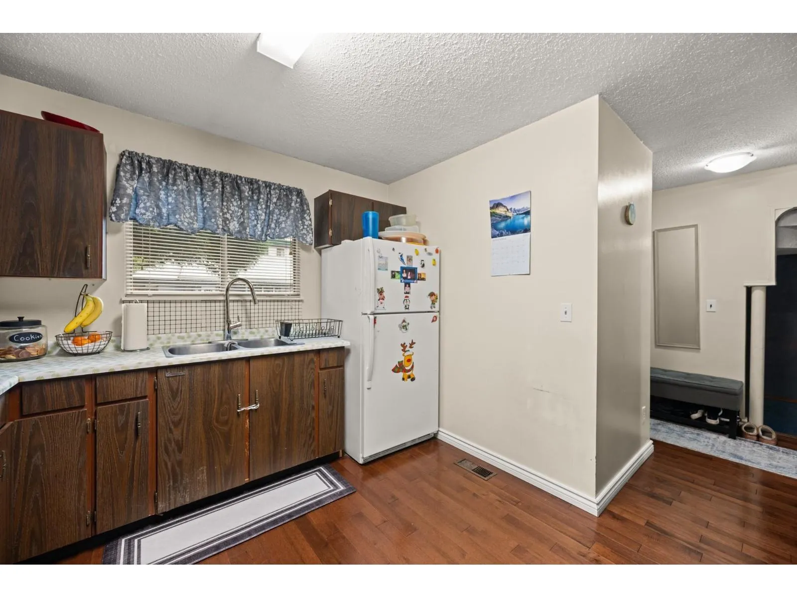 FIRST TIME BUYER OR INVESTOR. END UNIT! Welcome to Woodbridge. Well maintained 3 bedroom 3 bath townhome, located in a desirable, family oriented Guildford neighborhood. Main floor boasts hardwood floors, updated powder room, spacious living, dining and kitchen areas plus sliding doors to southern exposed fully fenced yard. Upstairs you will find primary bedroom with 2 piece ensuite, updated 4 piece bath and two more generously sized bedrooms. Downstairs has large laundry with unfinished Rec.room with wet bar awaiting your ideas. Great affordable family complex and a great opportunity to get into a townhome. Tenant would like to stay. Great rental income and wait for future development potential. (id:27476)