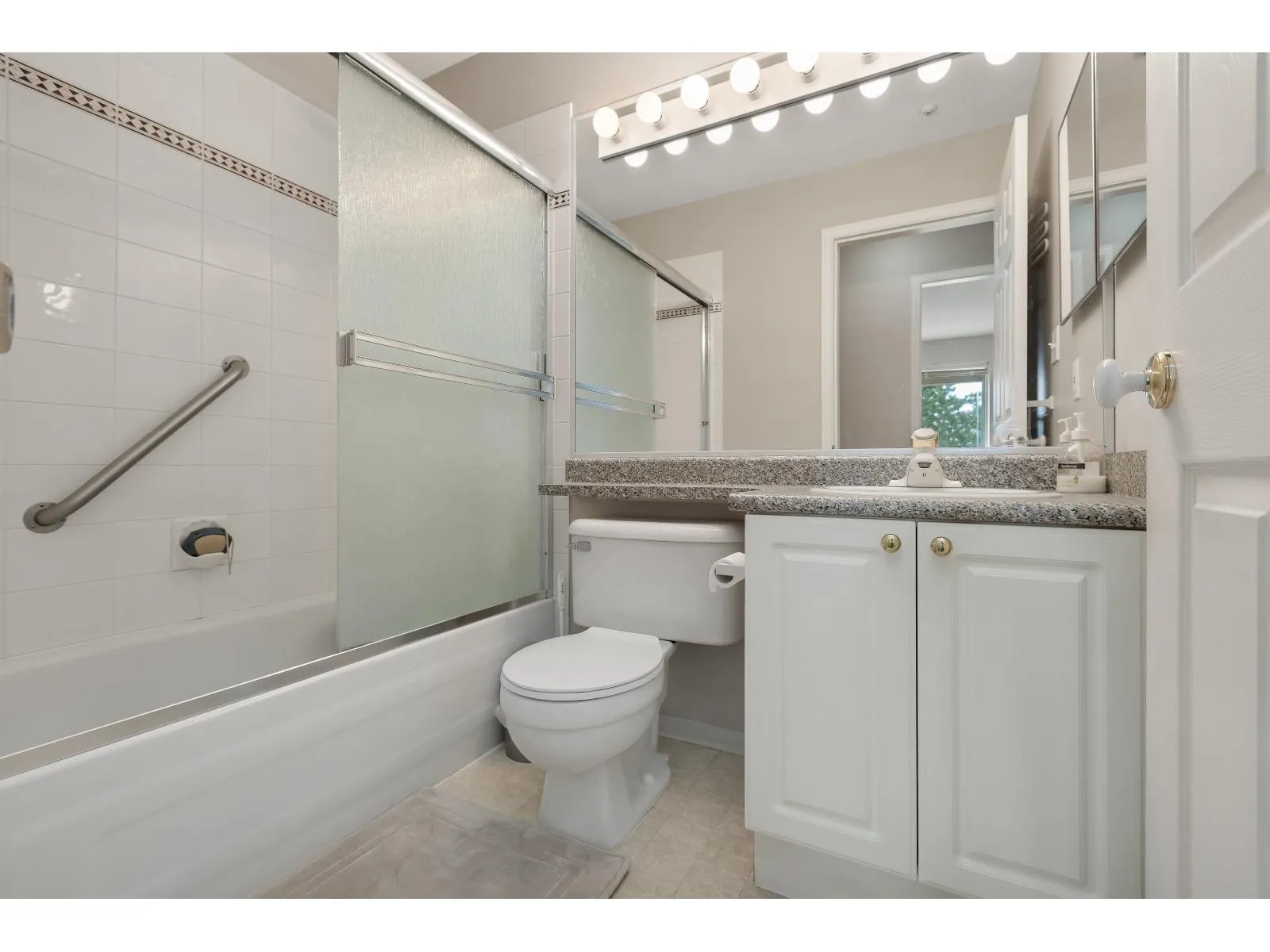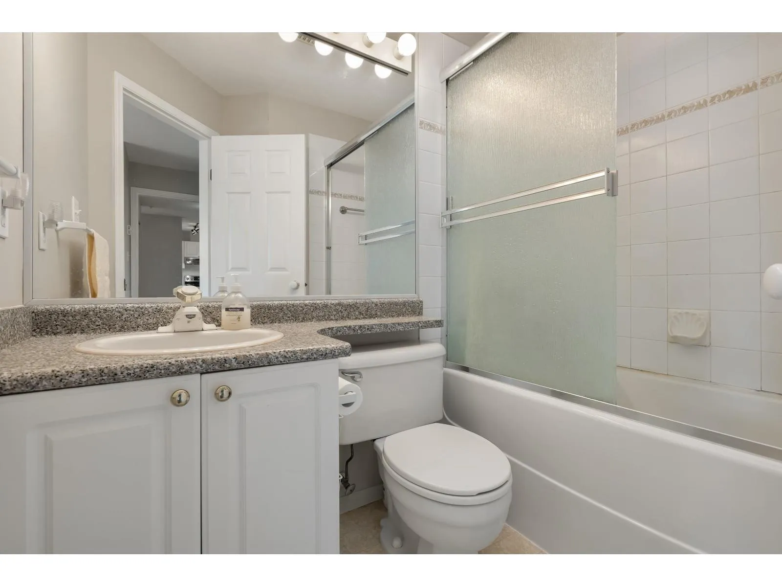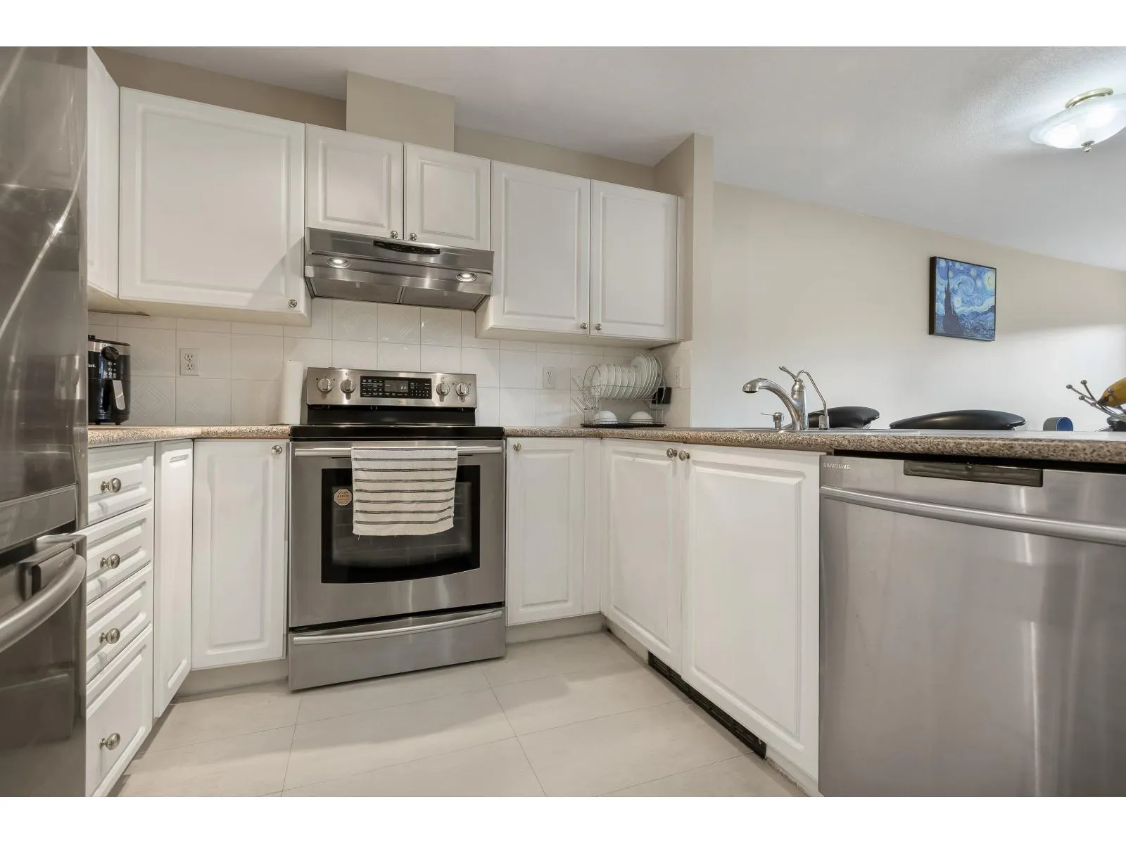 Welcome to Knightsbridge at King's Court, a centrally located 2-bedroom, 2-bath condo in Surrey's East Newton. This bright and beautifully renovated home features a functional layout with a European-style kitchen that flows seamlessly into the sunny living and dining areas. Both the living room and primary suite open onto a large private deck surrounded by evergreens, perfect for relaxing or entertaining. The spacious primary bedroom includes a full ensuite and deck access, while the second bedroom is served by another full bath. Enjoy the convenience of in-suite laundry, fire sprinklers, an alarm system, a storage locker, and 2 secure underground parking stalls. Gas and hot water are included in your strata fees. Residents benefit from amenities such as an exercise centre, bike room, and landscaped courtyard. Just steps to Superstore, Costco, shops, restaurants, and transit, this move-in-ready home combines comfort with unbeatable convenience. Presentation of offers October 27, 2025 at 6pm. (id:27476)