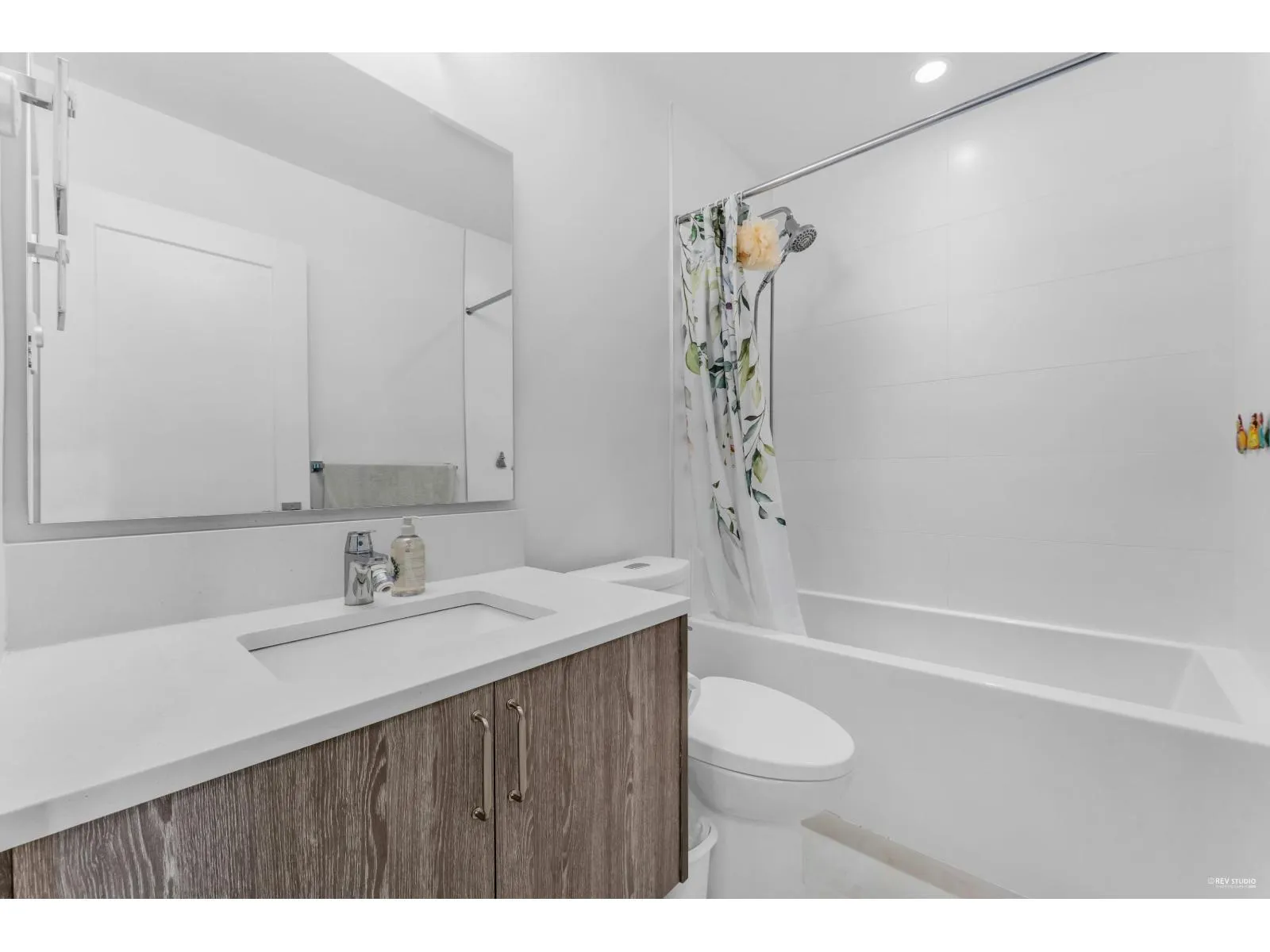 Located in the Canopy community at Tynehead Park, this 4-bed/3.5-bath home features a ground-floor bedroom with full bath, perfect for in-laws or guests. The main level offers a spacious open living, dining, and kitchen area with quartz counters, gas range, and stainless appliances, plus a large deck. Upstairs is a huge primary bedroom that fits a king bed, with walk-through closets and ensuite, plus two additional bedrooms. With a bathroom on every floor and a double side-by-side garage, convenience is built in. Close to the clubhouse, gym, trails, transit, and shopping. Open House Sun 23, 1:30-3:30 PM. (id:27476)