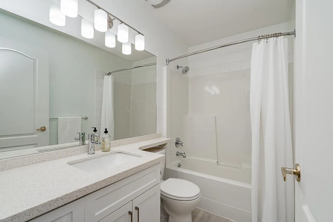 Spacious and bright 2-bedroom, 2-bath condo offering 1,236 sq. ft. of updated living in central Cloverdale. Features include a modern kitchen, refreshed bathrooms, new paint, hardwood flooring, and radiant heat. Large windows fill the open layout with natural light. Enjoy a private balcony facing the peaceful courtyard-perfect for relaxing. Situated in a well-maintained, highly regarded strata close to shops, parks, and transit, this home offers comfort, convenience, and move-in-ready appeal. (id:27476)