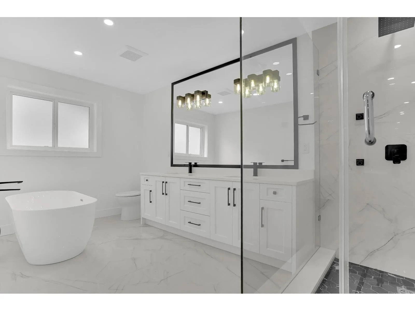 Discover luxury living in this brand new, custom-built home in Cloverdale! As you step inside, you're greeted by a modern open-concept floor plan which is perfect for entertaining and everyday living. Designed to optimize comfort, this residence includes Central A/C, automatic blinds, and RADIANT heating across all 3 levels. The chef's kitchen is a culinary MASTERPIECE, featuring top-of-the-line KitchenAid appliances, PREMIUM countertops/cabinetry, and a spacious spice kitchen + pantry. There are 2 master suites with one conveniently located on the main floor. The master suite features a spa-like bathroom with a freestanding soaking tub, a rainfall shower, and custom walk-in closet. Basement includes a theatre room, mud room, and an expansive 2 bedroom legal suite (id:27476)