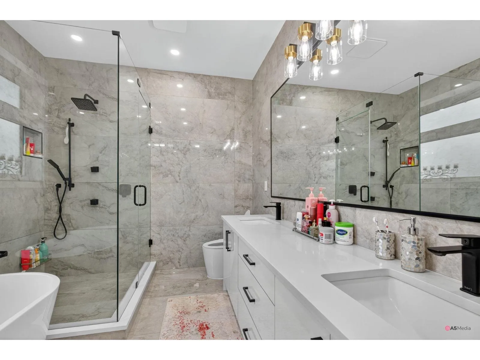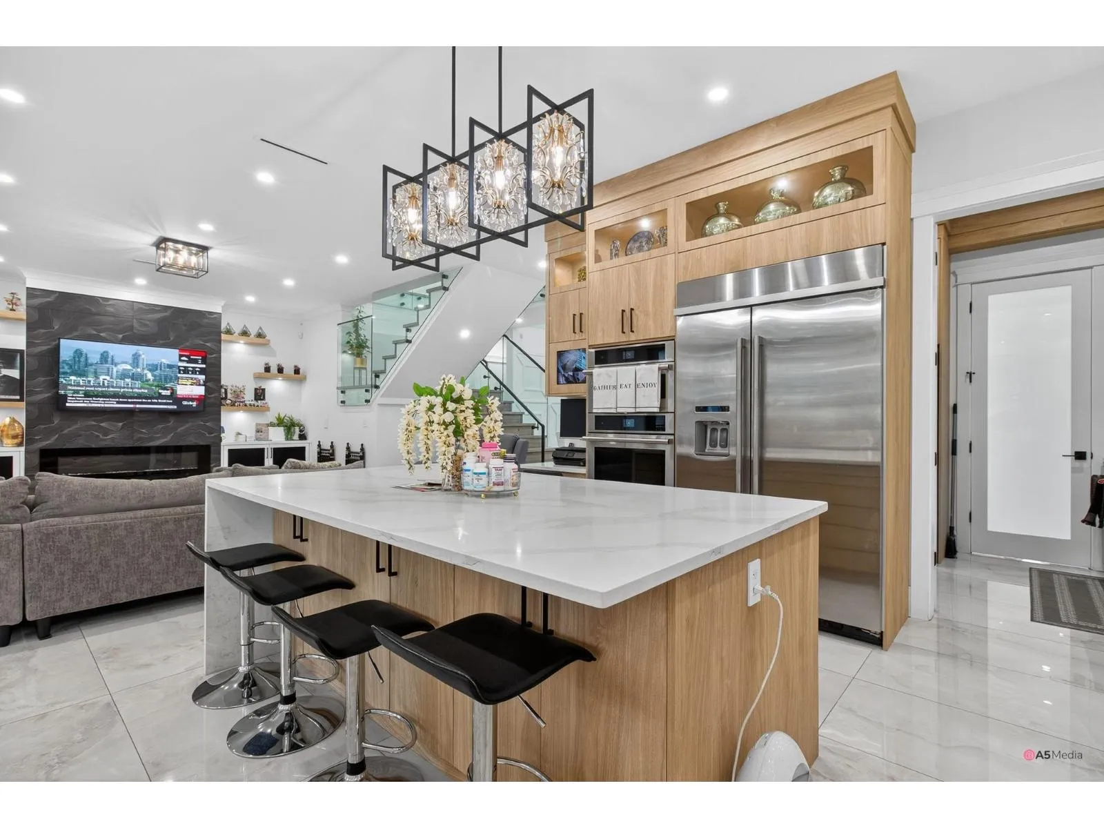 Stunning 2-storey Custom Home on expansive 7,700+ SQFT lot! Grand double-door entry, soaring ceilings, designer fixtures, chef's kitchen featuring premium acrylic cabinets, top-tier JenAir & Samsung appliances, built-in fridge, wall oven/microwave, massive island for prep & storage. Separate wok kitchen w/ gas range, stove, dishwasher. Upper level: 4 Bedrooms each w/ their own ensuites & Walk-in Closets. Legal 2-bed suite, plus main-floor bedroom w/ full bathroom. Luxury features: radiant heat, central A/C, central vac, integrated cameras & alarm. EV charger ready, ample parking for vehicles & RV. Easy-care yard w/ synthetic turf, paver stones, full fence. (id:27476)