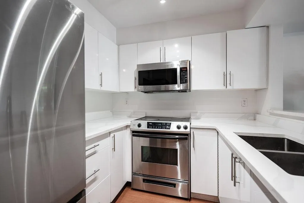 Freshly renovated and move-in ready, this home makes everyday life simple and enjoyable. The kitchen has been updated for modern living, the spacious open layout flows naturally, and your private balcony looks out to a peaceful, tree-lined street, a rare sense of calm and safety in the city. You'll also have in-suite laundry, secure parking, and extra storage, with a building that's pet- and rental-friendly, complete with bike storage and a guest suite for visitors. All of this in Queen Mary Park, one of Surrey's most walkable neighbourhoods. Groceries, cafés, restaurants, parks, and transit are all just steps away, so you can leave the car behind and enjoy the convenience of having everything right at your door. Parking and Locker included. Photos virtually staged to show layout & potential. Original empty photos included for reference. (id:27476)