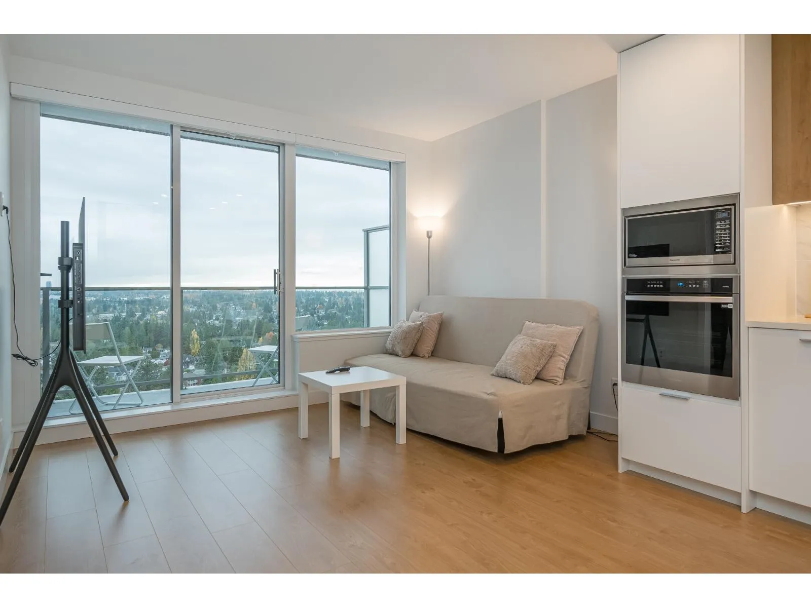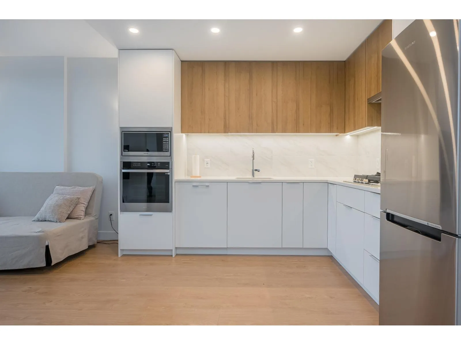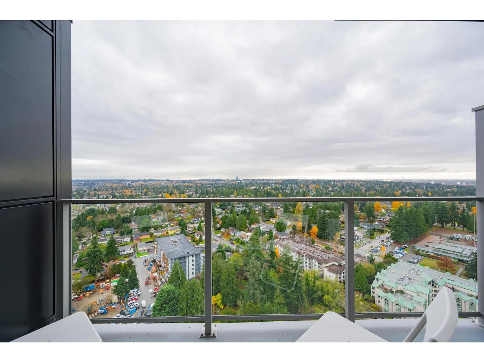 Experience breathtaking southwestern views spanning the city skyline, mountains, and Gulf Islands from this PENTHOUSE unit at The Holland by Townline! This owner occupied top floor 1 bed, 1 bath, 500 sq. ft. home features an efficient open layout, complete with A/C. The modern kitchen showcases Samsung appliances including gas range, quartz counters and ample storage. Bright living area with wide plank flooring opens to the balcony. Steps to SkyTrain, SFU, Central City Mall and Holland Park. Building amenities include gym, co-work/meeting rooms, party lounge and concierge. Ideal for first-time buyers or investors. 1 parking + 1 locker included. (id:27476)