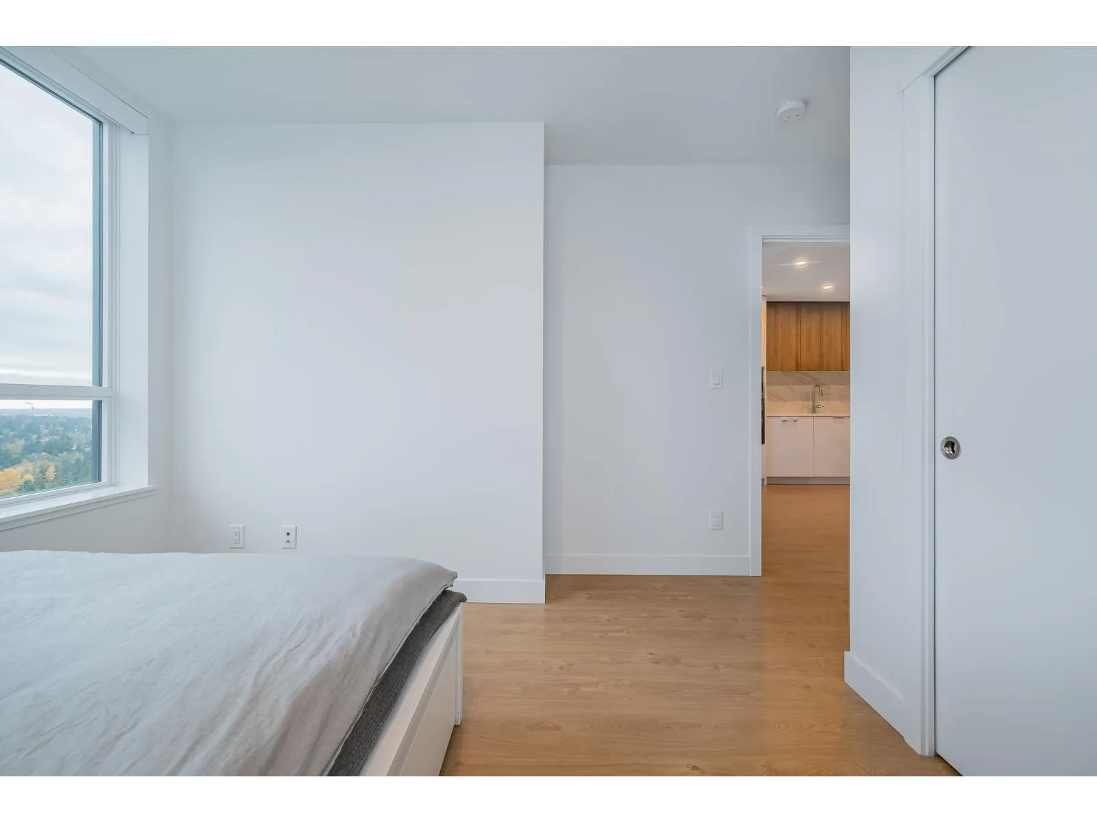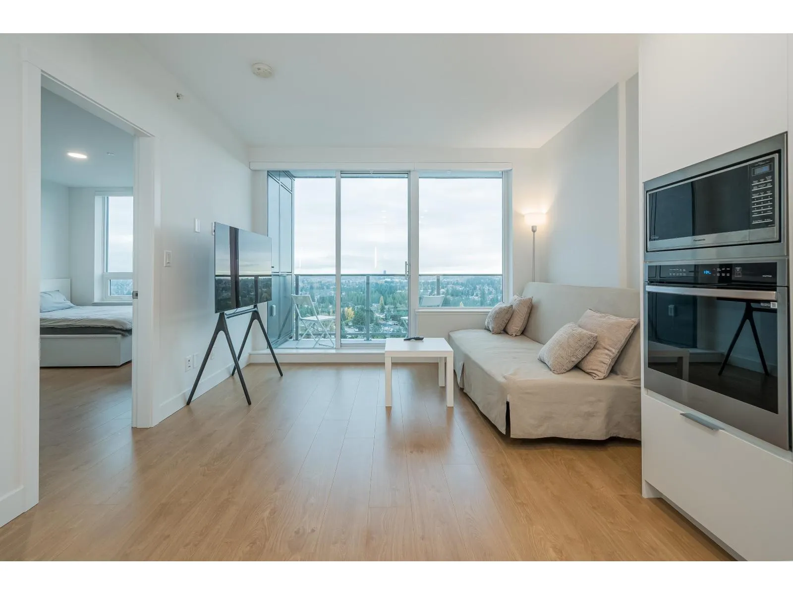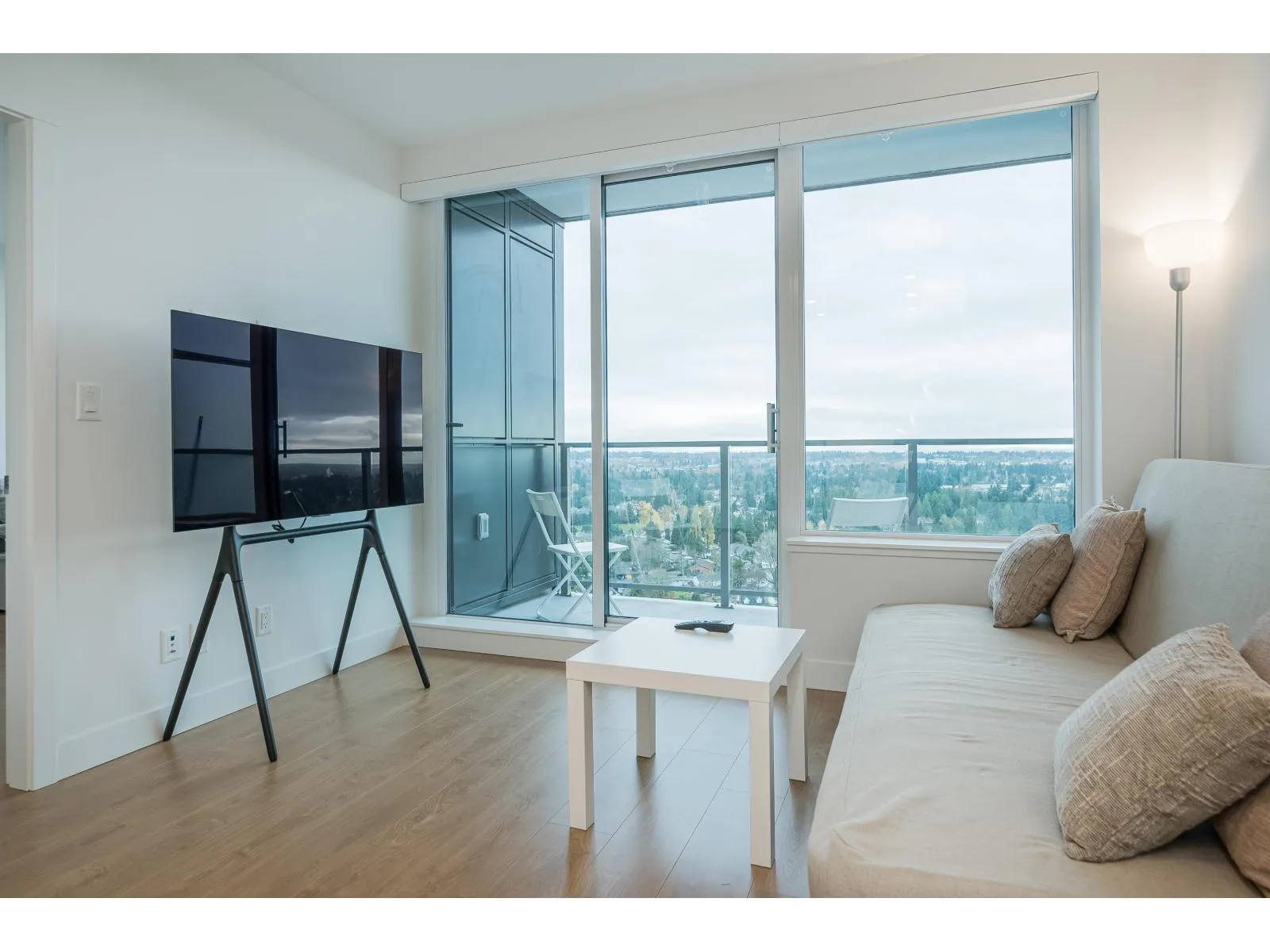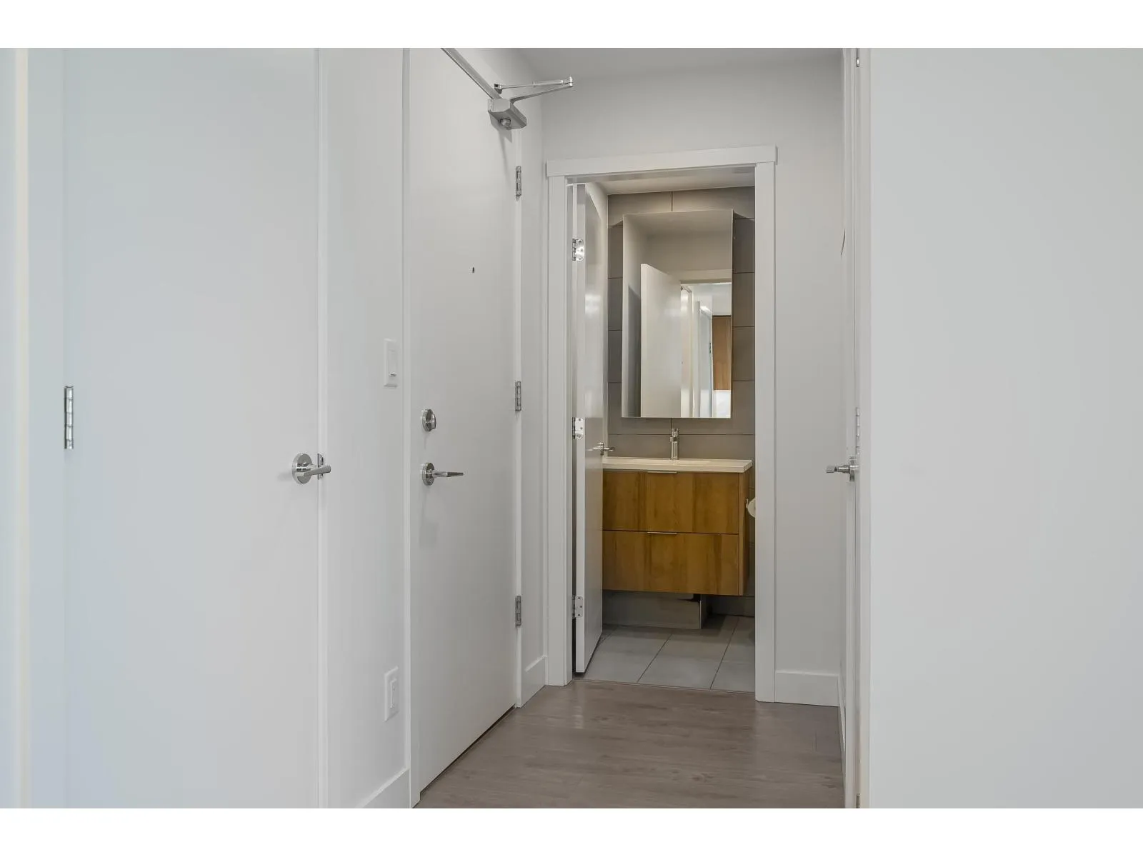 Experience breathtaking southwestern views spanning the city skyline, mountains, and Gulf Islands from this PENTHOUSE unit at The Holland by Townline! This owner occupied top floor 1 bed, 1 bath, 500 sq. ft. home features an efficient open layout, complete with A/C. The modern kitchen showcases Samsung appliances including gas range, quartz counters and ample storage. Bright living area with wide plank flooring opens to the balcony. Steps to SkyTrain, SFU, Central City Mall and Holland Park. Building amenities include gym, co-work/meeting rooms, party lounge and concierge. Ideal for first-time buyers or investors. 1 parking + 1 locker included. (id:27476)