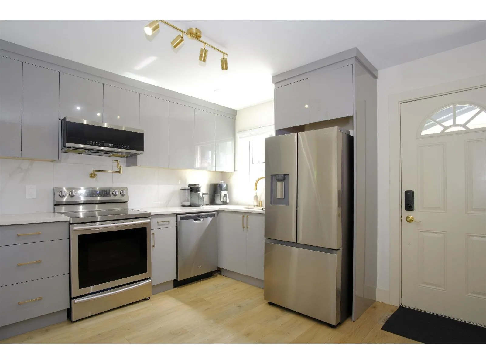 Stunning fully renovated 3-level townhome in the heart of Guildford, featuring premium upgrades and a brand-new look throughout. Enjoy a 10Ã10 spa-inspired ensuite shower, new PEX plumbing, custom millwork, fresh paint, new flooring, and a sleek glass railing. The redesigned kitchen offers custom cabinets, quartz counters, RGB pot lighting, tiled feature walls, and a pot filler. Upstairs includes two king-size bedrooms with a luxurious ensuite. The finished lower level adds a bedroom, bathroom, separate laundry, bar area, and storage. Private covered patio, fenced yard, playgrounds, basketball court, and new roof, siding, and gutters. Steps to Hwy 1 and Guildford Mall. No rental or age limits. Strata exploring high-rise redevelopment. (id:27476)
