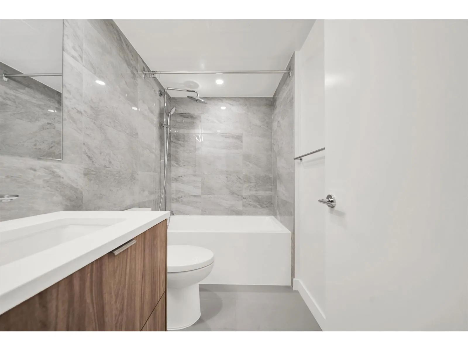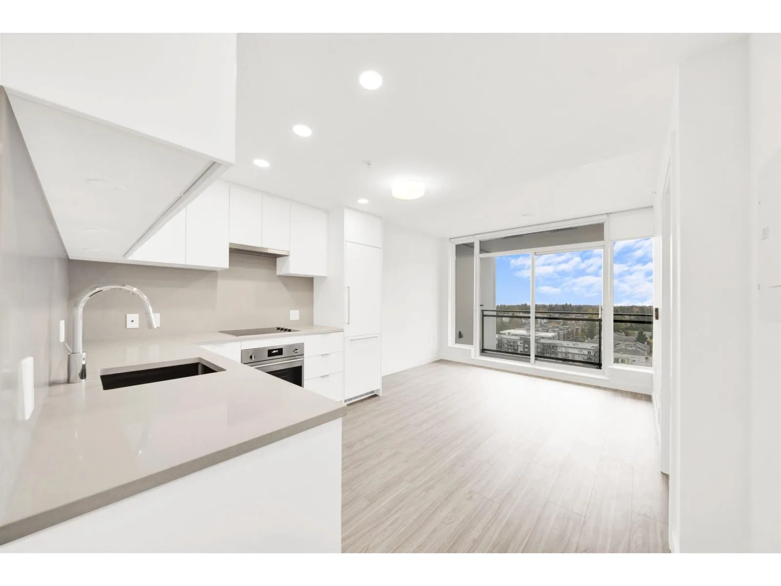Welcome to Flamingo One, a new icon in Surrey Central by ITC, offering a bright one-bedroom residence with contemporary living features. Enjoy premium integrated appliances, elegant quartz countertops, sleek flat-panel cabinetry, and wide-plank flooring. Year-round comfort is ensured with air conditioning and a heat pump, complemented by an expansive covered balcony. The building boasts curated amenities, including a fireside lounge, BBQ terrace, social room with a full kitchen, hobby studio, state-of-the-art fitness center, theatre, children's play area, and dog park. Ideally located just five minutes from Gateway SkyTrain, with shops nearby, and includes 1 parking space and 1 storage locker. (id:27476)