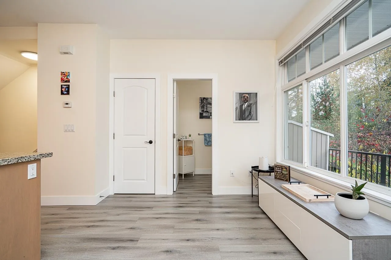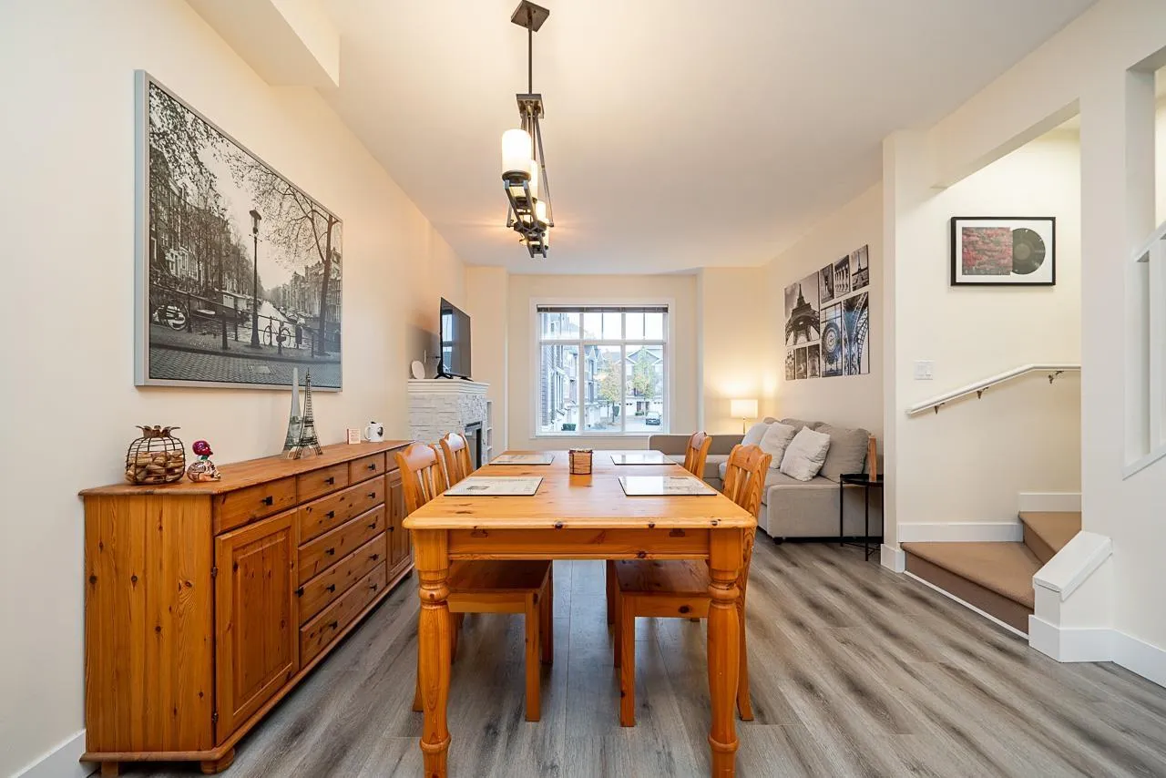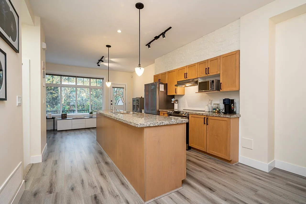 Sunny, bright & beautifully updated! This 3 bed, 3 bath townhome offers ideal privacy with no neighbours in front or behind and backs onto a peaceful greenbelt. The open-concept main floor features 9 ft ceilings, new laminate flooring, granite counters, a large kitchen island, walk-in pantry and fresh décor paint. Enjoy summer breezes with a phantom screen off the family room leading to your private deck and fenced backyard-perfect for outdoor living. Spacious primary bedroom with double sinks. Two Blue is a proactive strata in a fantastic family-friendly neighbourhood, just steps to parks, trails, new Skytrain along Fraser Hwy, and all amenities. Don't miss it! (id:27476)