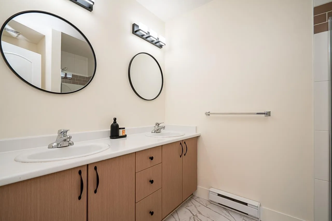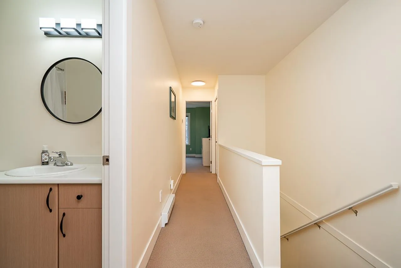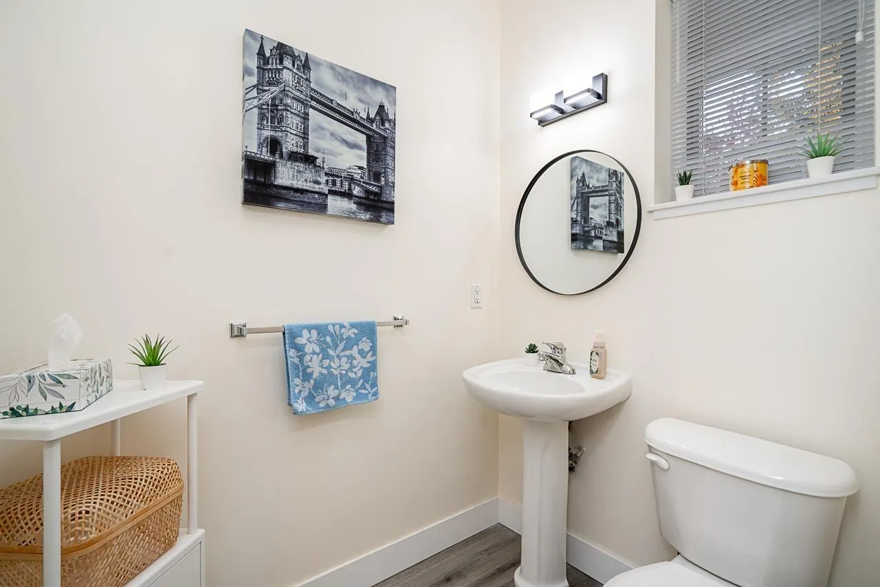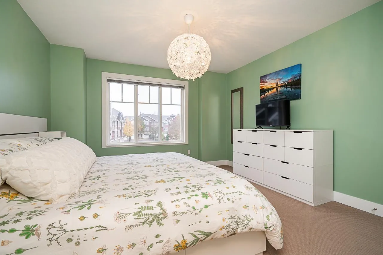 Sunny, bright & beautifully updated! This 3 bed, 3 bath townhome offers ideal privacy with no neighbours in front or behind and backs onto a peaceful greenbelt. The open-concept main floor features 9 ft ceilings, new laminate flooring, granite counters, a large kitchen island, walk-in pantry and fresh décor paint. Enjoy summer breezes with a phantom screen off the family room leading to your private deck and fenced backyard-perfect for outdoor living. Spacious primary bedroom with double sinks. Two Blue is a proactive strata in a fantastic family-friendly neighbourhood, just steps to parks, trails, new Skytrain along Fraser Hwy, and all amenities. Don't miss it! (id:27476)