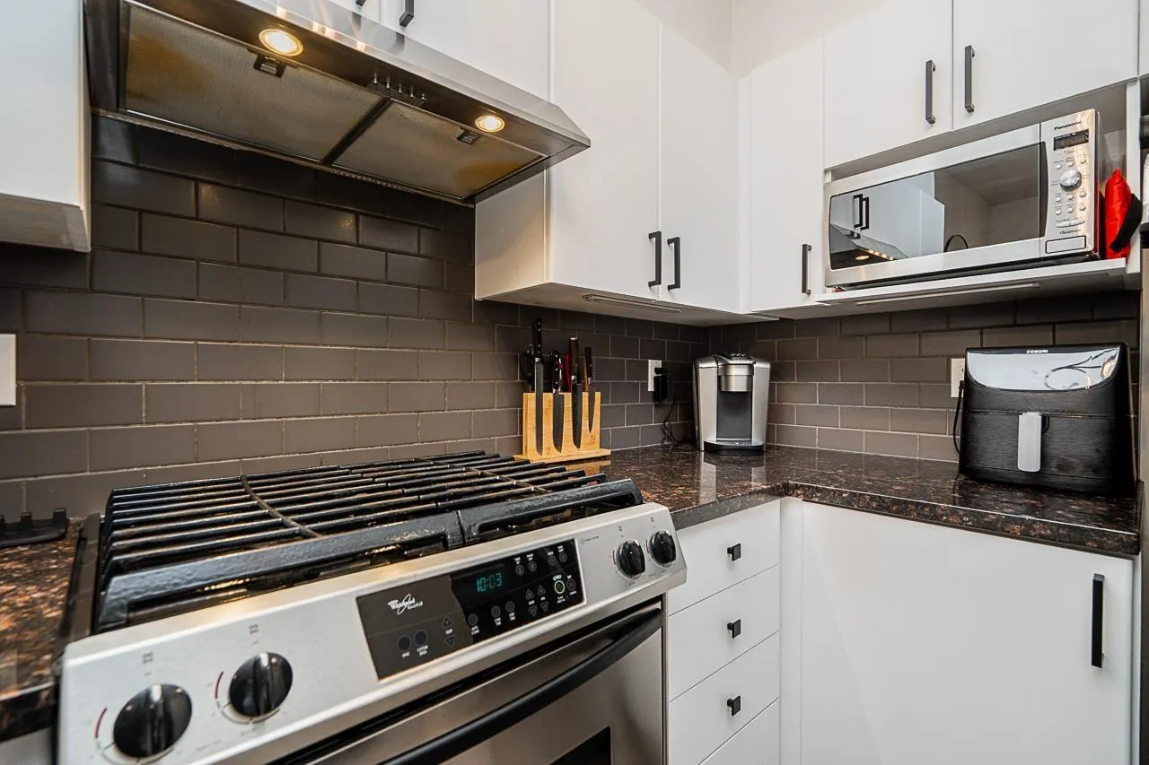 Welcome to Two Blue, a fantastic family-friendly townhouse community in Clayton Heights. This beautifully maintained end-unit offers 2 bedrooms, 2 bathrooms, and over 1,300 sq. ft. of updated living space. Recent upgrades include fresh paint, new main-level flooring, updated blinds, modern light fixtures, refaced kitchen cabinets, and upgraded hardware throughout most of the home-showcasing clear pride of ownership. The main floor opens onto a large, unique wraparound deck with a gas hookup, overlooking a fully fenced backyard with low-maintenance artificial turf. Upstairs, you'll find two generously sized bedrooms with large closets. The primary suite features an ensuite bathroom with double sinks and a walk-in shower.A double tandem garage provides ample parking and additional storage space.Located in a vibrant and convenient neighborhood, this home is close to shopping, schools, parks, recreation, and offers easy access to major routes. A wonderful place to call home! (id:27476)
