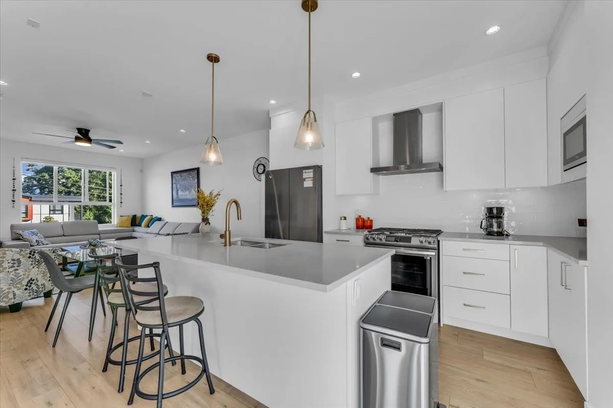 Step into Headwater w/ NO GST, an exclusive collection of 39 modern townhomes perfectly situated in the heart of Surrey. This stunning 4-bedroom, 3-bath corner home offers 1,580 sq.ft. of bright, open-concept living with 9' ceilings, large windows, and premium finishes throughout. The stylish kitchen with stainless steel appliances flows effortlessly into the dining and living areas, ideal for both family living and entertaining. Enjoy the comfort of a side-by-side double garage and a private fenced backyard. Located minutes from Guildford Town Centre, Guildford Recreation Centre, and top-rated schools, with quick access to Highway 1 and 15, this home offers the perfect harmony of modern style, everyday comfort, and unbeatable convenience. OPEN HOUSE NOV 22 & 23, SAT & SUN 2:00PM-4:00PM (id:27476)
