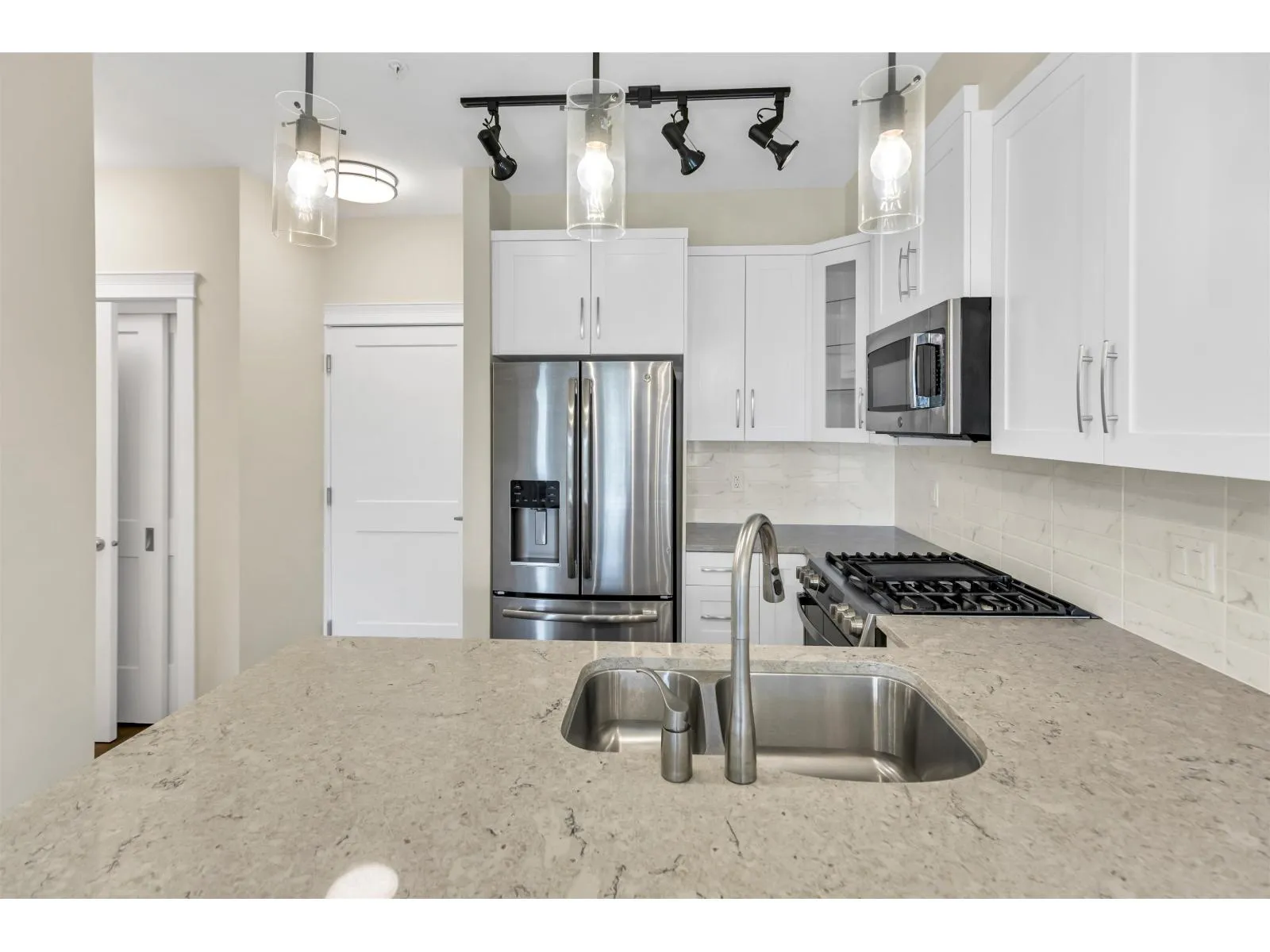 Welcome to Ledgeview - modern living with stunning Fraser River views. This bright and well-designed 1 bedroom, 1 bathroom apartment offers 557 sq ft of comfortable, contemporary living on the 4th floor. Oversized windows flood the space with natural light and perfectly frame the sweeping river views. The kitchen features sleek quartz countertops and stainless steel appliances, combining style and function for everyday living. The open-concept layout flows seamlessly from the kitchen into the living area, maximizing space and comfort. Enjoy access to premium amenities including a fully equipped gym, club house, bike room, and a beautiful rooftop patio - perfect for relaxing or entertaining with a view. Located close to transit, shopping, parks, and trails, Ledgeview has it all! (id:27476)