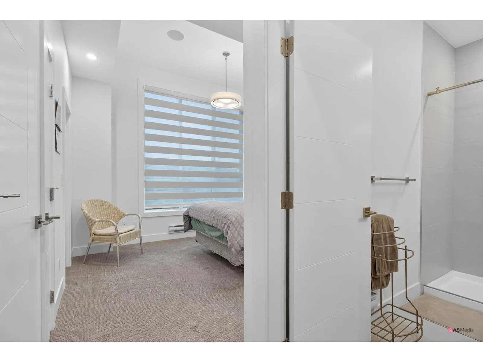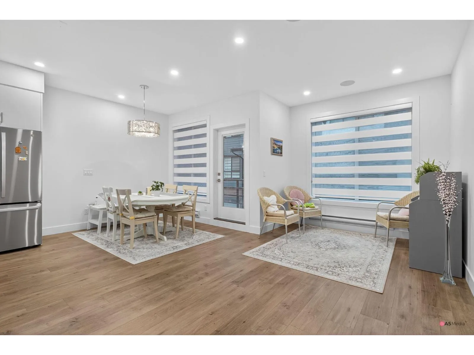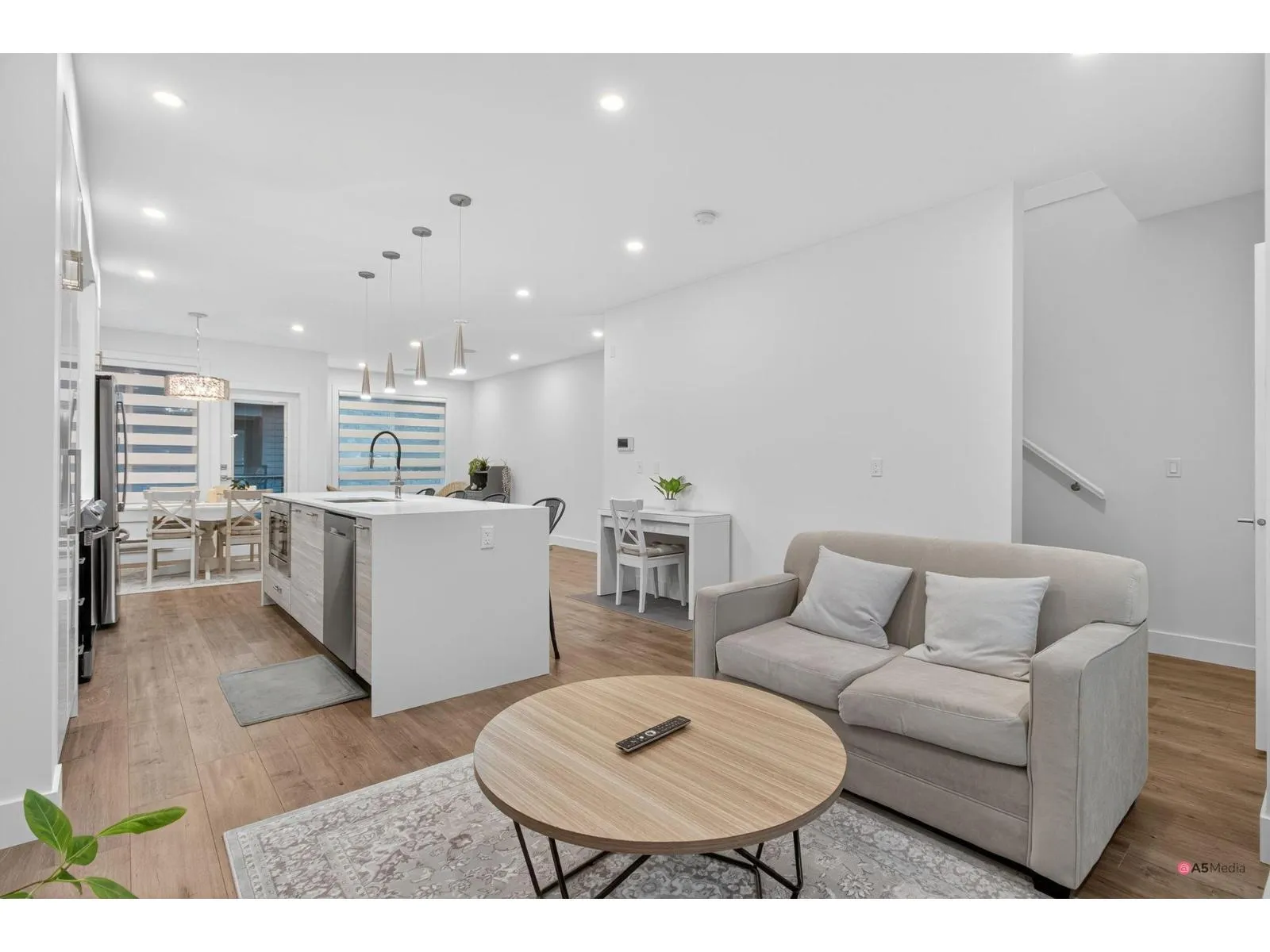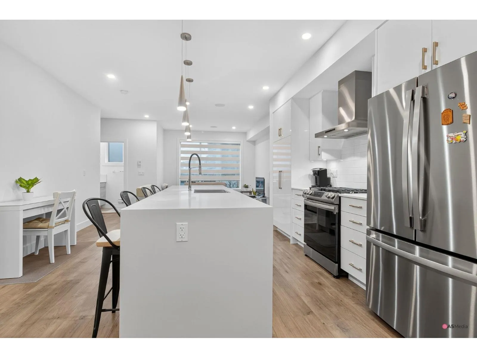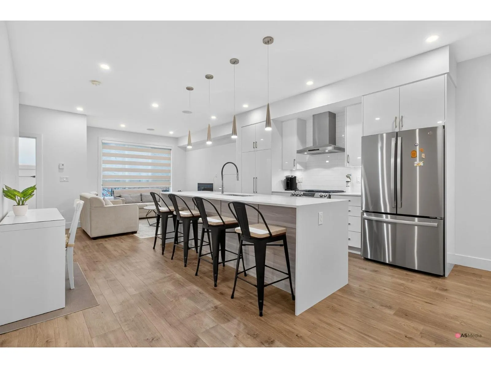 Welcome to your new home on the peaceful side of Aloha Estates in Clayton Heights! This modern 3-bed, 4-bath townhome features a spacious entry-level recreation/office room with full closet and its own 3-piece bath. Enjoy high ceilings, a side-by-side double garage, and a bright main floor with separate living and family areas. The modern kitchen offers quartz counters, gas stove, stainless steel appliances, a brand-new fridge, large island, and a private balcony with BBQ hookup. Upstairs includes a stunning vaulted-ceiling primary bedroom with his-and-hers closets plus walk-in and ensuite, side-by-side laundry with storage, and two additional bedrooms with a 4-piece bath. Steps to Katzie Elementary, parks, shopping, major routes, and the future SkyTrain. Perfect family home! (id:27476)