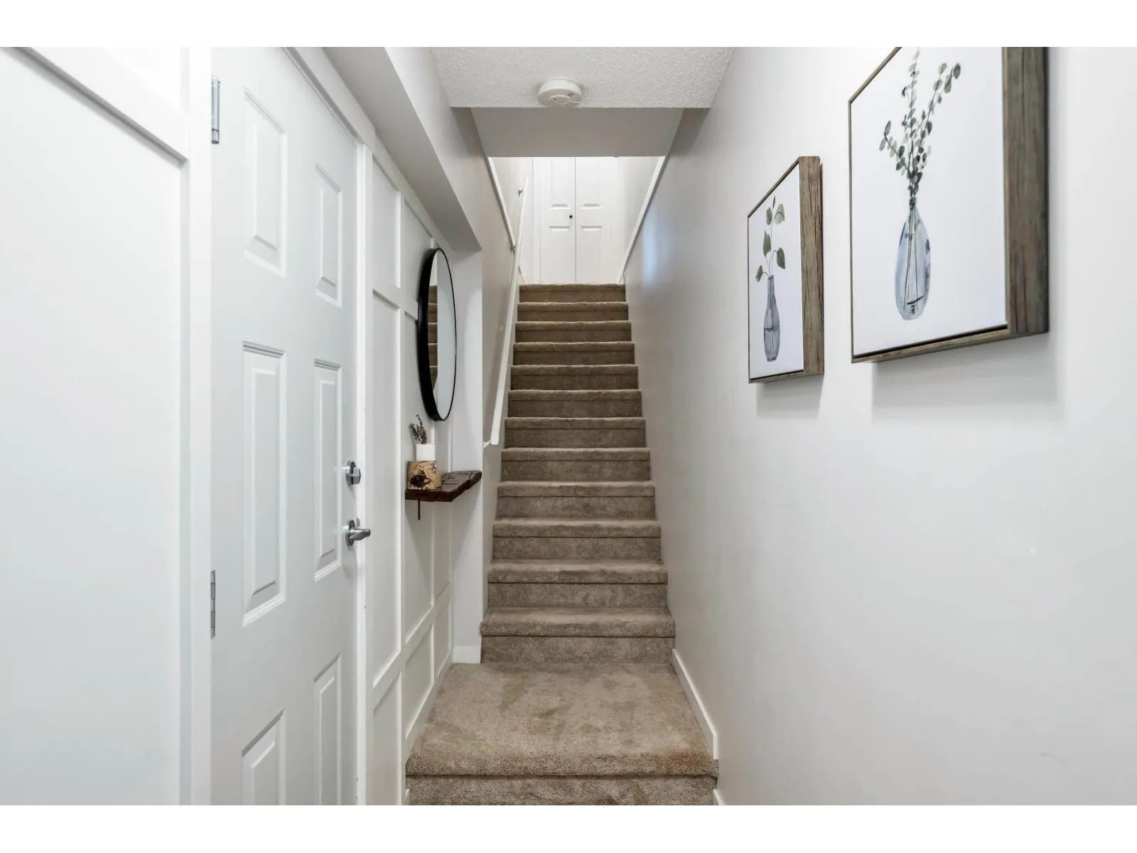 Welcome to Sunberry Court! This bright and beautifully updated 3 bed / 3 bath END-UNIT townhome offers 1,457 sq. ft. of open-concept living in a family-friendly community. The functional kitchen features SS appliances, NEW dishwasher, granite counters with an island, and access to a covered deck overlooking the fully fenced yard that backs onto the playground, perfect for kids. Recent updates: Main floor: stylish gas fireplace with shiplap and a custom mantle, upgraded lighting, designer paint, kitchen faucet/fixtures, wide-plank vinyl flooring, fresh baseboards, and trim. Powder room: new vanity, fixtures, tile, toilet, mirror, and wainscoting. Upstairs: new carpet throughout bedrooms and hallway, updated paint, framed windows/closets, and modern door hardware. Laundry: new washer/dryer with upgraded tile and shelving. BONUS: epoxy flooring garage, forced-air furnace, and a fantastic location close to community gardens, schools, parks, shopping, and transit. (id:27476)
