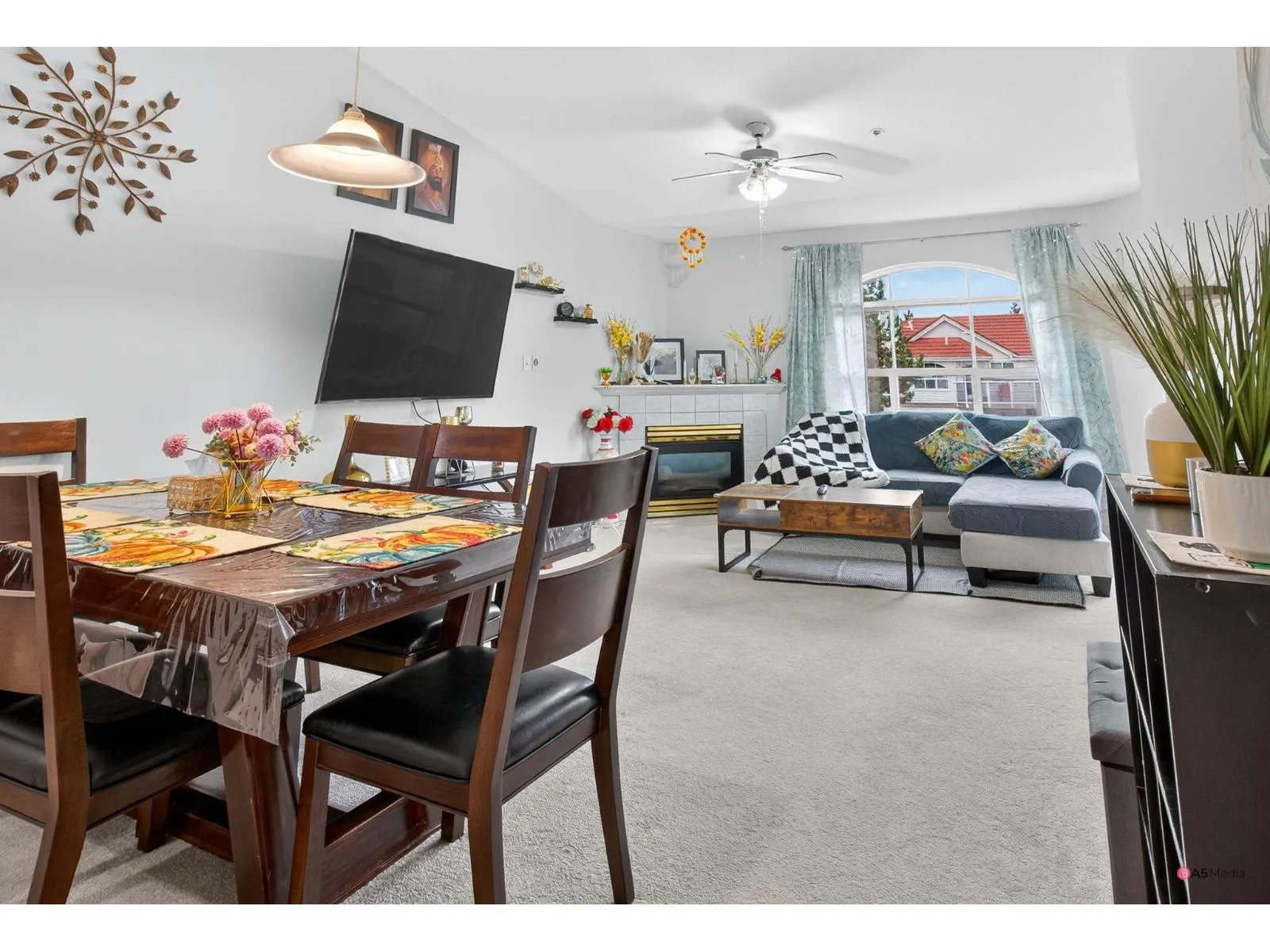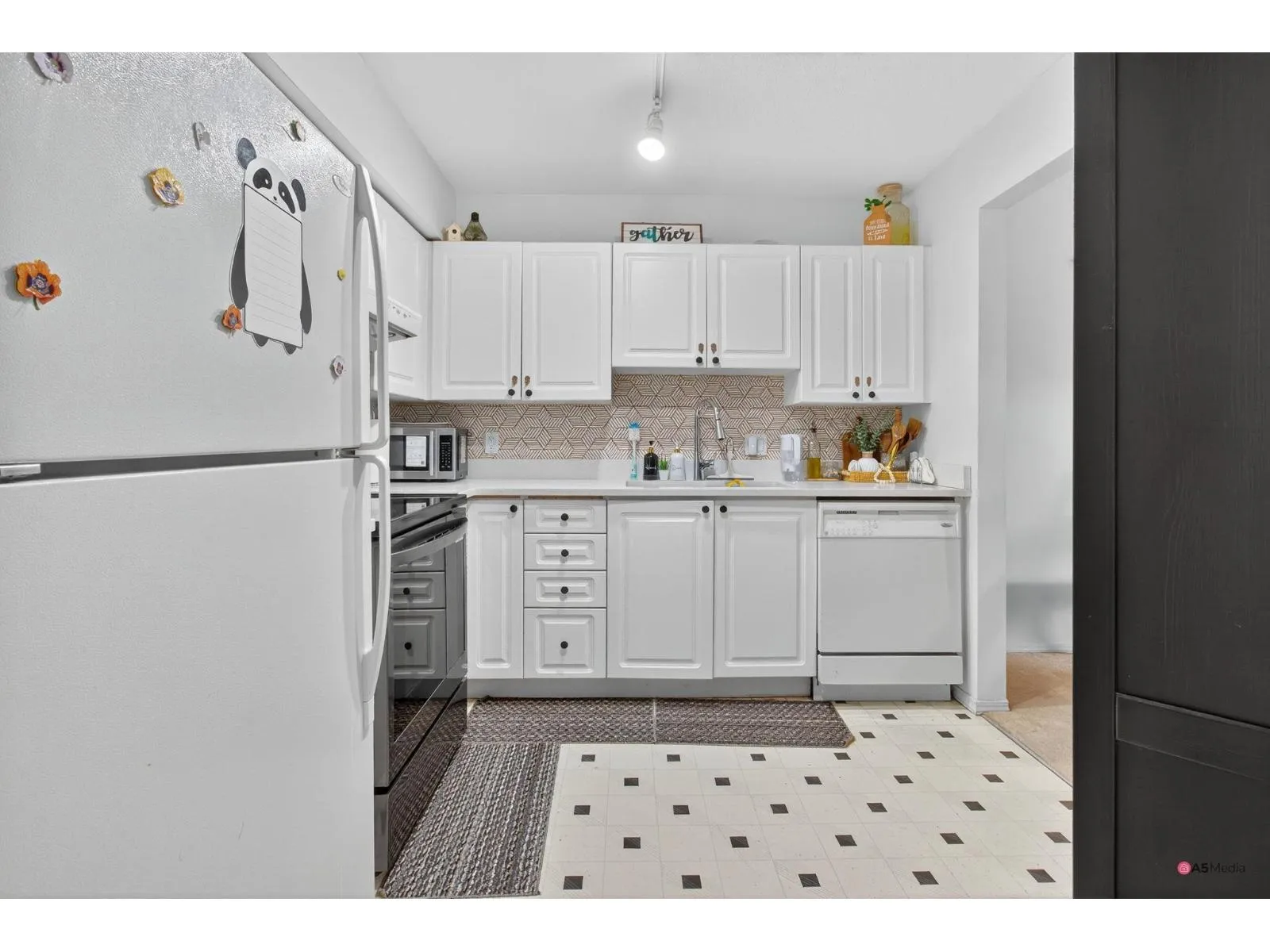Top Floor corner unit with Spacious 2 bedrooms and 2 Bath with bright open floor plan, lots of windows for natural light and Vaulted ceilings throughout the house giving a larger more open feel and a sense of extra height and space. Spacious kitchen with brand new stove. Huge balcony with view beautiful landscaped gardens. KPU university and High school is just a block away. Public transit is at the gate and all levels of shopping are minutes away. Excellent access to Alex Fraser Bridge & Hwy 10 . Enjoy Newton Athletic Park right next door. Walking distance to Guru Nanak Sikh Temple and steps away from Princess Margaret secondary and Sinclair elementary. Great family neighborhood. Schedule your showing today. (id:27476)