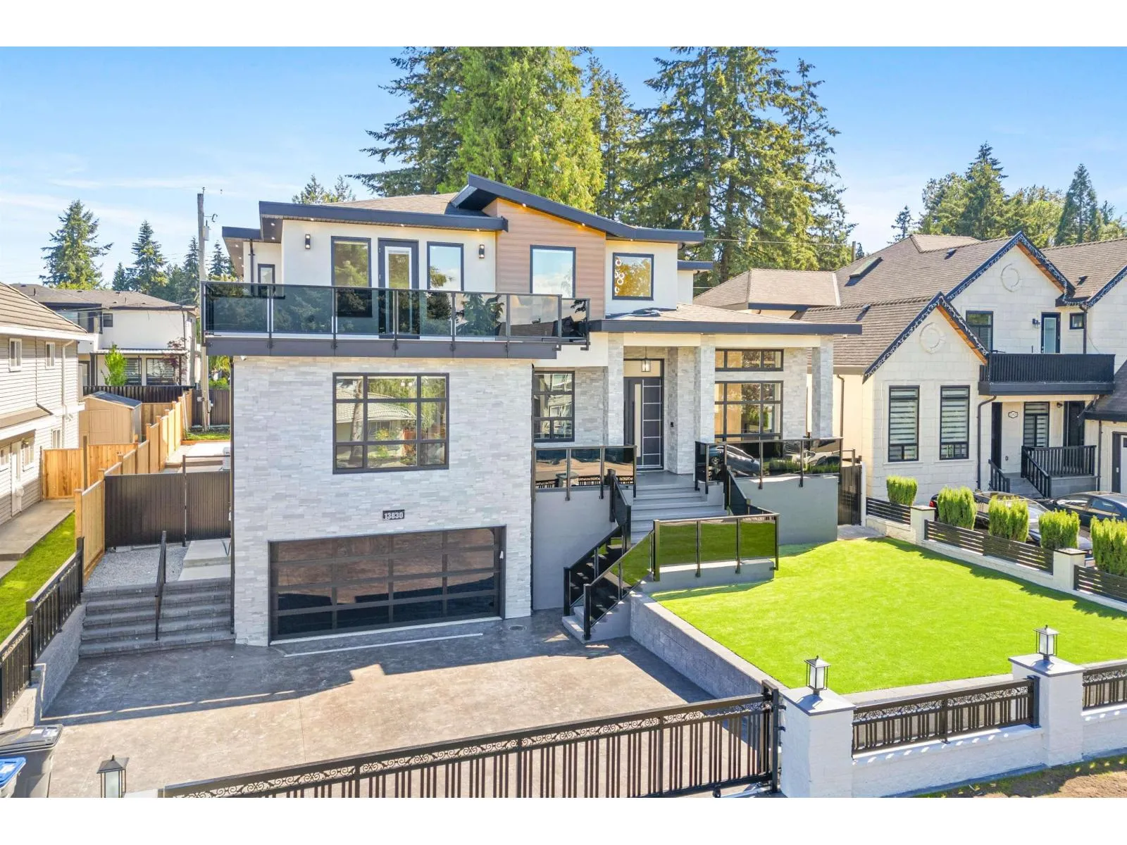 NO GST! This stunning 3-storey luxury home sits on a 7,600 sq. ft. lot with BACK LANE in one of Newton's most desirable neighbourhoods, offering approximately 6,700 sq. ft. of exceptional living space with 10 bedrooms and 10 bathrooms. Crafted with extraordinary quality and high-end finishes, home features soaring 12 ft ceilings a gourmet kitchen with JennAir appliances Savant smart home automation, a security system, and built-in vacuum. Main floor includes a spacious den and a large theatre room with a full washroom for endless entertainment. The upper level offers 4 bedrooms with ensuites, including two lavish primary suites with massive walk-in closets. Basements provide $5400 per month (3 mortgage helpers) (two 2-bed suites+one 1-bed suite) each with its own laundry. (id:27476)