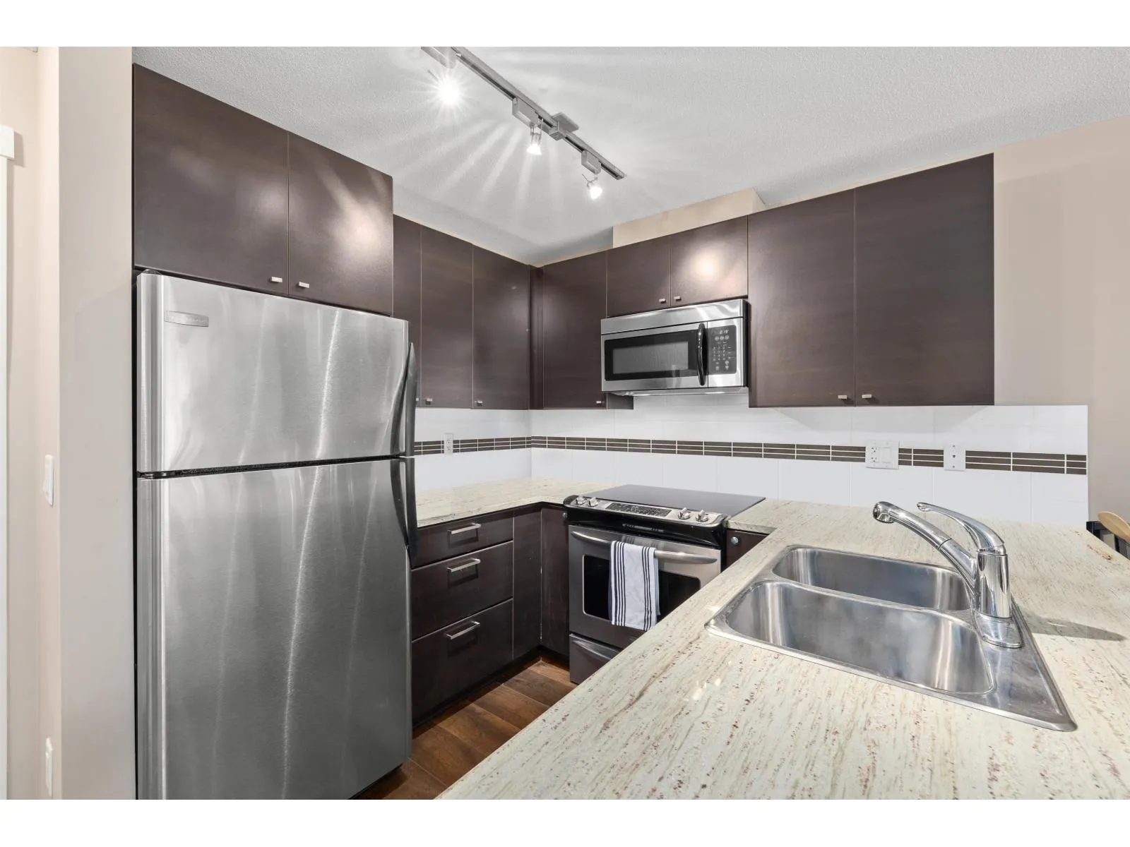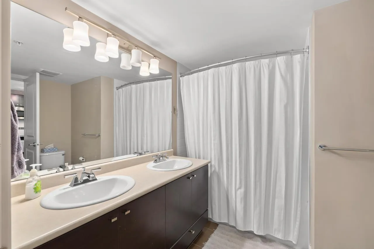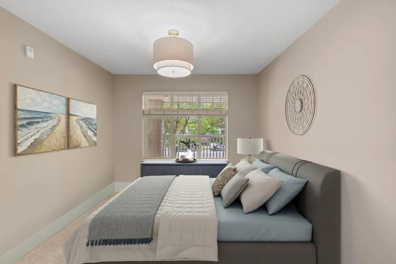 This bright and beautifully kept 1bed&bath condo in Sunset Grove features a spacious open layout with large windows, stainless appliances, updated kitch &foyer flooring, cozy gas fireplace & bathroom w/ heated floors, double sinks, large soaker tub & bathroom fan timer. Enjoy in-suite laundry, 1parking, 1storage & generous balcony surrounded by greenery. The well-maintained complex offers a party room, bike storage & beautiful central greenspace w/ a shared community garden & walking paths perfect for a relaxed, nature-connected lifestyle. Pet & rental-friendly. Close to Willowbrook Mall, parks, shopping &groceries. VACANT & QUICK POSSESSION POSSIBLE. (id:27476)
